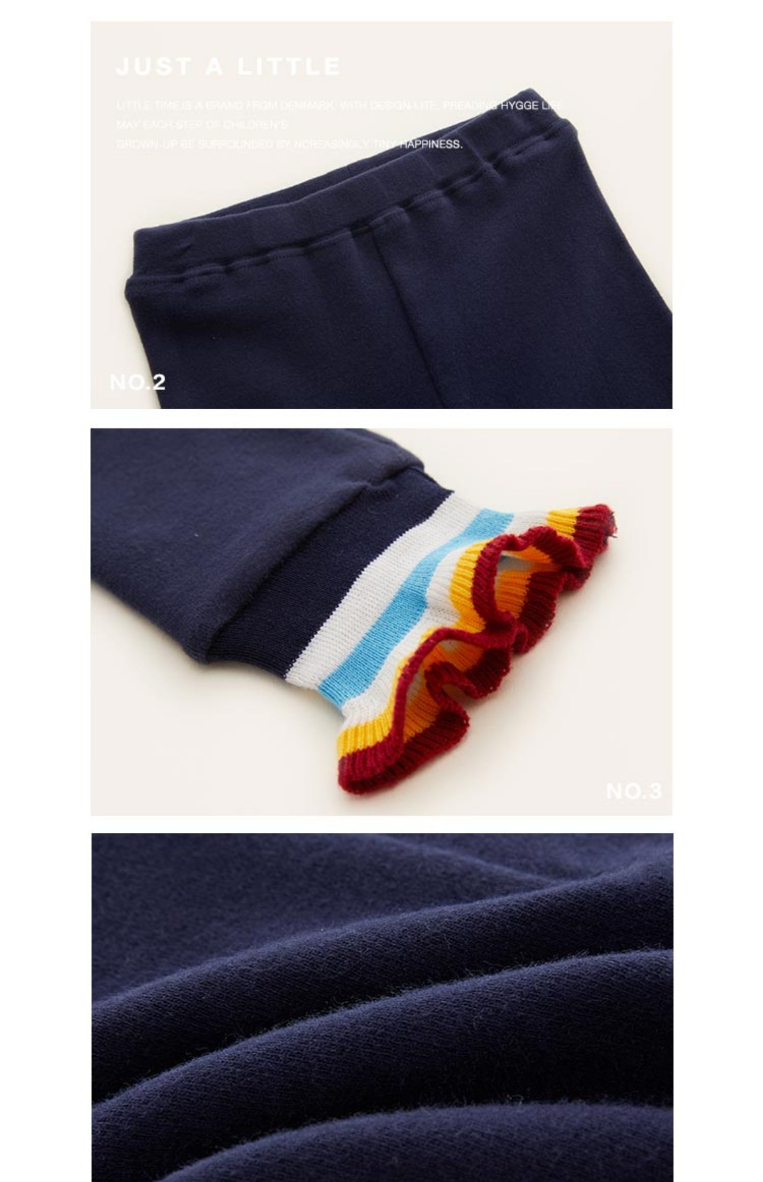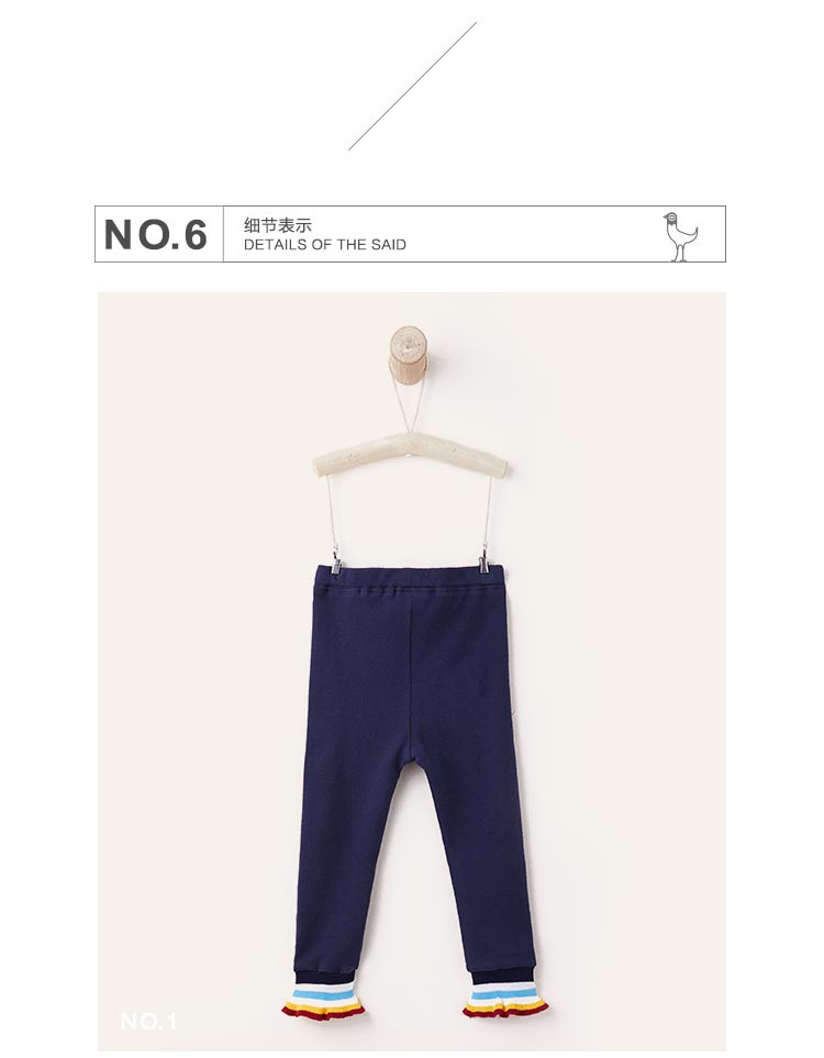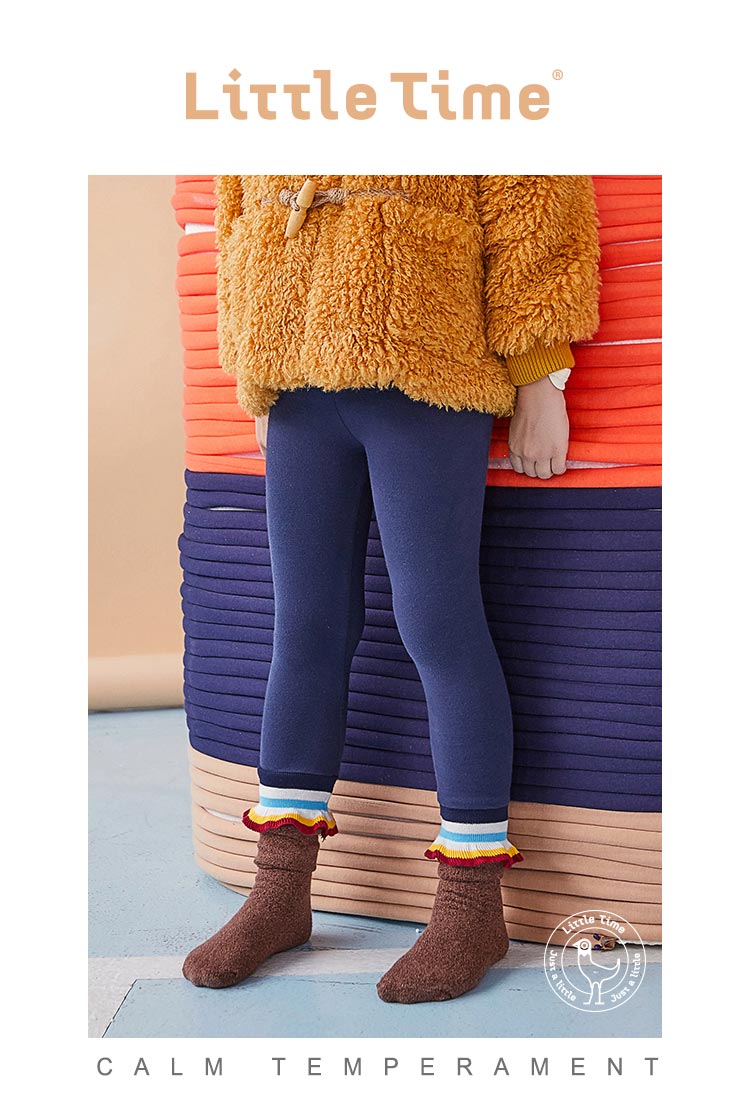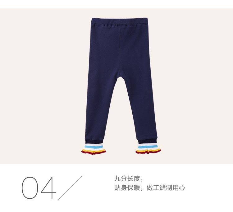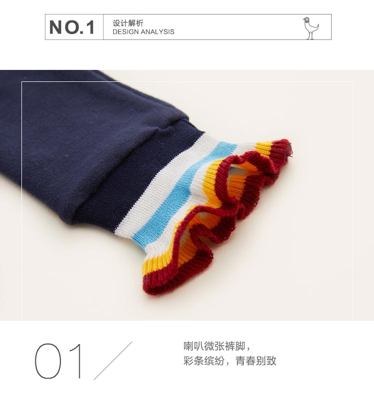 littletime童装春秋新款彩条微喇叭运动裤裤脚藏青打底裤长裤