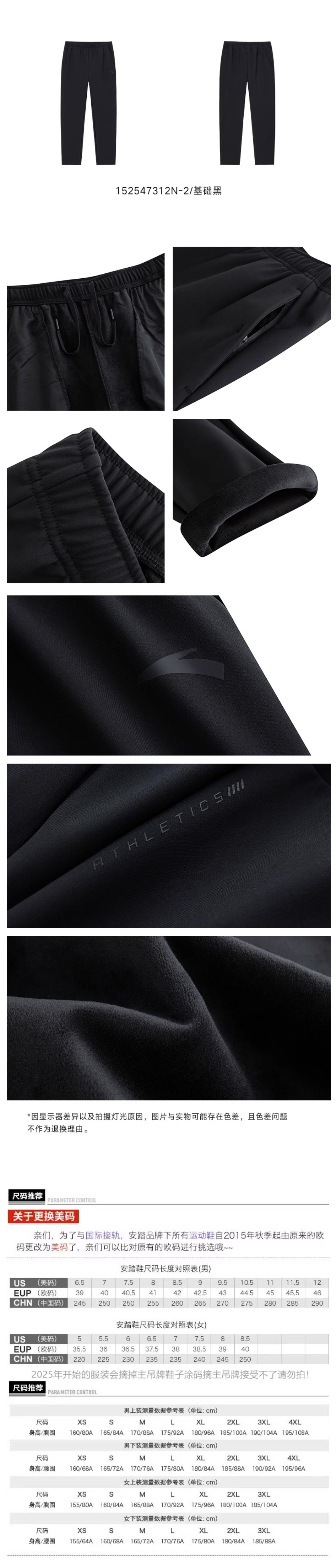 安踏型动裤商务休闲长裤男2025冬季新款加绒直筒运动裤152547312N-2