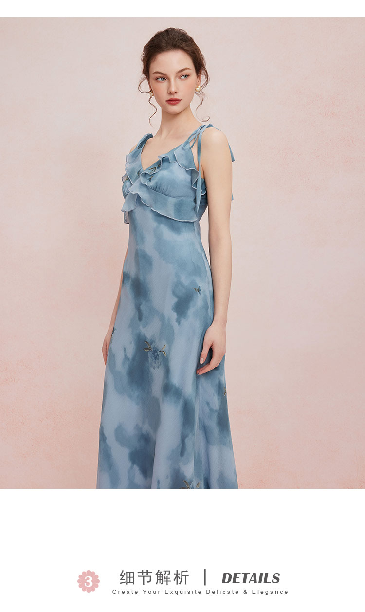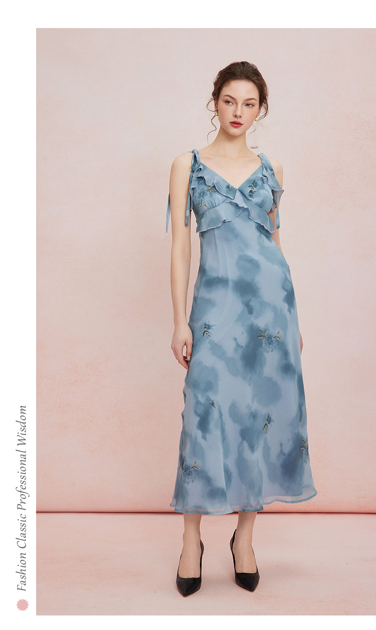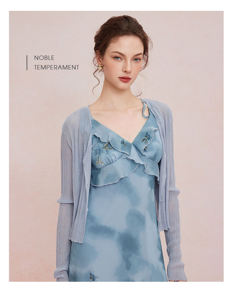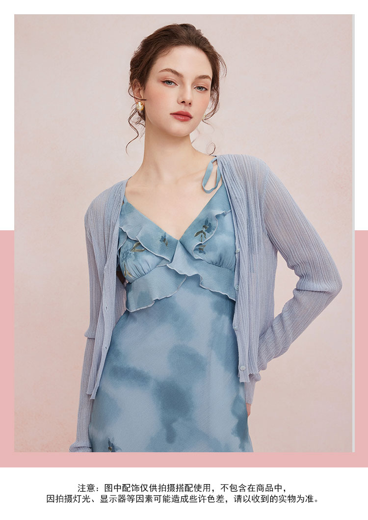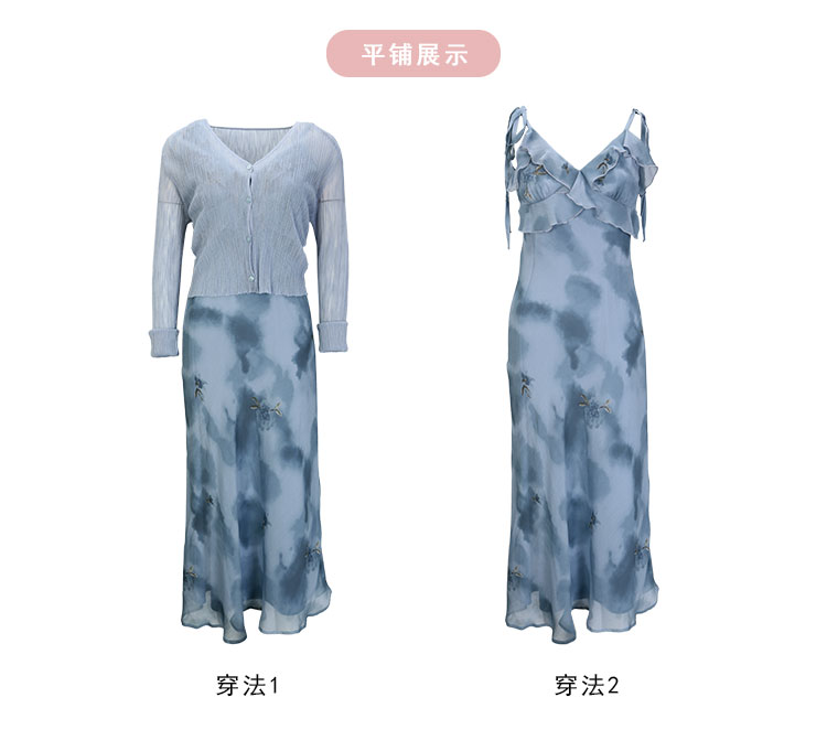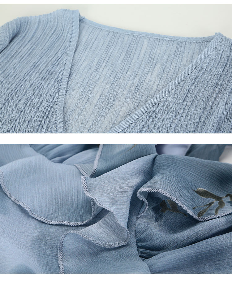 QF87725夏季新款法式浪漫碎花荷叶边裙搭配针织外披连衣裙套装