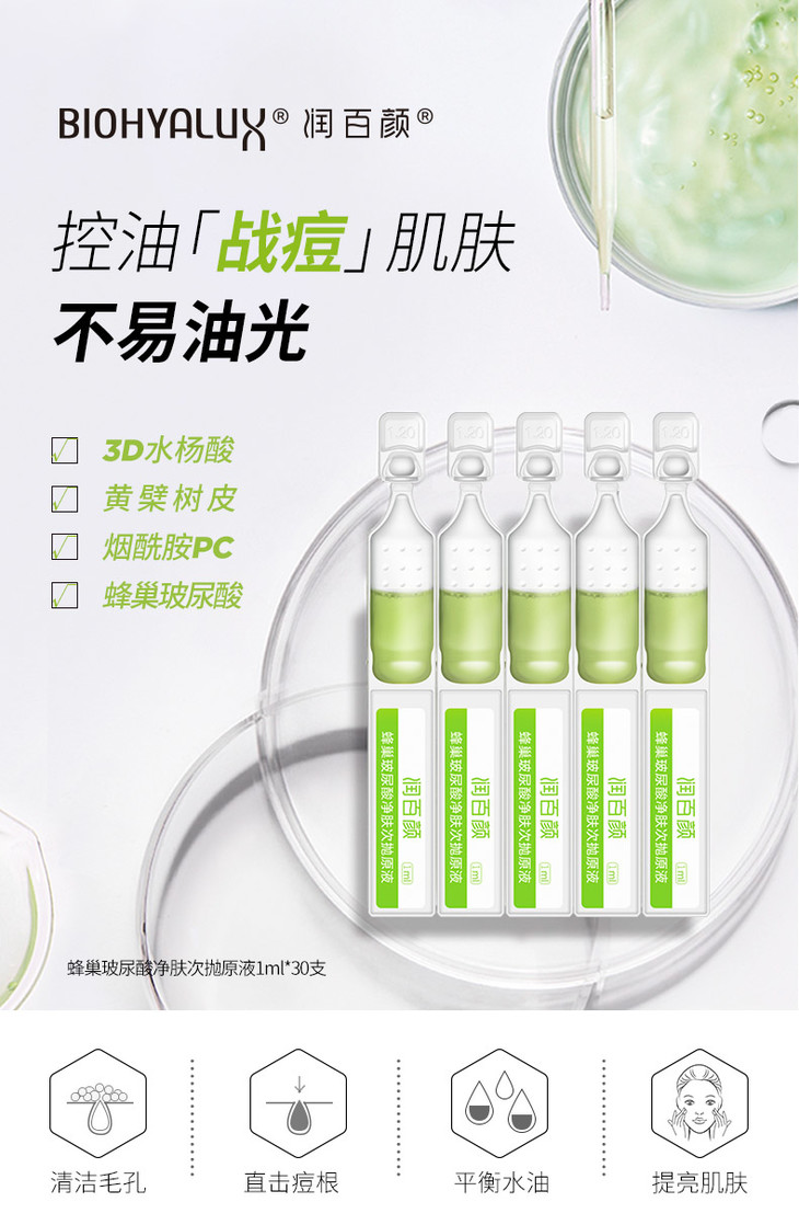 【润百颜次抛】润百颜蜂巢玻尿酸净肤次抛原液1ml*30支|清爽控油 净肤去闭口