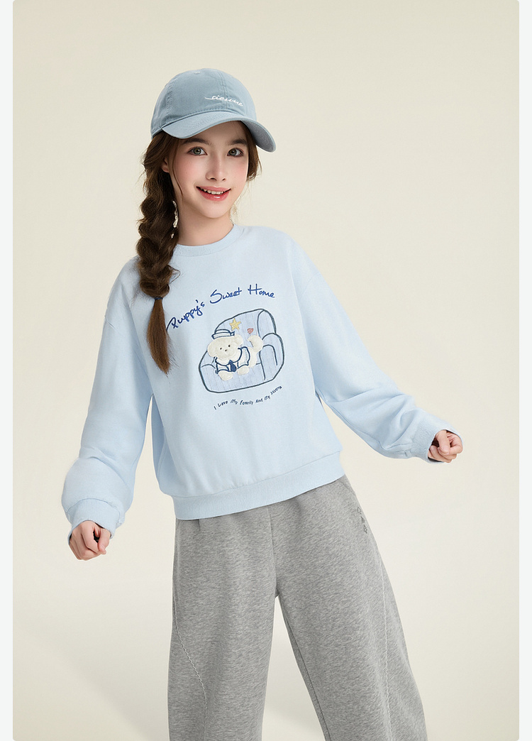 笛莎Deesha 童装女童卫衣2026春新款趣味小狗圆领卫