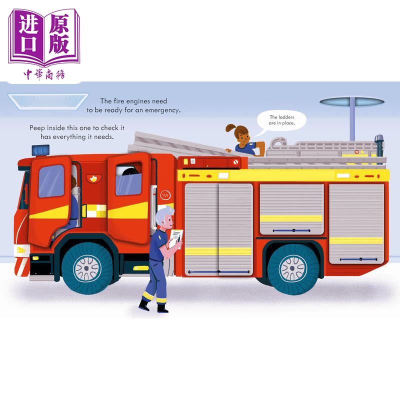预售 【中商原版】偷偷看里面消防车是怎么工作的Peep Inside how a Fire Engine works 英文原版 儿童纸板书亲子绘本 图画书 进口