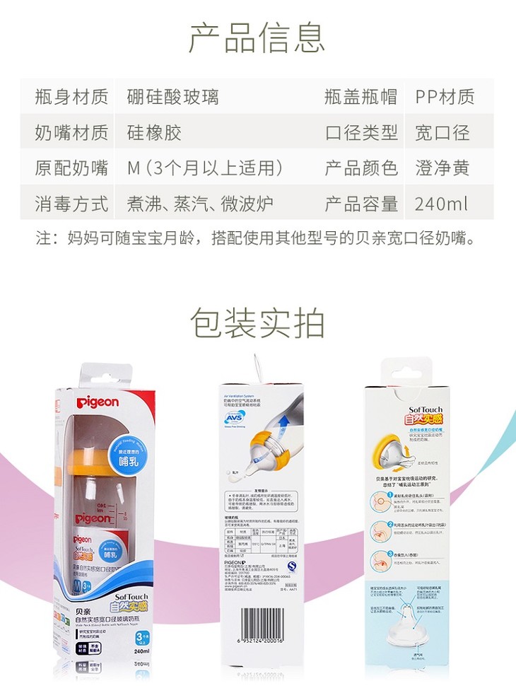 【一般贸易】贝亲—宽口径玻璃奶瓶240ml(绿色)/ (黄色)AA70+AA71