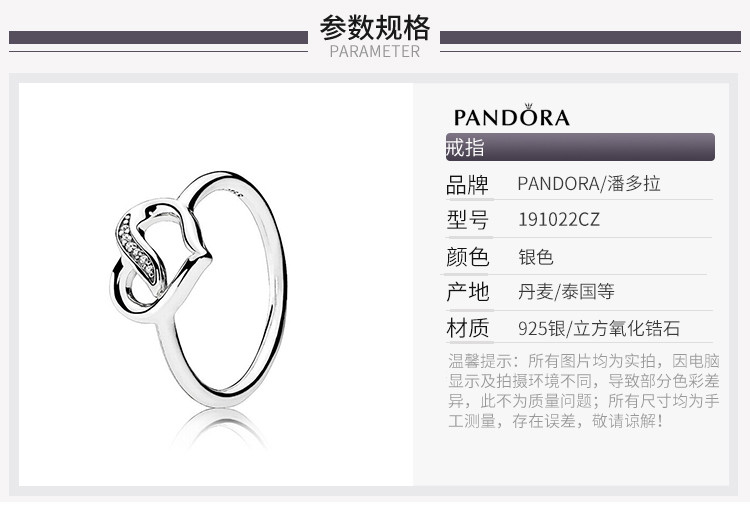 PANDORA/潘多拉 女士 925银爱之丝带戒指 191022CZ