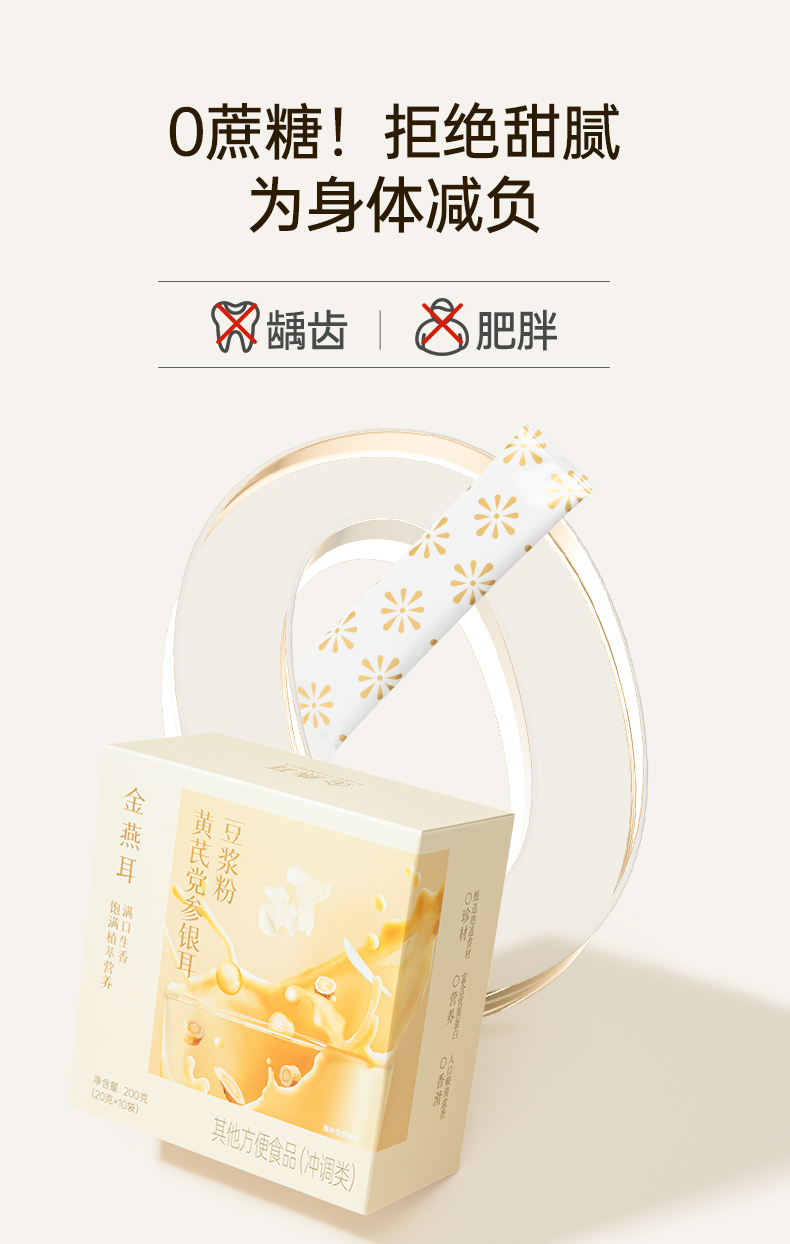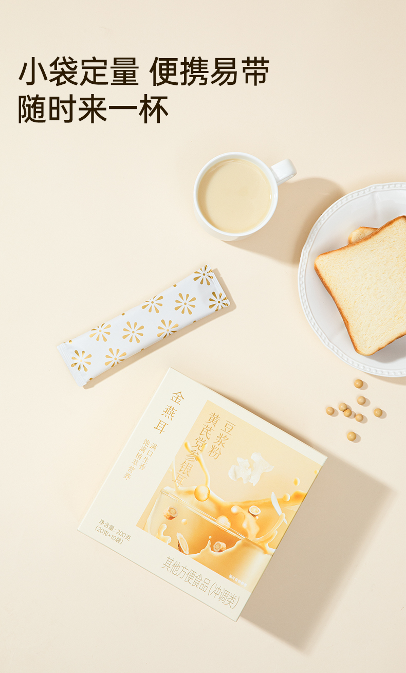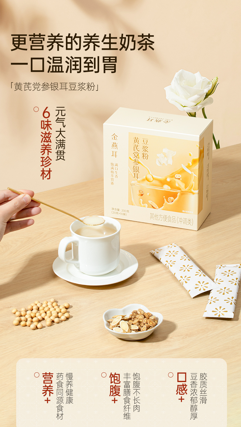 金燕耳黄芪党参银耳豆浆粉 10袋/盒 6大滋养食材 暖胃温补不燥热 醇厚豆浆质地更易吸收的植物蛋白 早餐冲泡0添加蔗糖