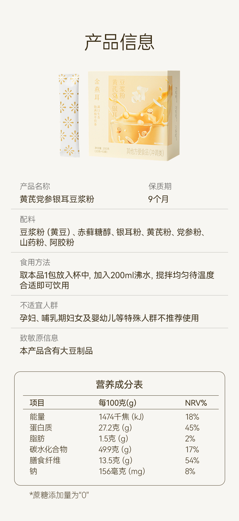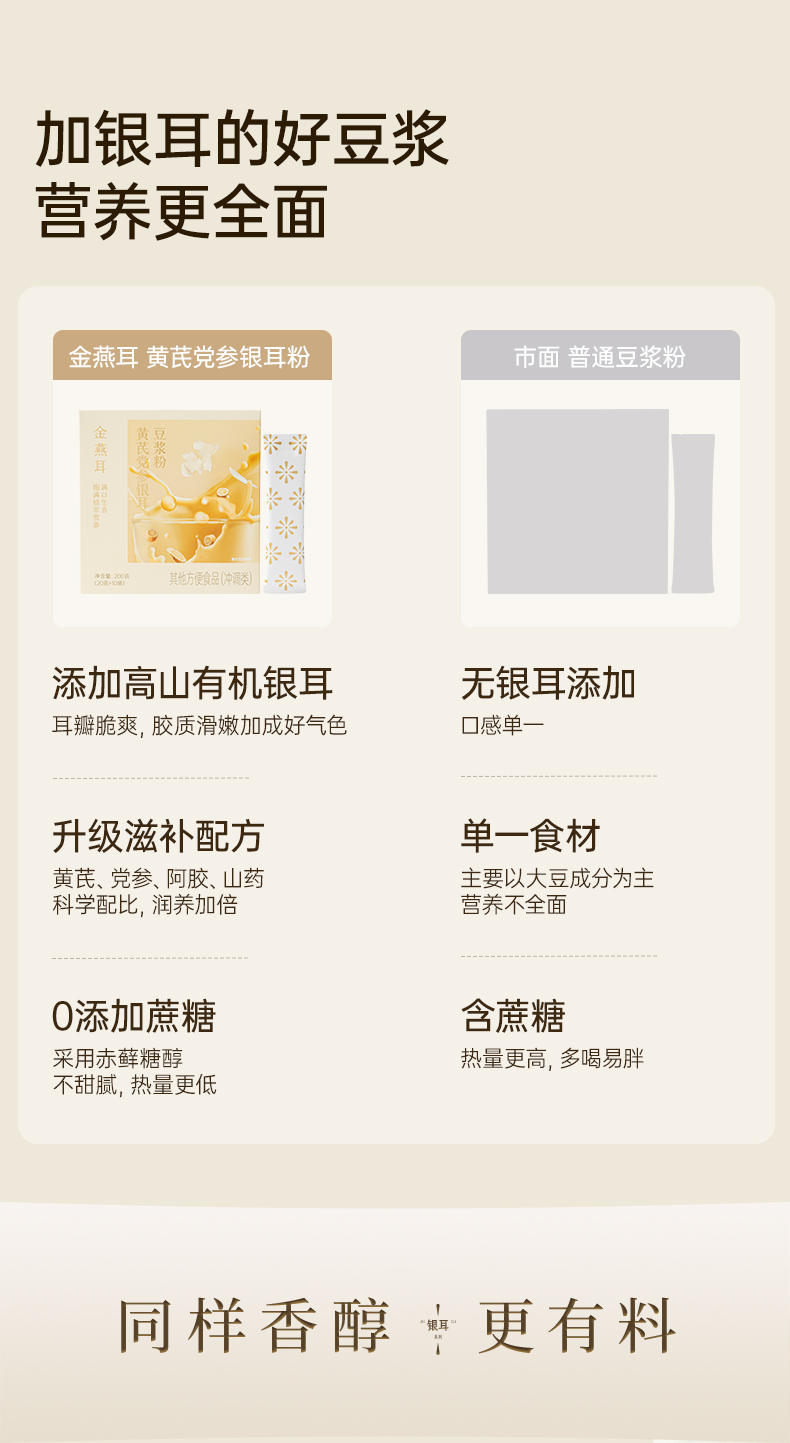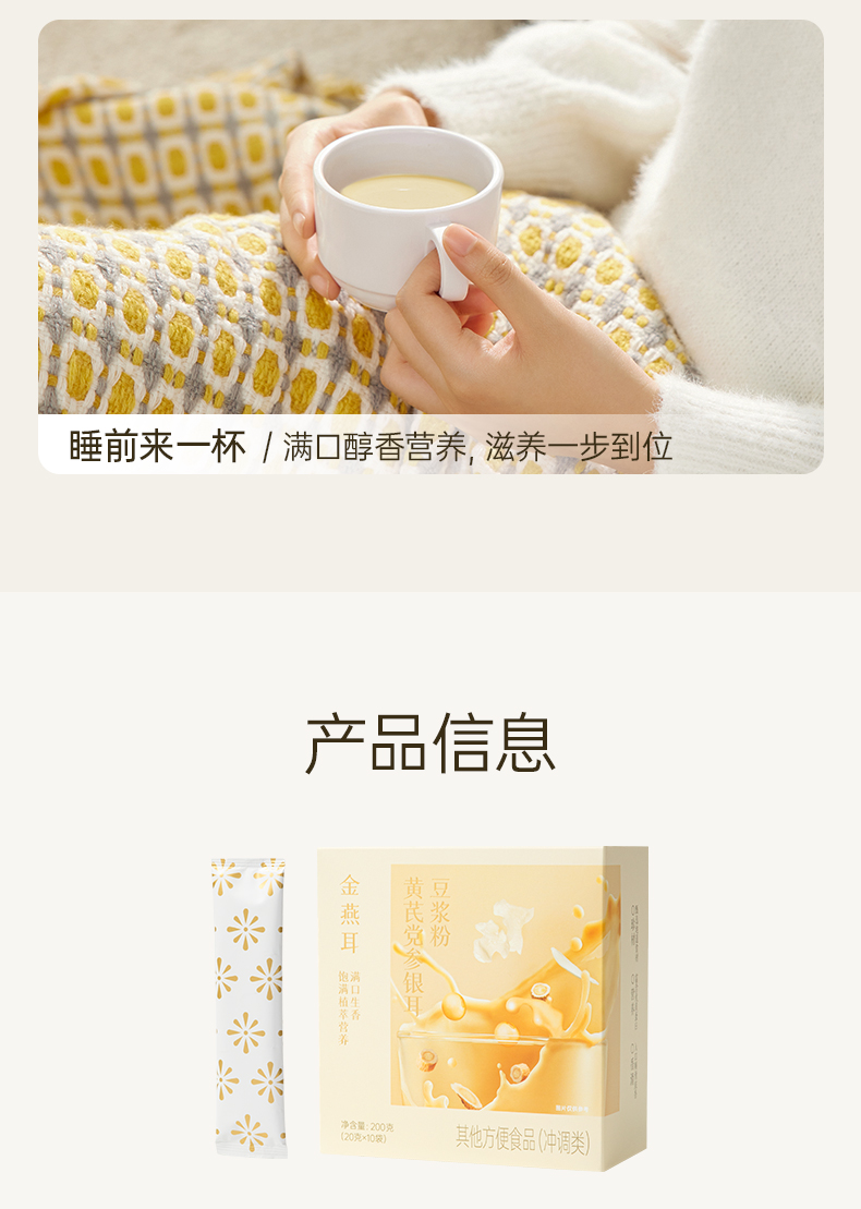 金燕耳黄芪党参银耳豆浆粉 10袋/盒 6大滋养食材 暖胃温补不燥热 醇厚豆浆质地更易吸收的植物蛋白 早餐冲泡0添加蔗糖
