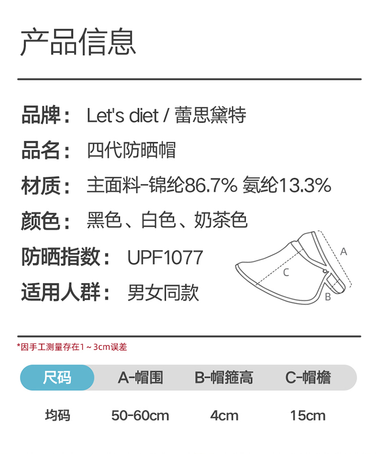 【买就送防晒冰丝口罩】let's diet防晒帽!突出巴掌脸,凹造型,防晒全靠它!不吸热不闷热,非常适合炎炎夏日!