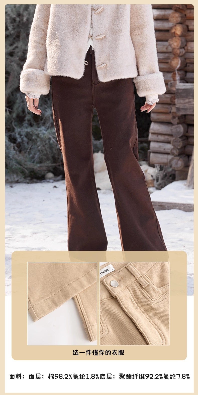 【门店同款】ENJOY冬季漫沙行高腰加绒微喇裤 168593305