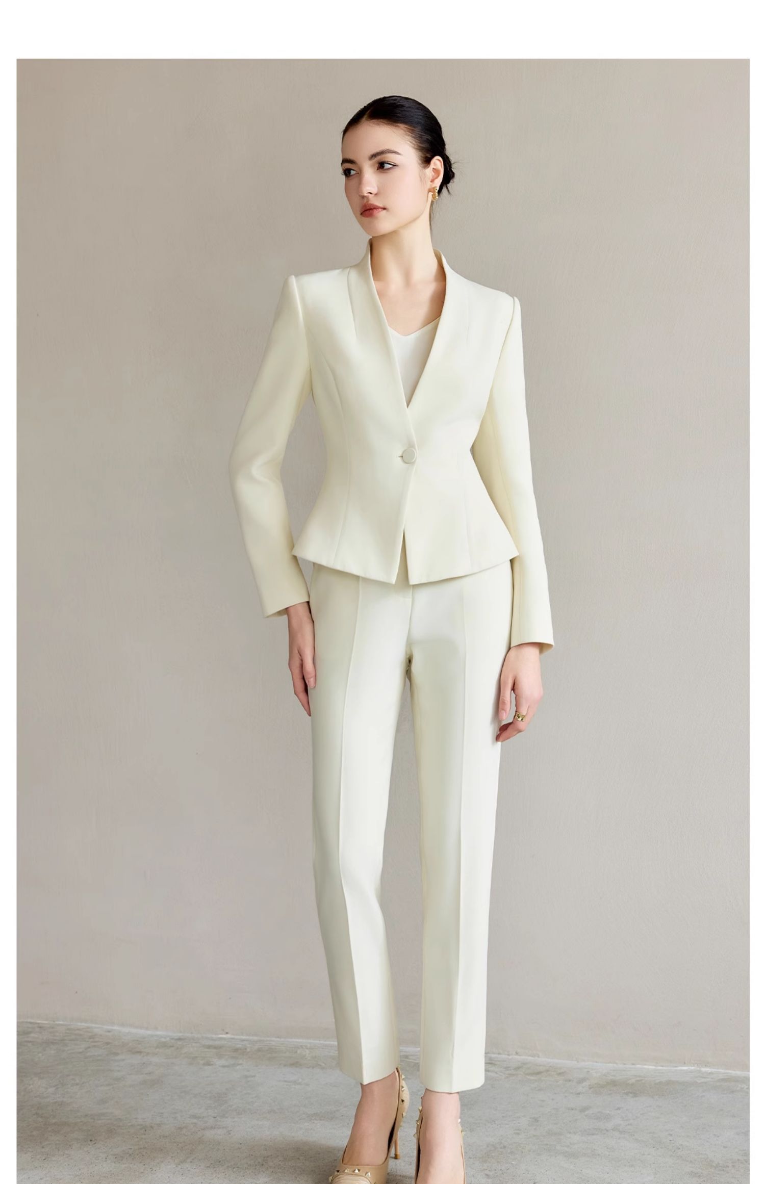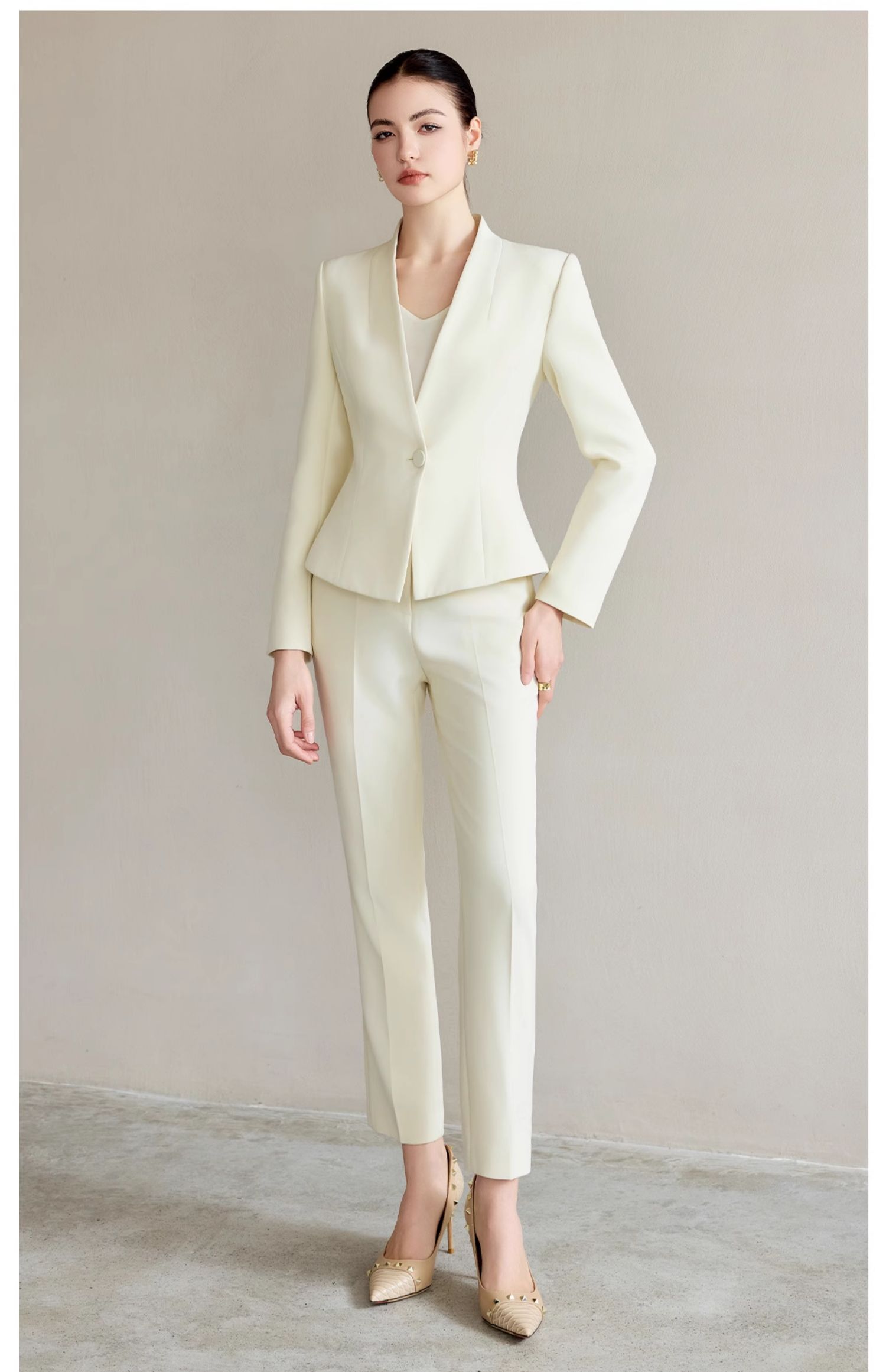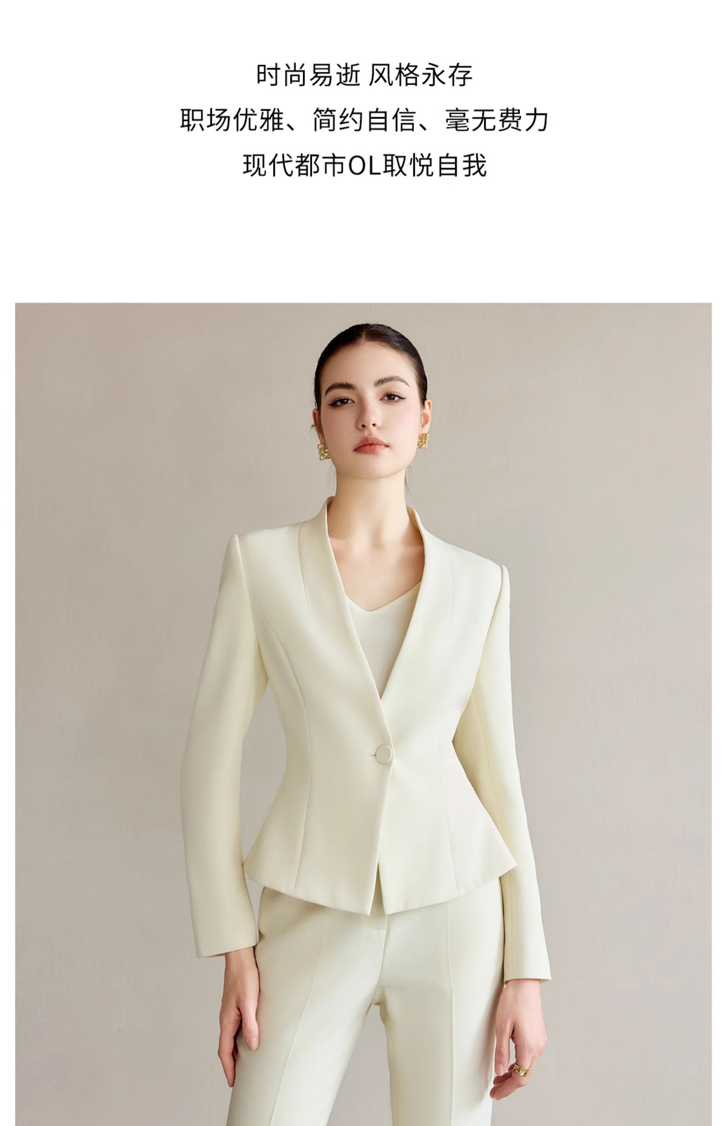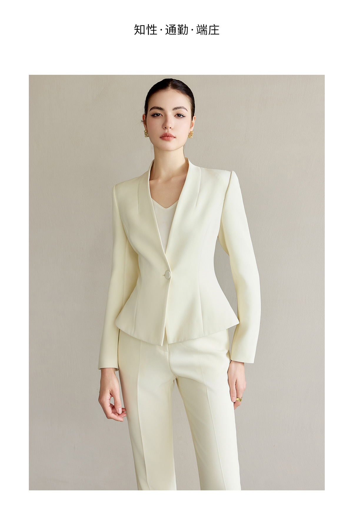 IWY/米白色工作服女职业气质套装新款时尚一粒扣西服正装两件套CP2227