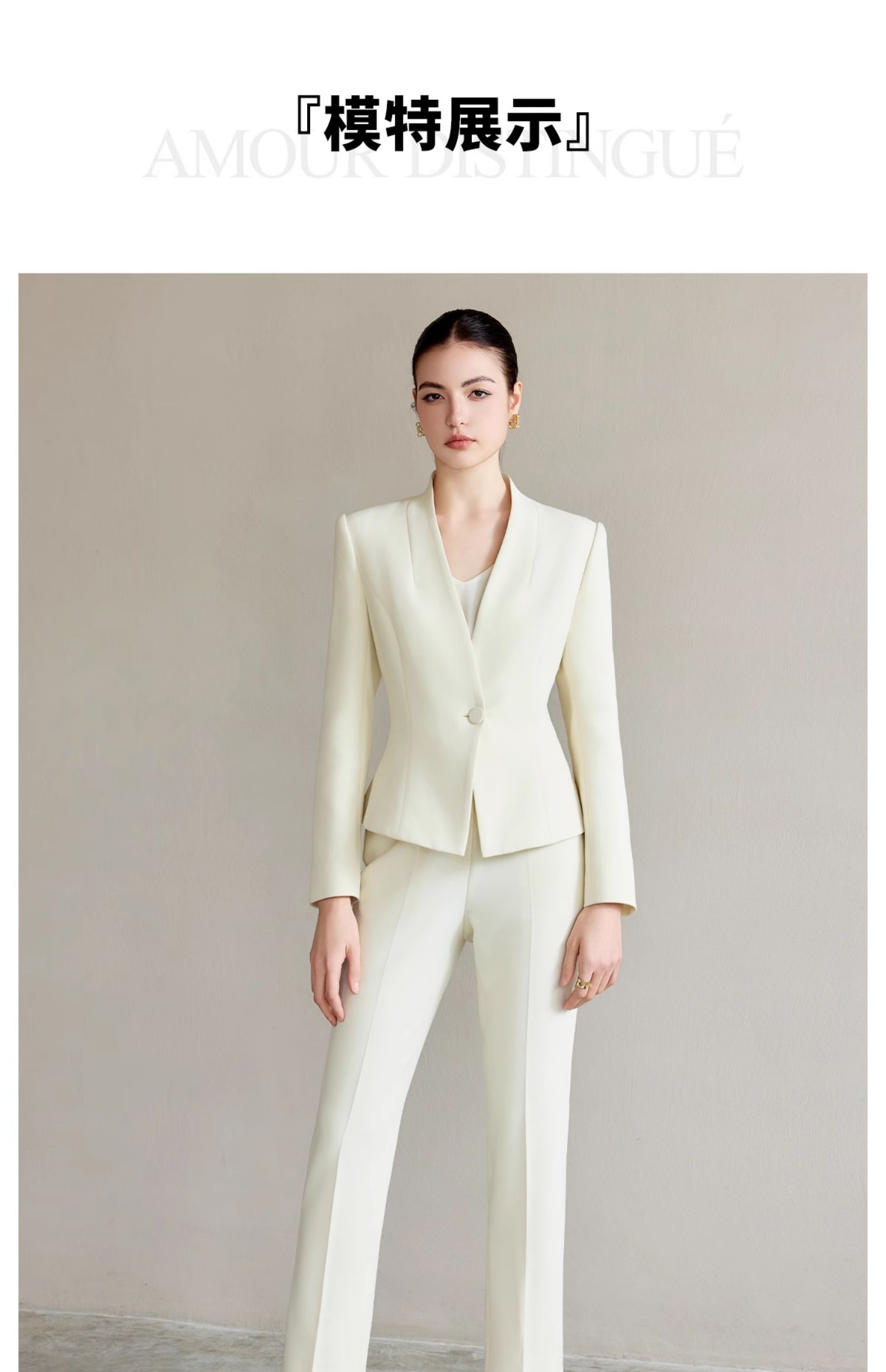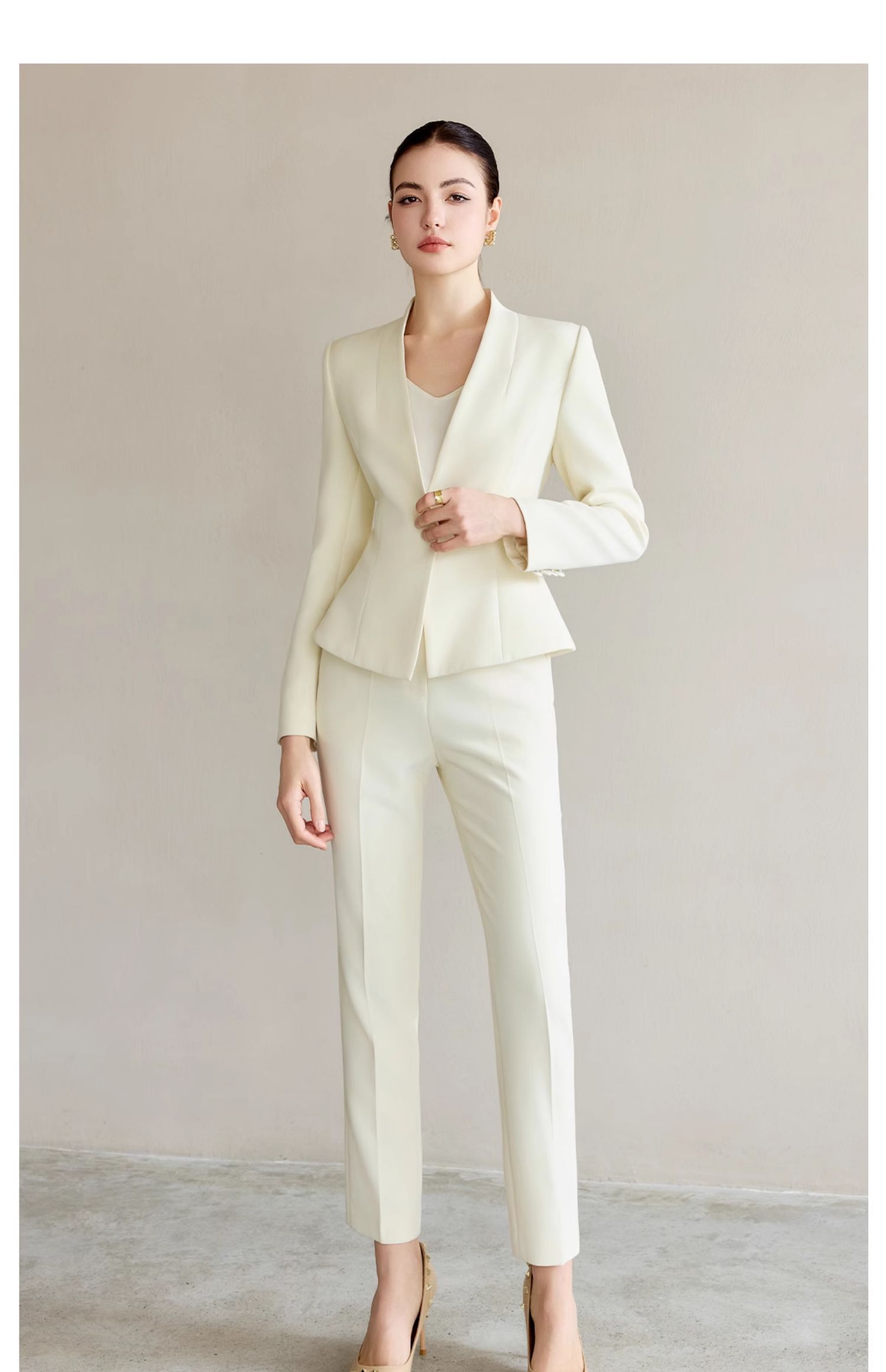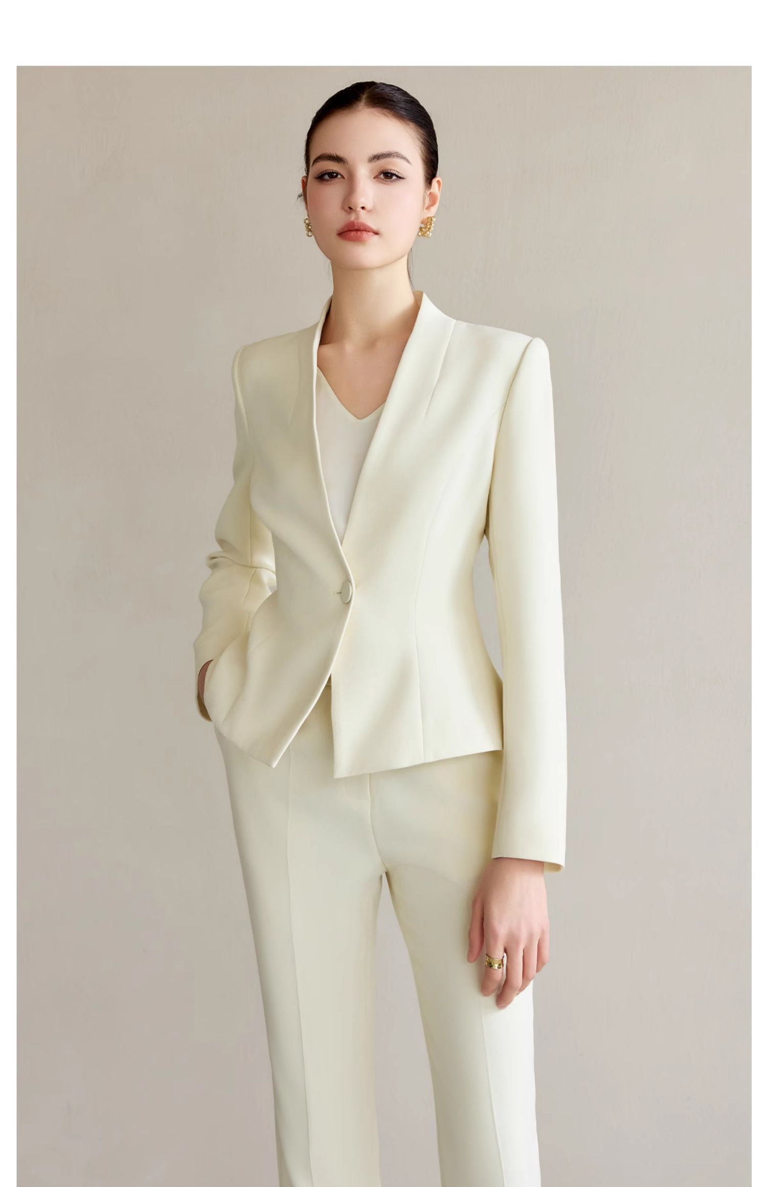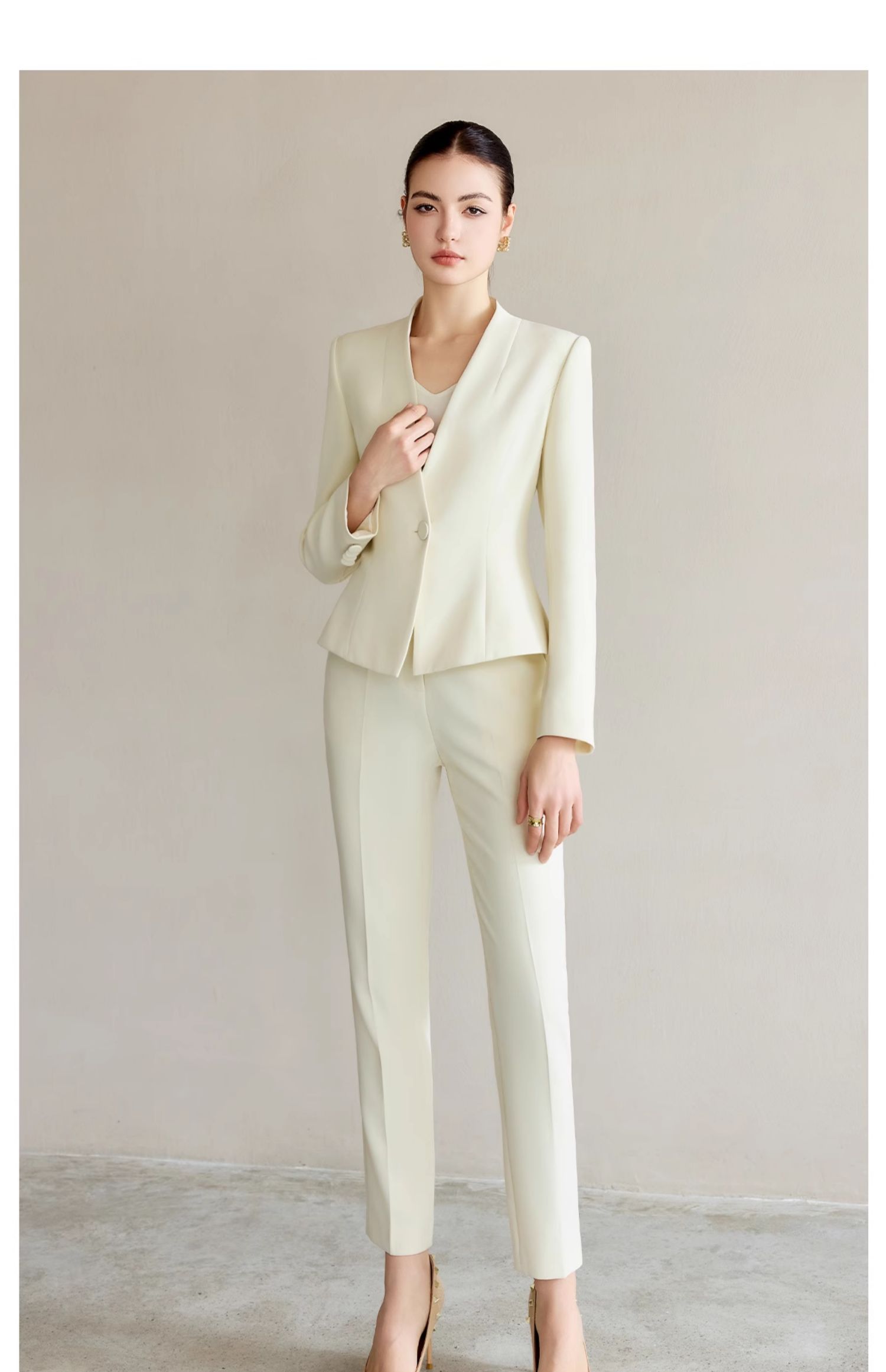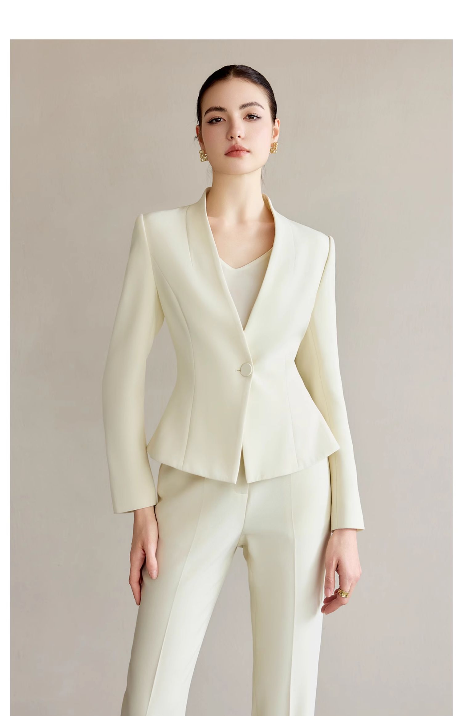 IWY/米白色工作服女职业气质套装新款时尚一粒扣西服正装两件套CP2227