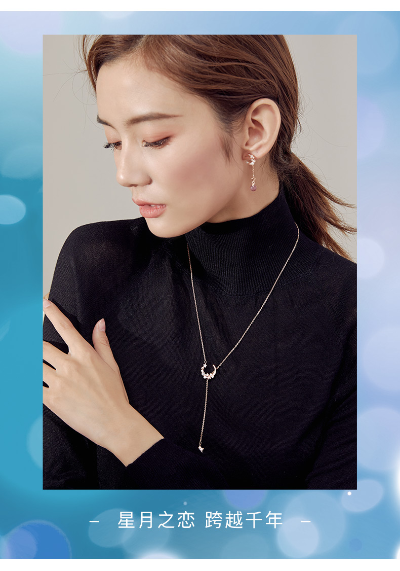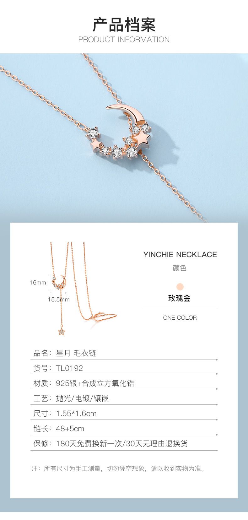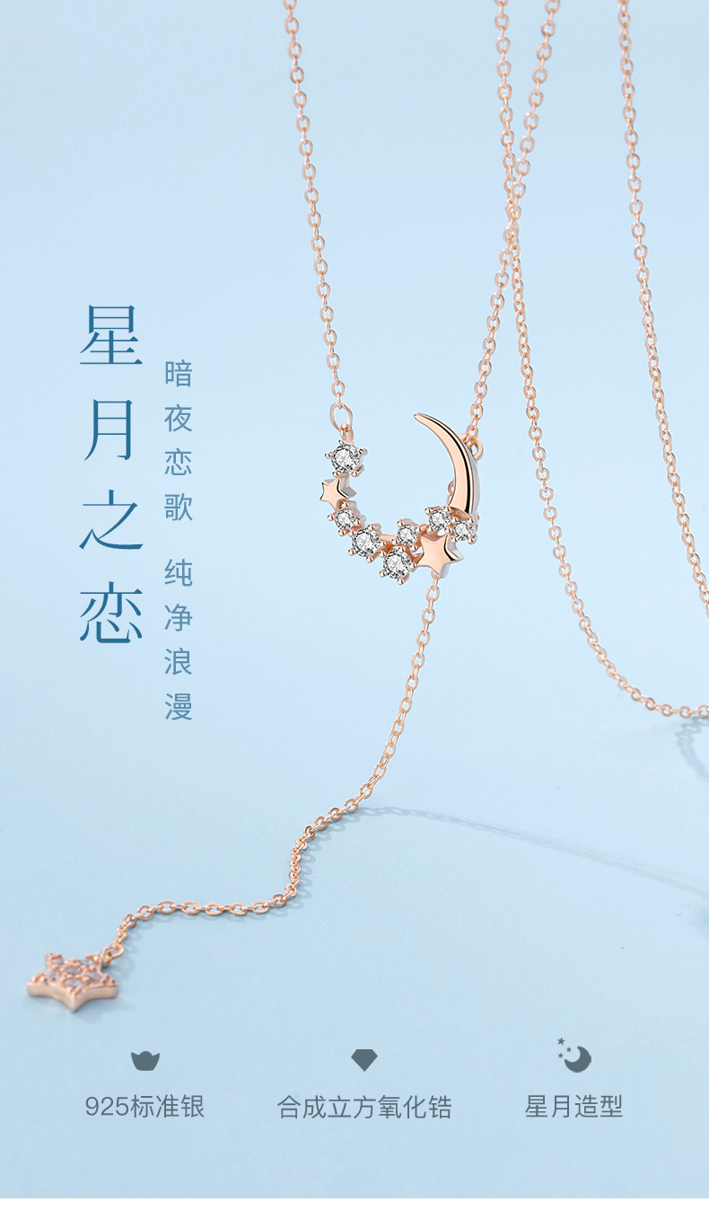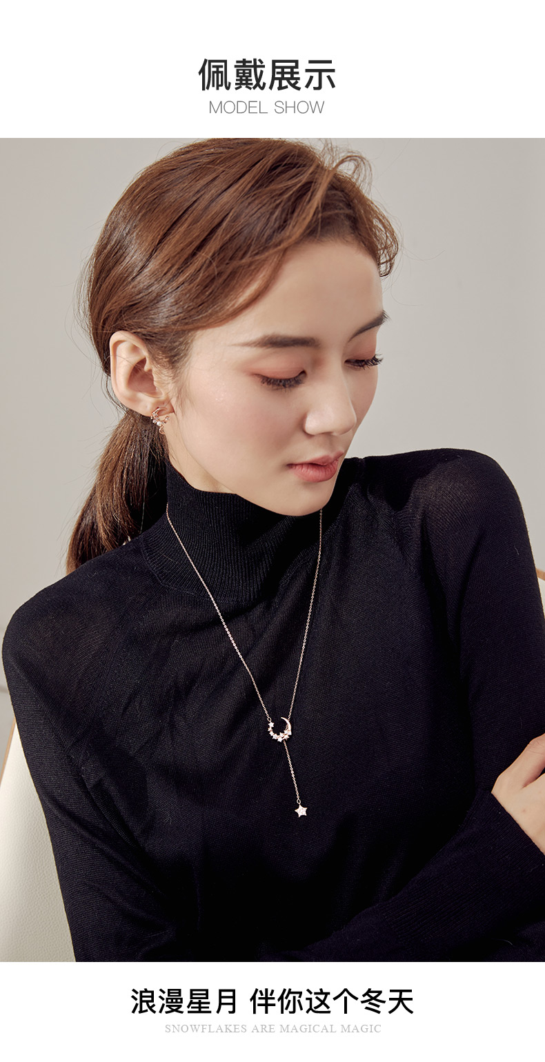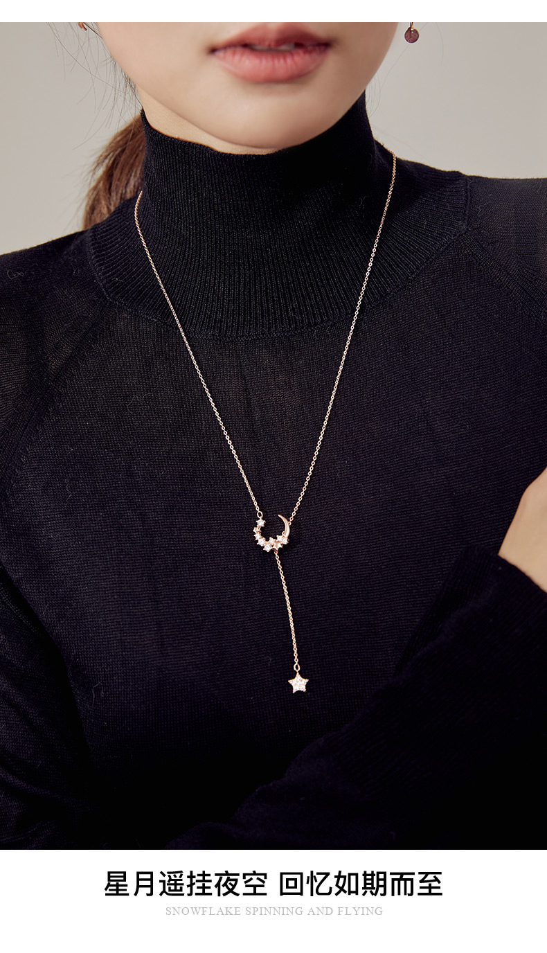银千惠/星星月项链女纯银锁骨链简约气质潮网红吊坠新款礼物送女友