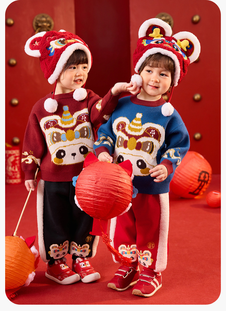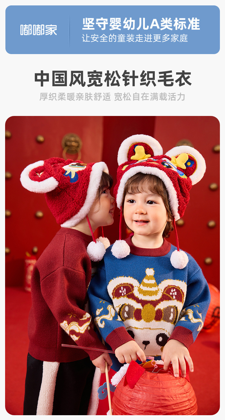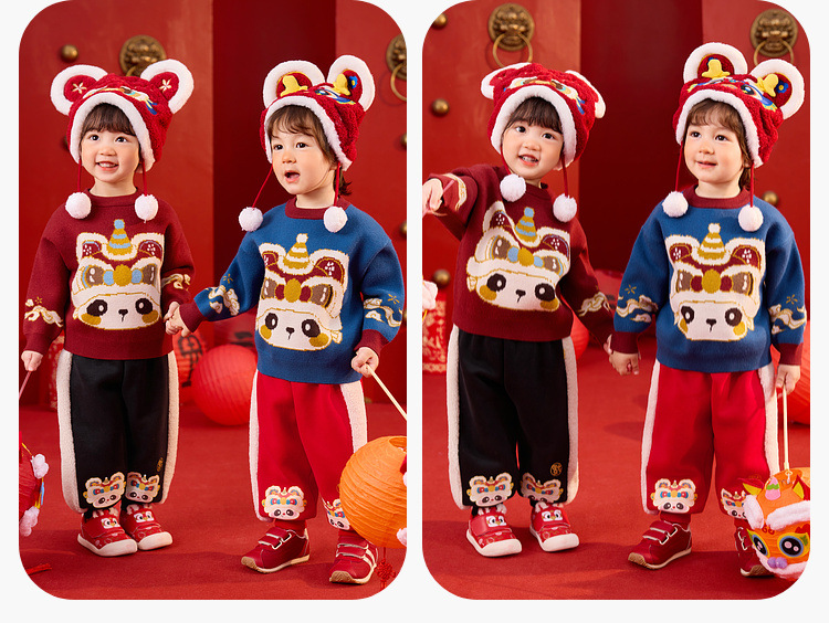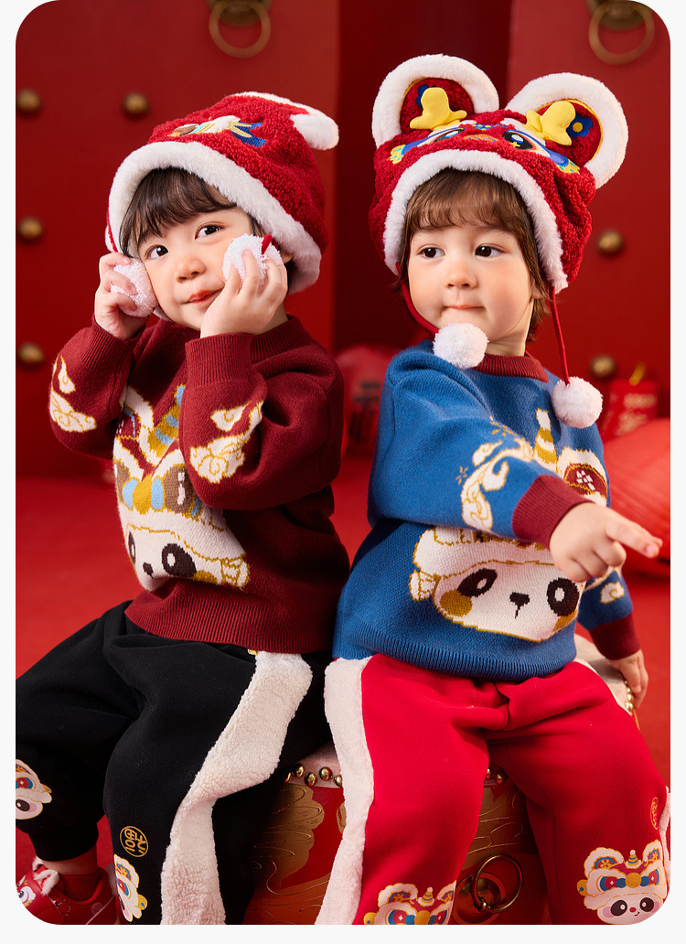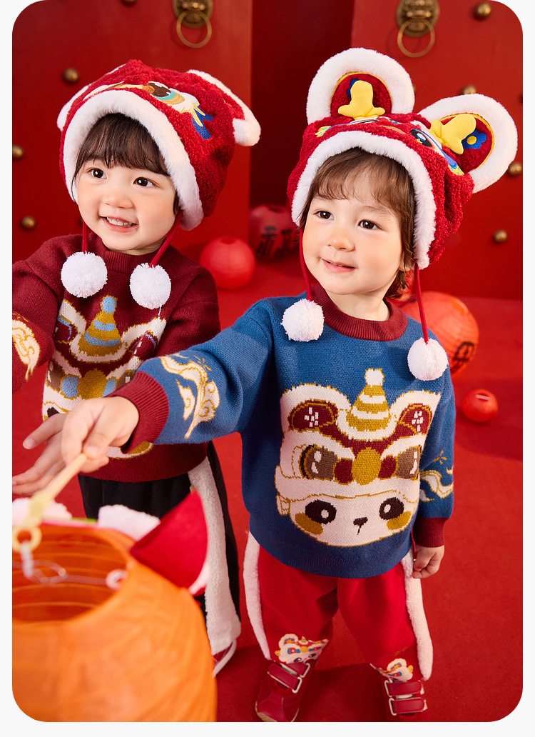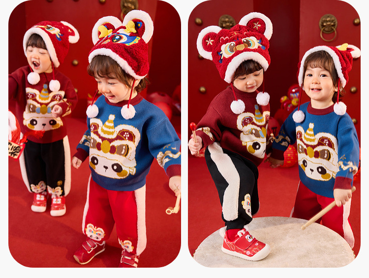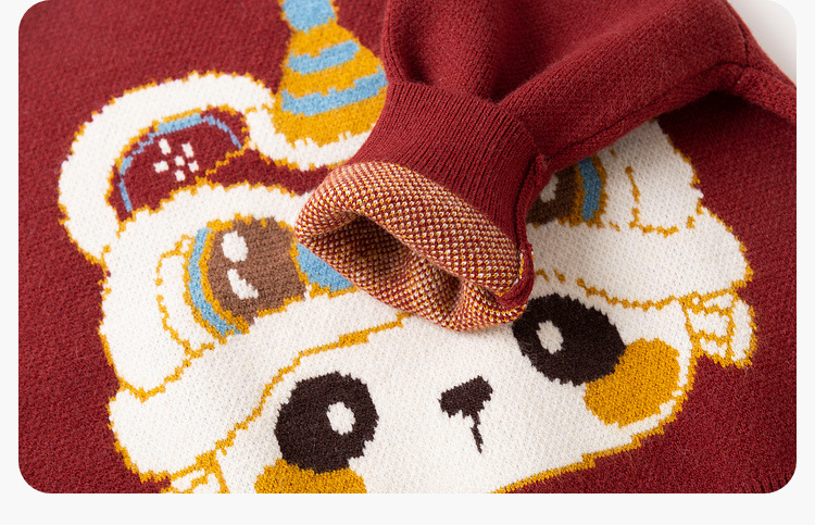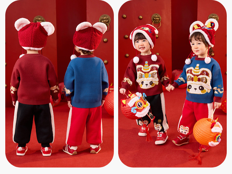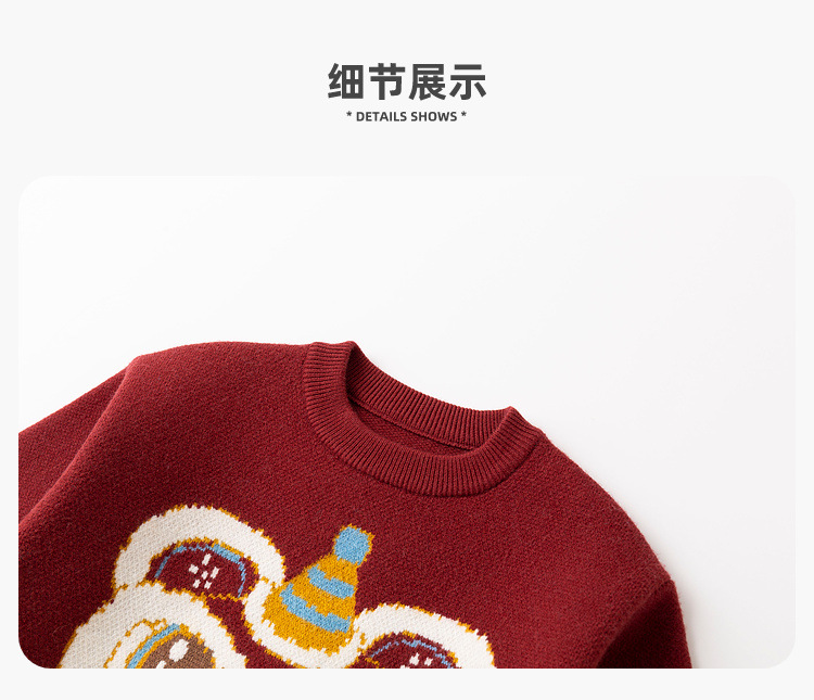 嘟嘟家宝宝新年毛衣冬季新款男童上衣红色喜庆女童针织衫宝宝童装