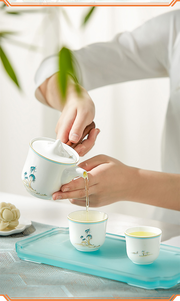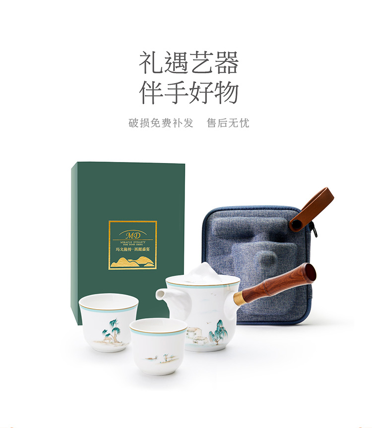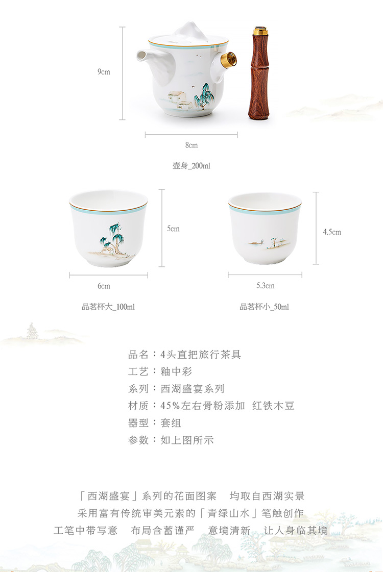 【玛戈隆特】B7F 西湖盛宴一壶两杯骨瓷功夫旅行茶具套装家用便携式礼盒装