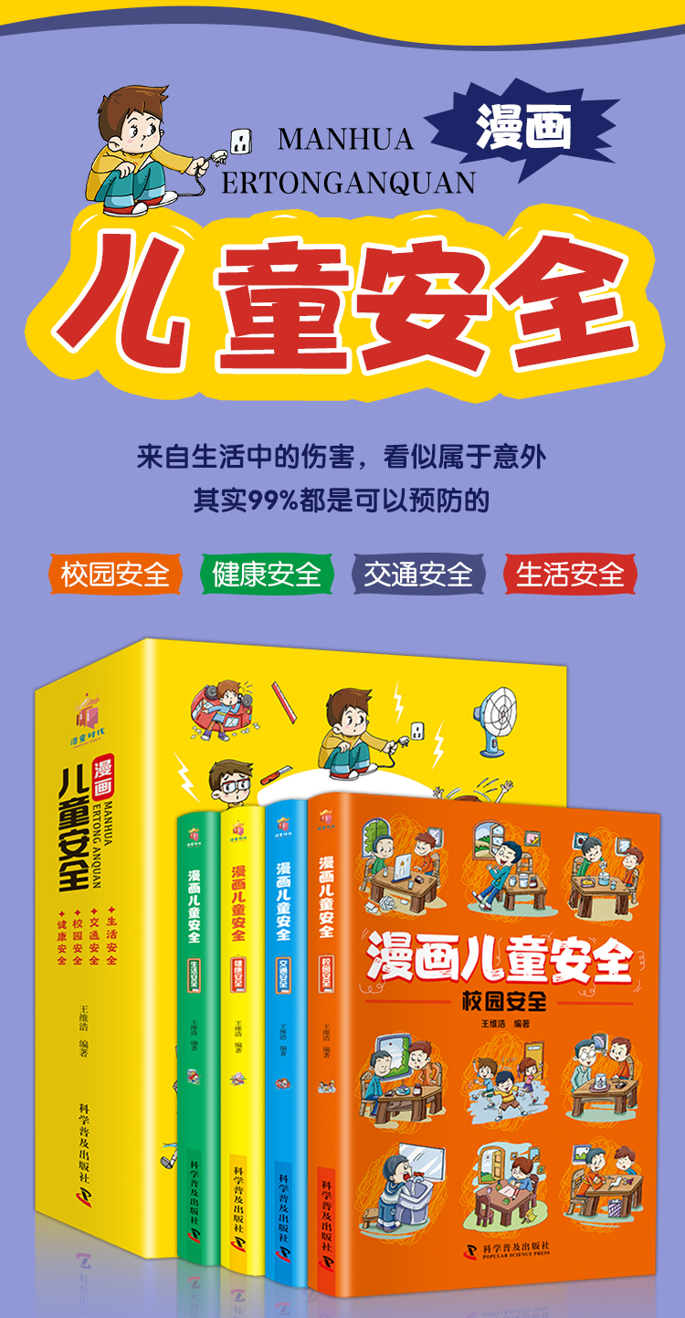 漫画儿童安全教育绘本全套4册 幼儿行为习惯培养校园交通生活居家安全类书籍知识常识幼儿园宝宝学会自我保护意识小学生课外阅读书