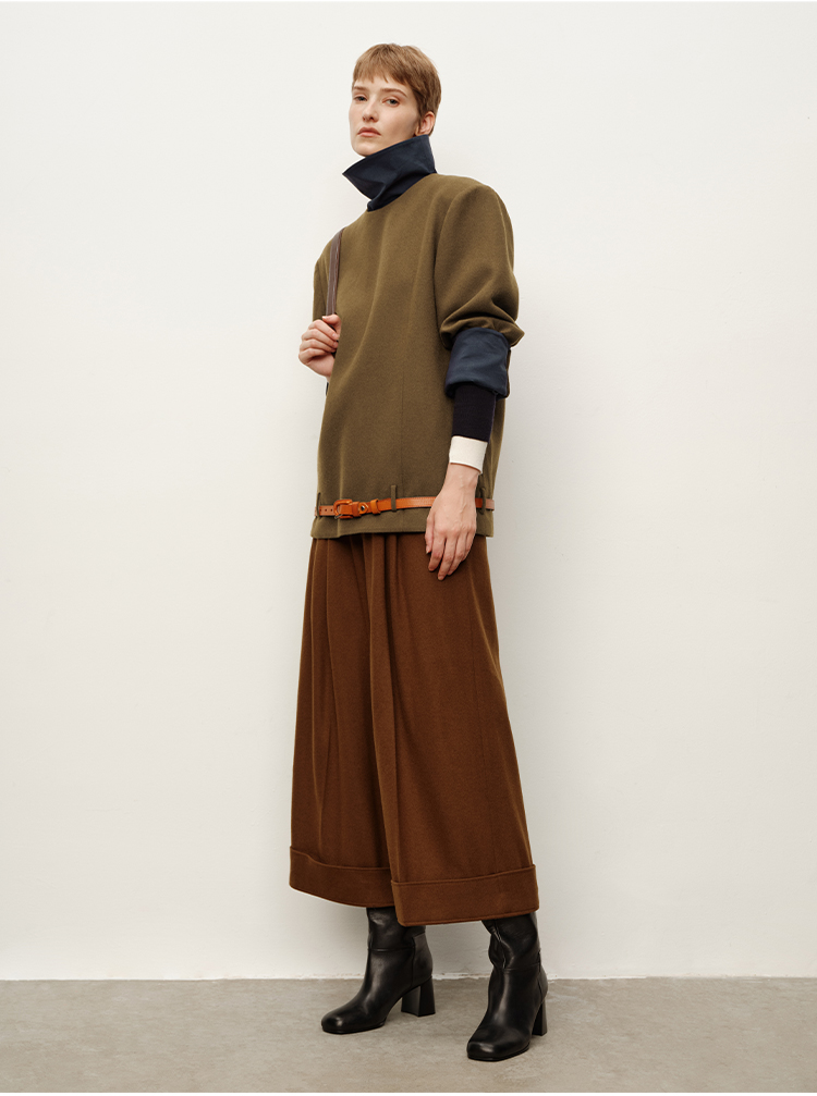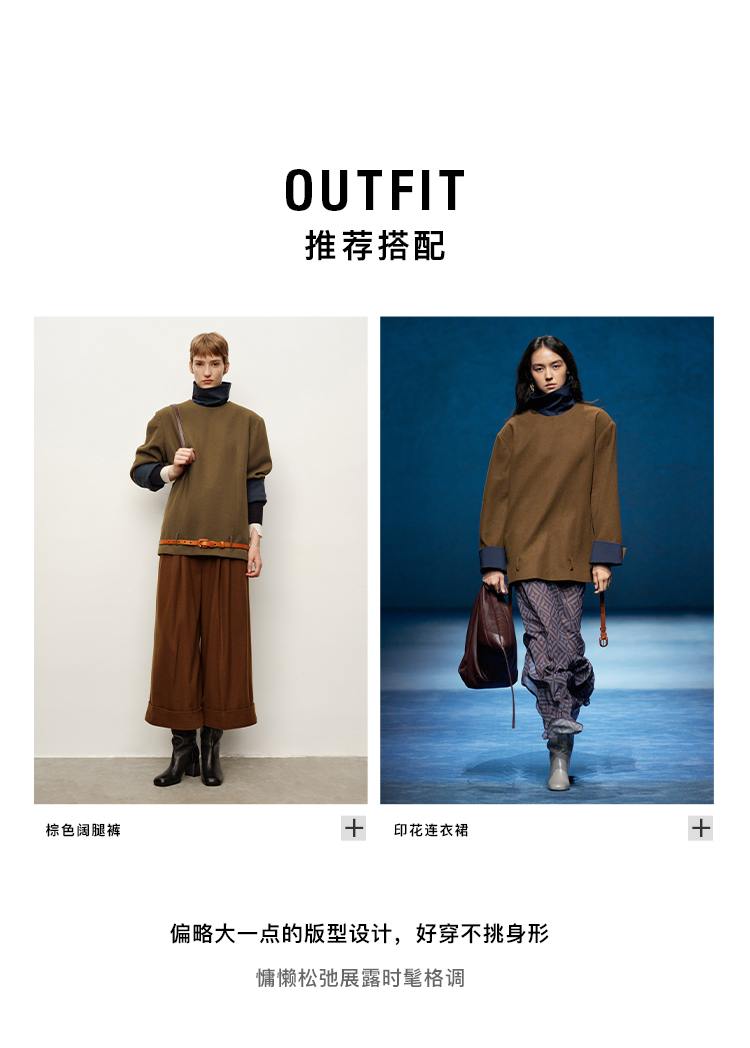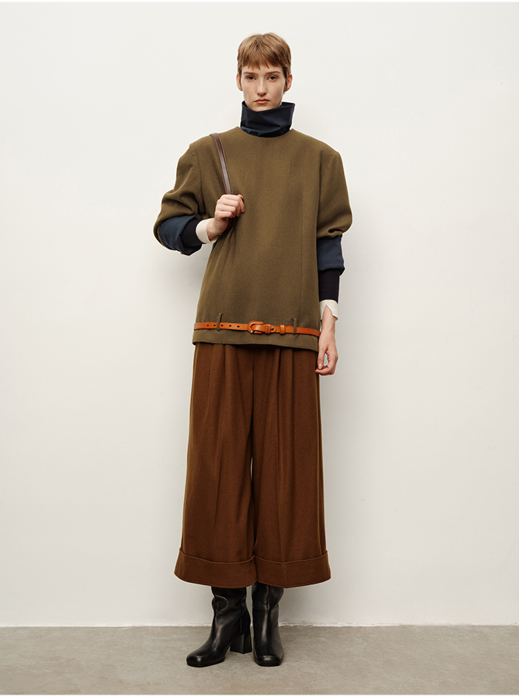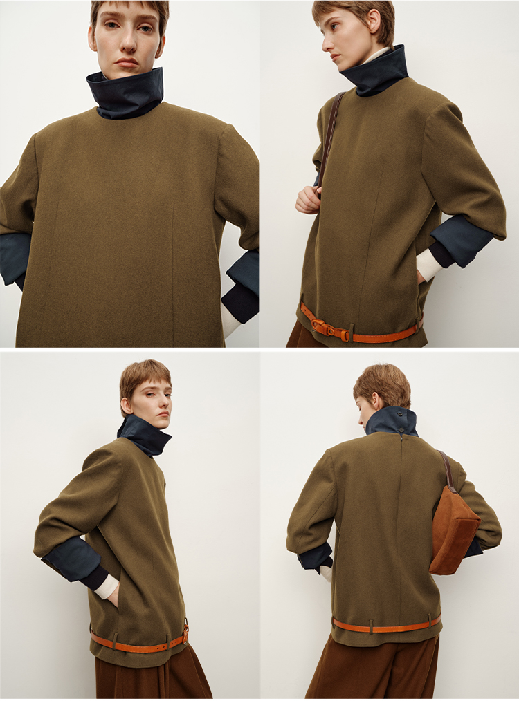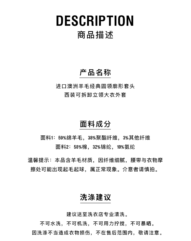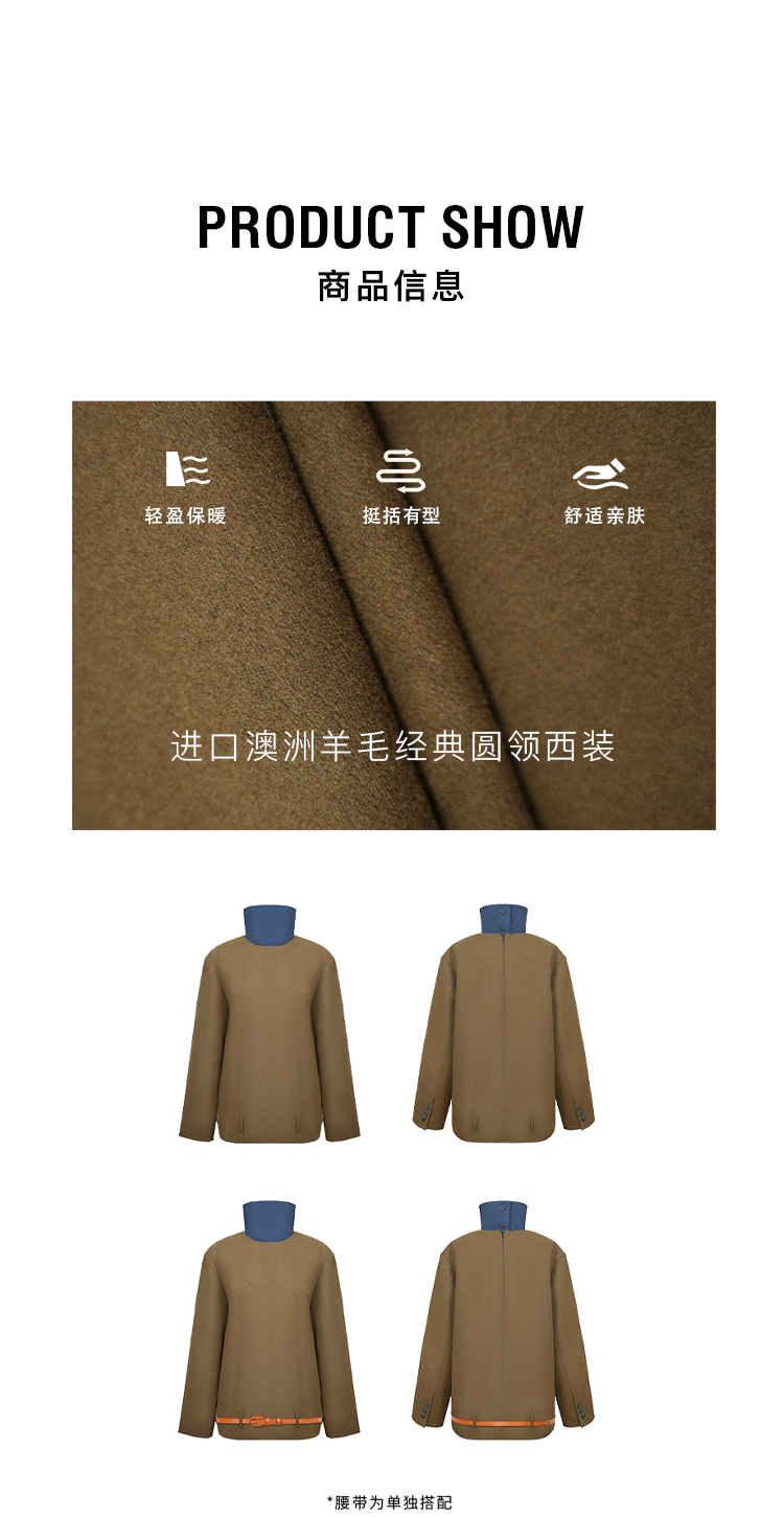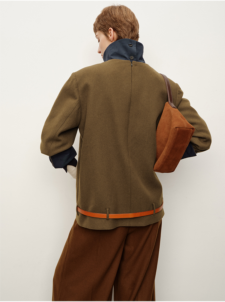 HIDEMI 初剪羊毛经典圆领廓形套头西装可拆卸立领外套大衣