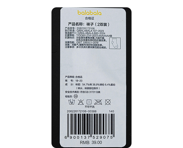【商场同款】巴拉巴拉儿童袜子夏新款网眼透气男童棉袜速干两双装