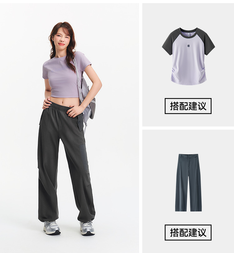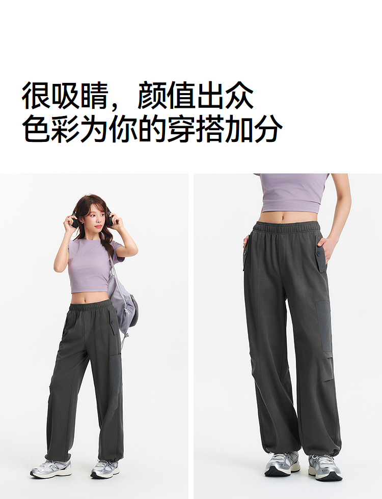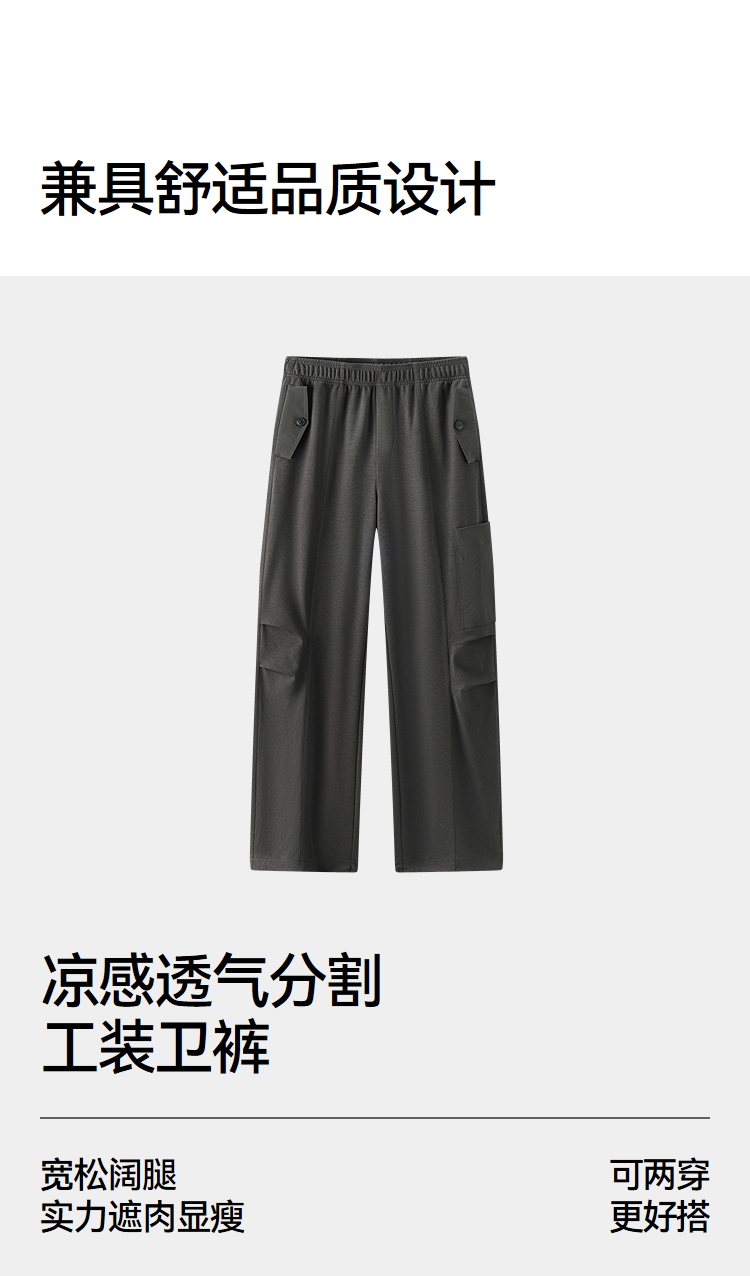 森马休闲裤女夏分割抽绳工装裤凉感宽松街头显瘦高街户外阔腿卫裤