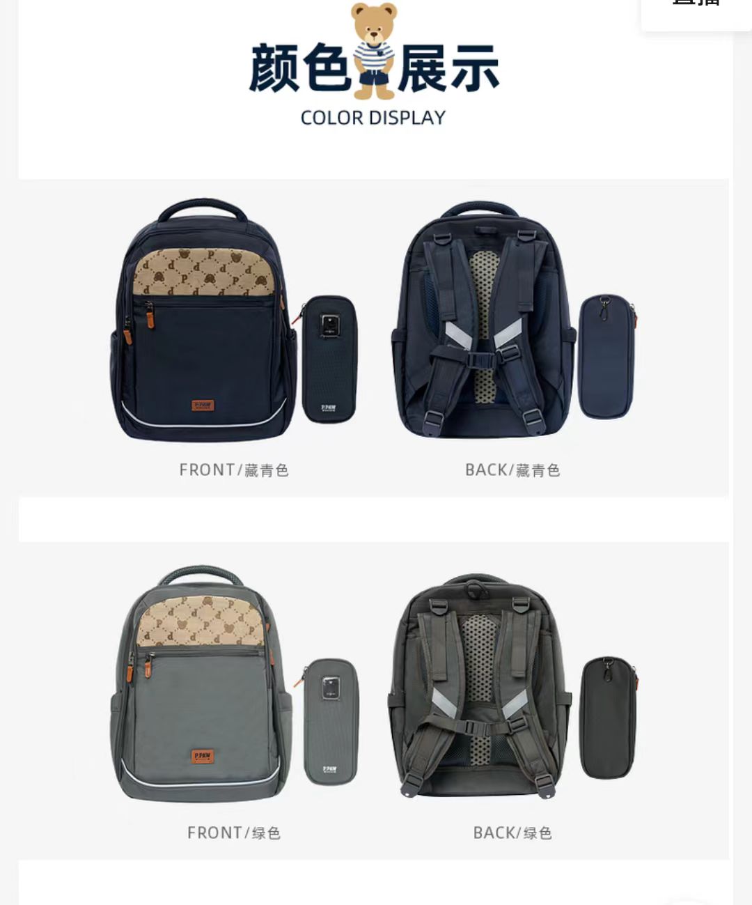 [PawinPaw]8F小熊童装2024年新款男童大容量书包儿童双肩包赠笔袋