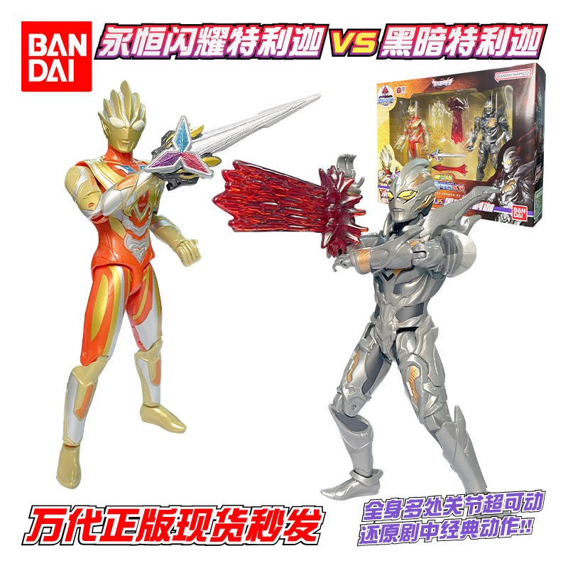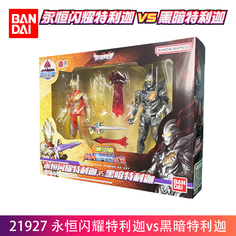 万代奥特曼 豪华版奥特超可动系列 永恒闪耀特利迦VS黑暗特利迦