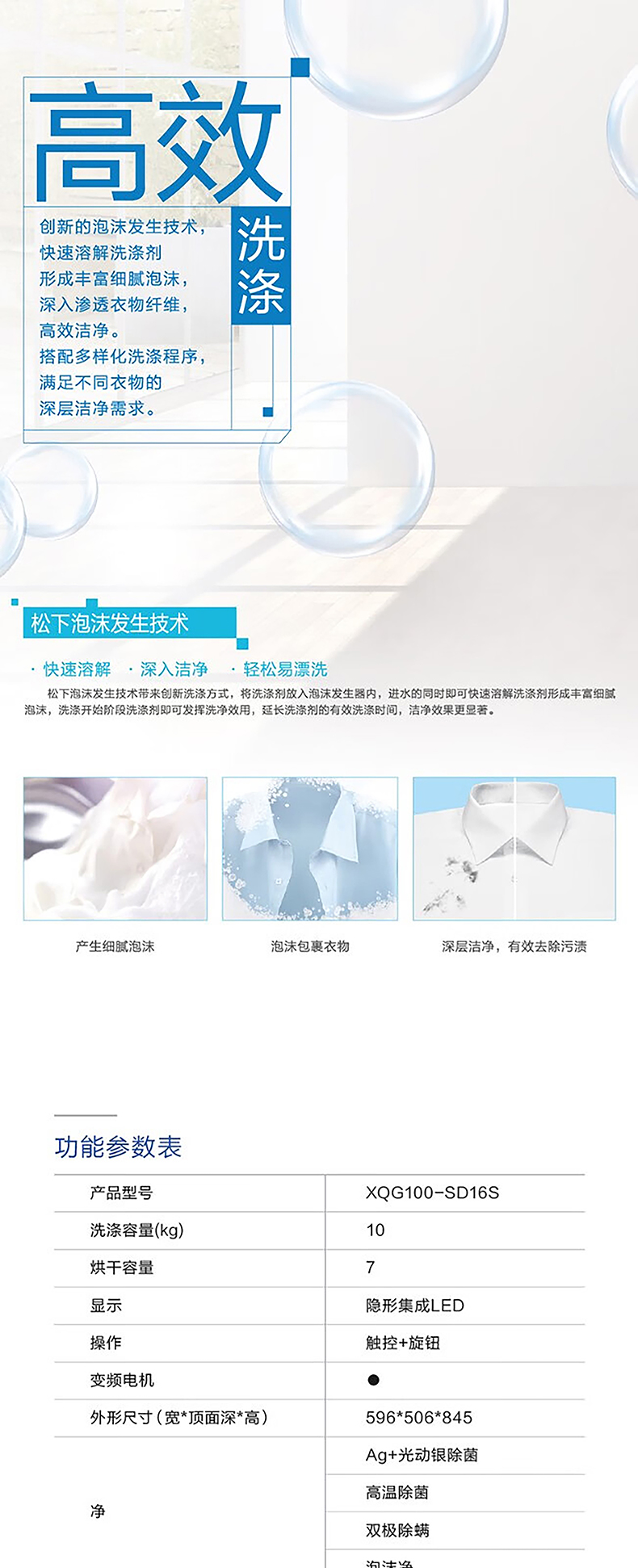 松下 10KG滚筒洗衣机 XQG100-SD16S