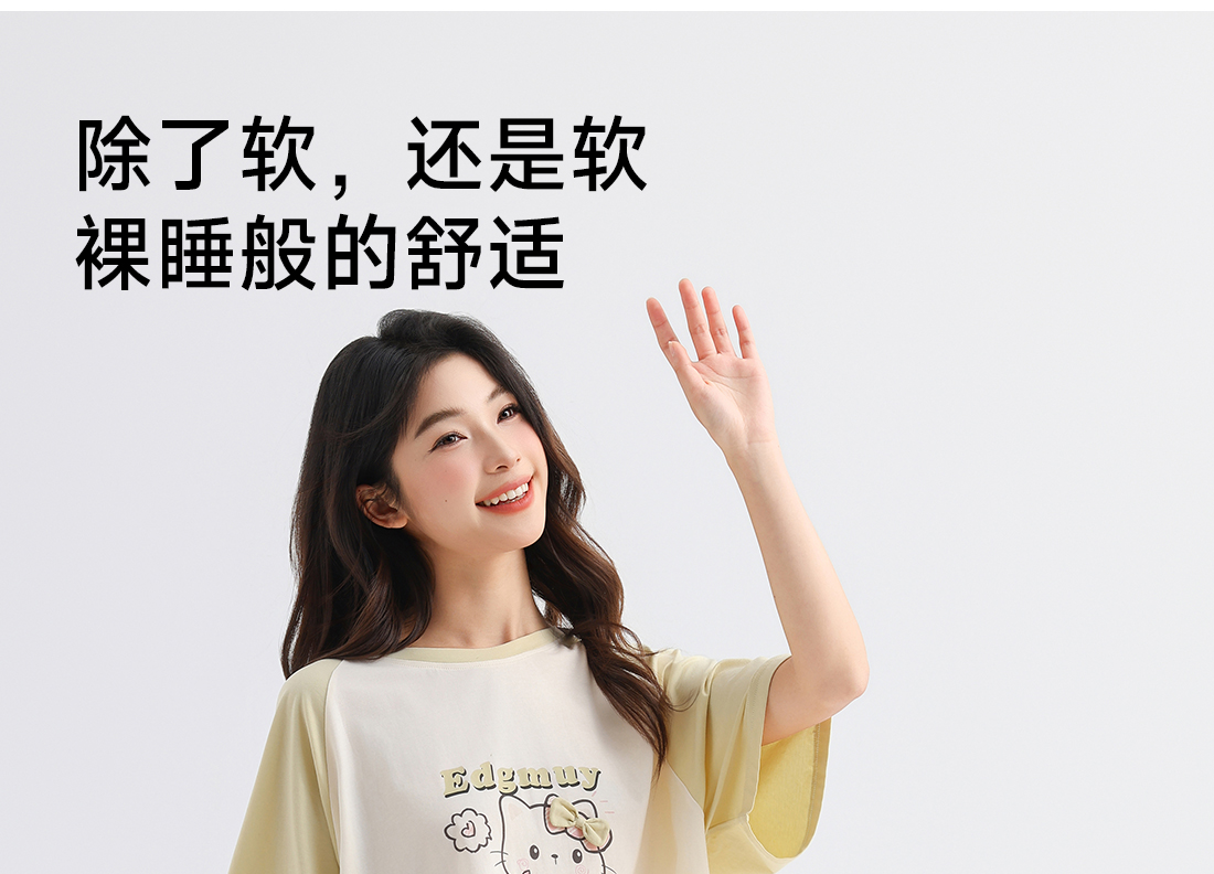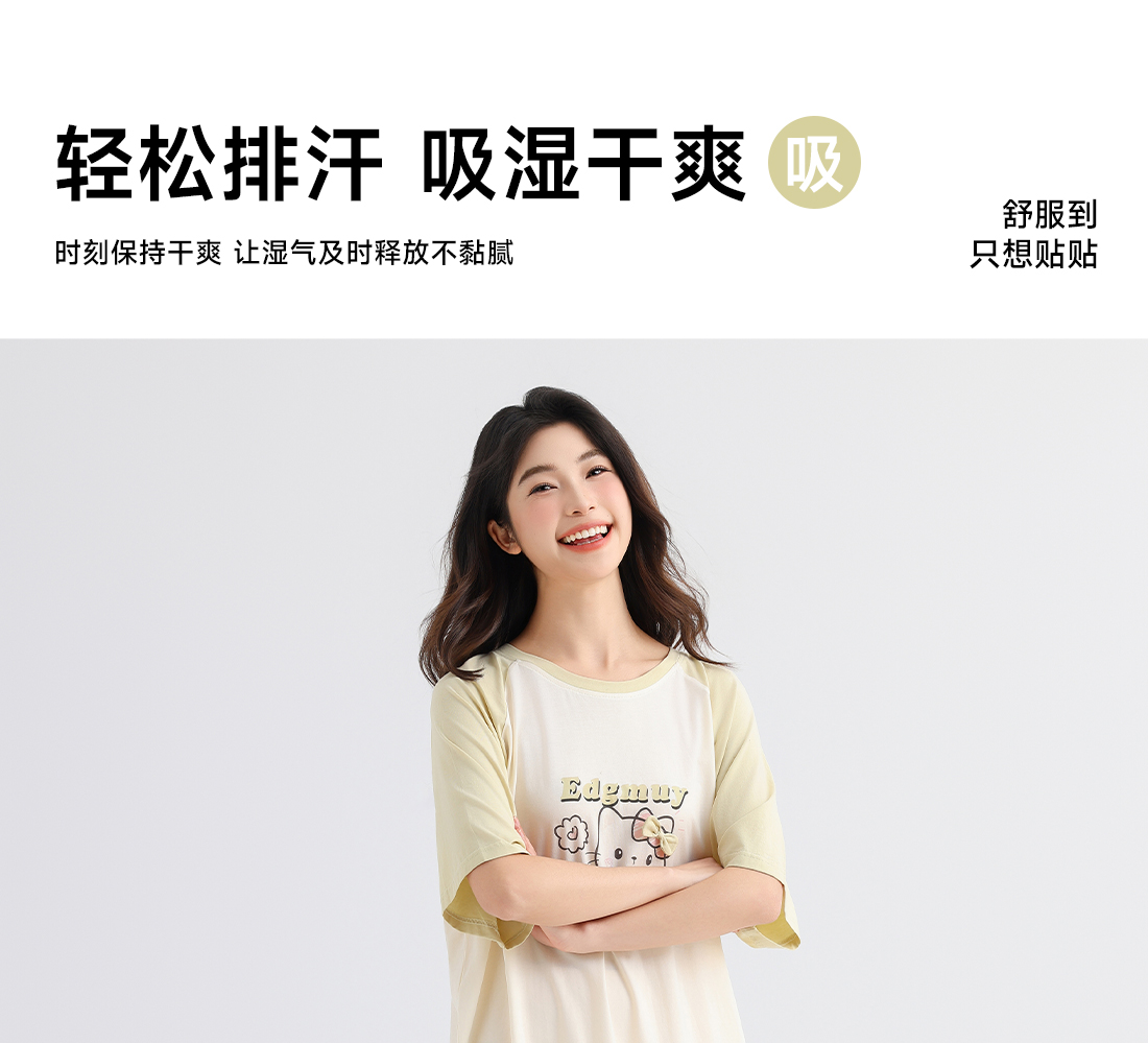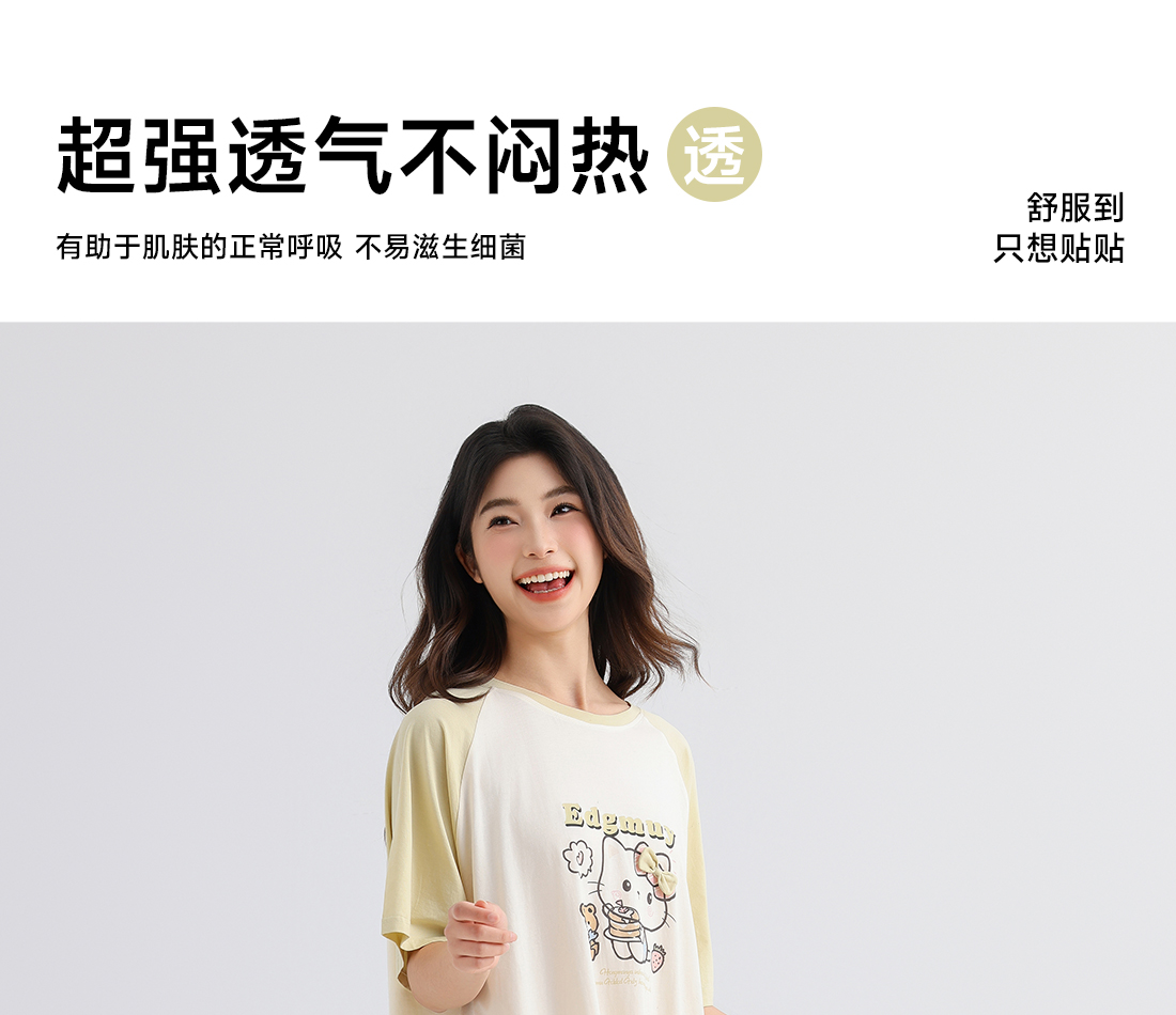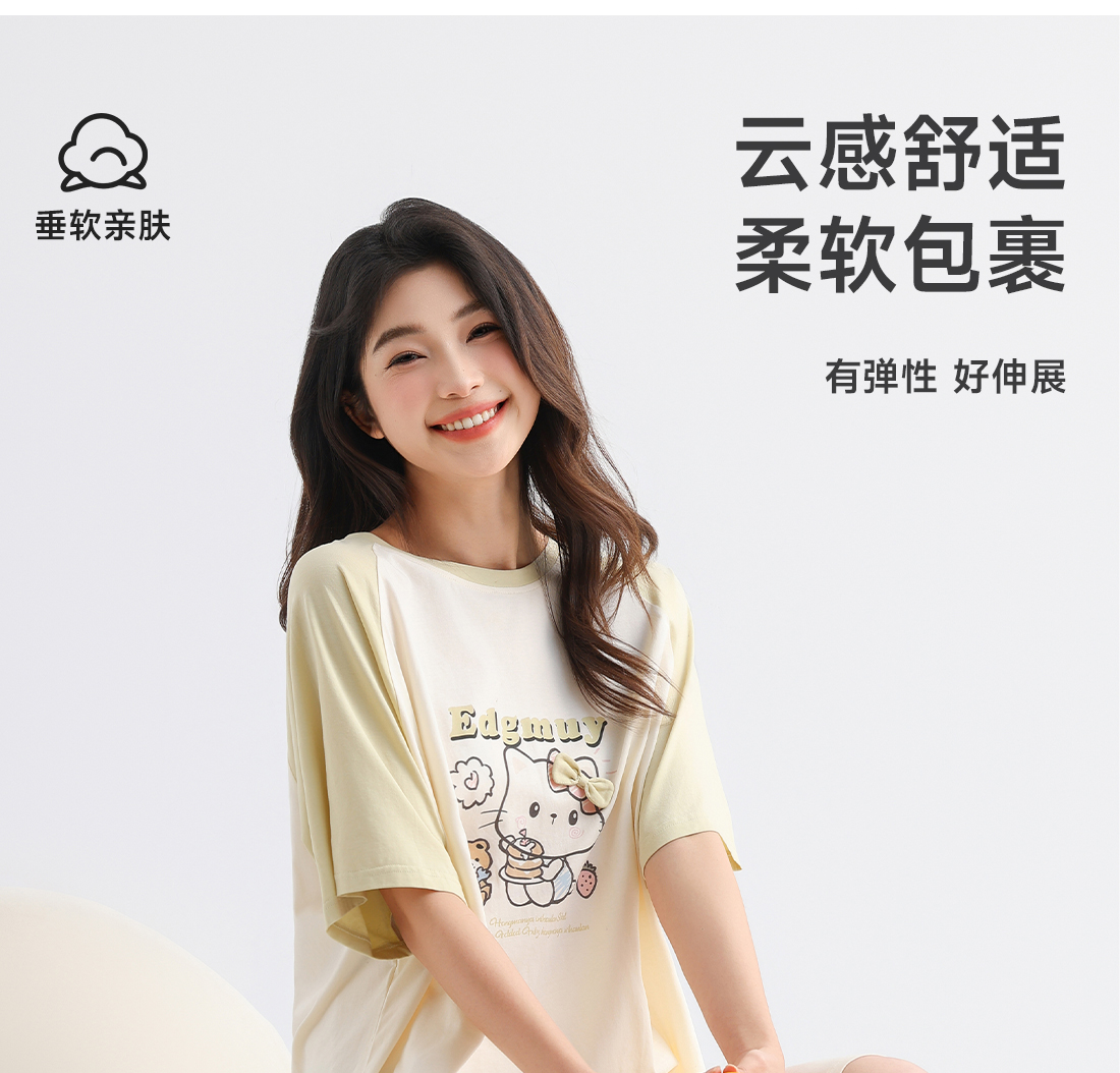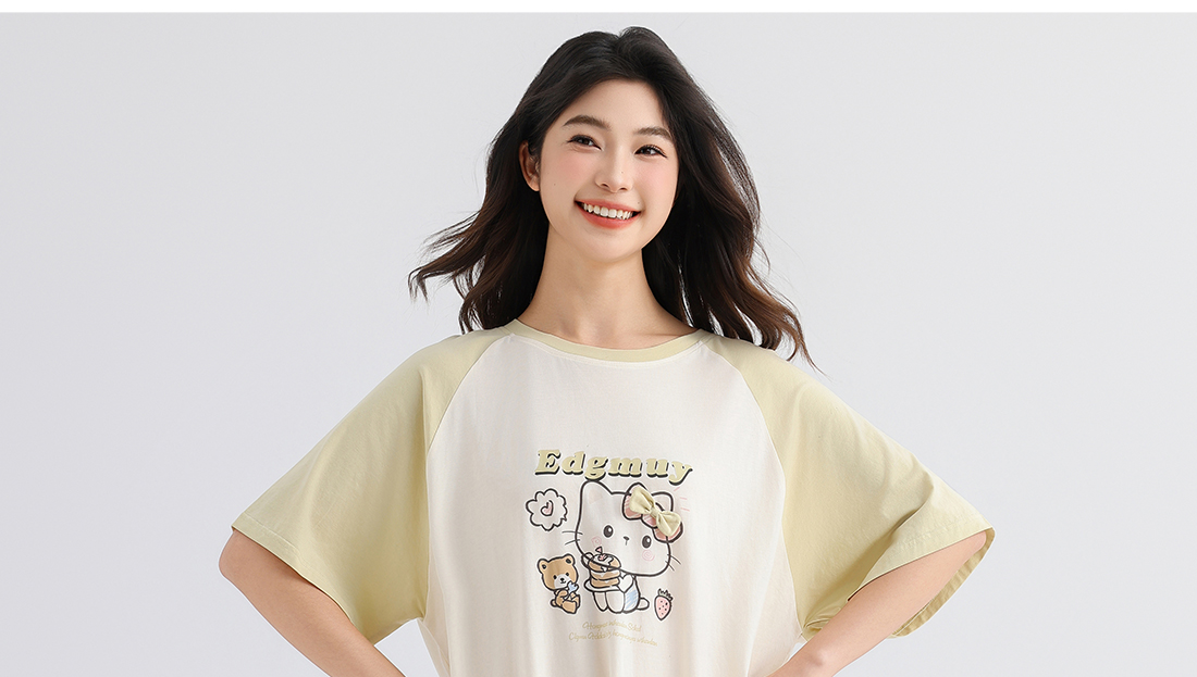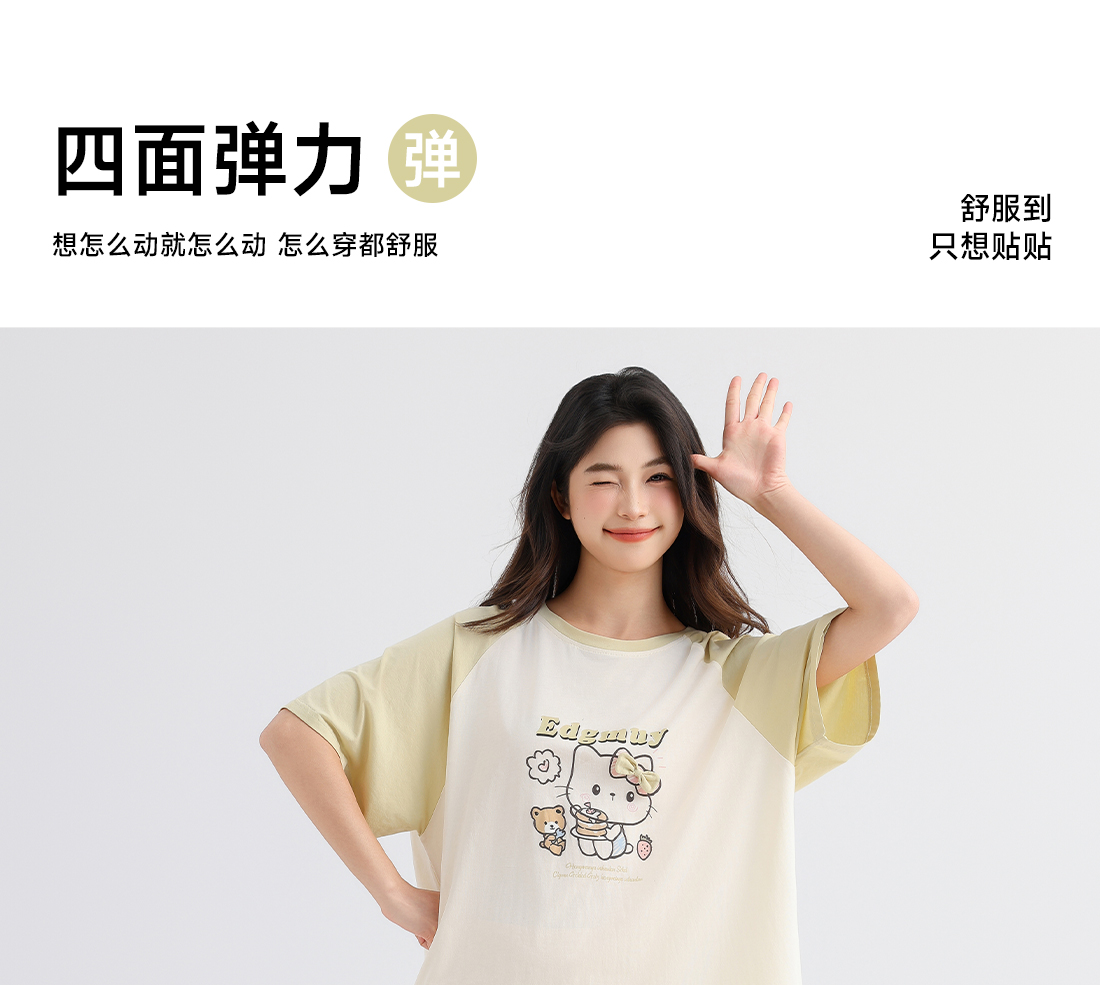 美季美优睡裙女士2025新款天丝棉夏季可爱卡通短袖长裙睡衣家居服