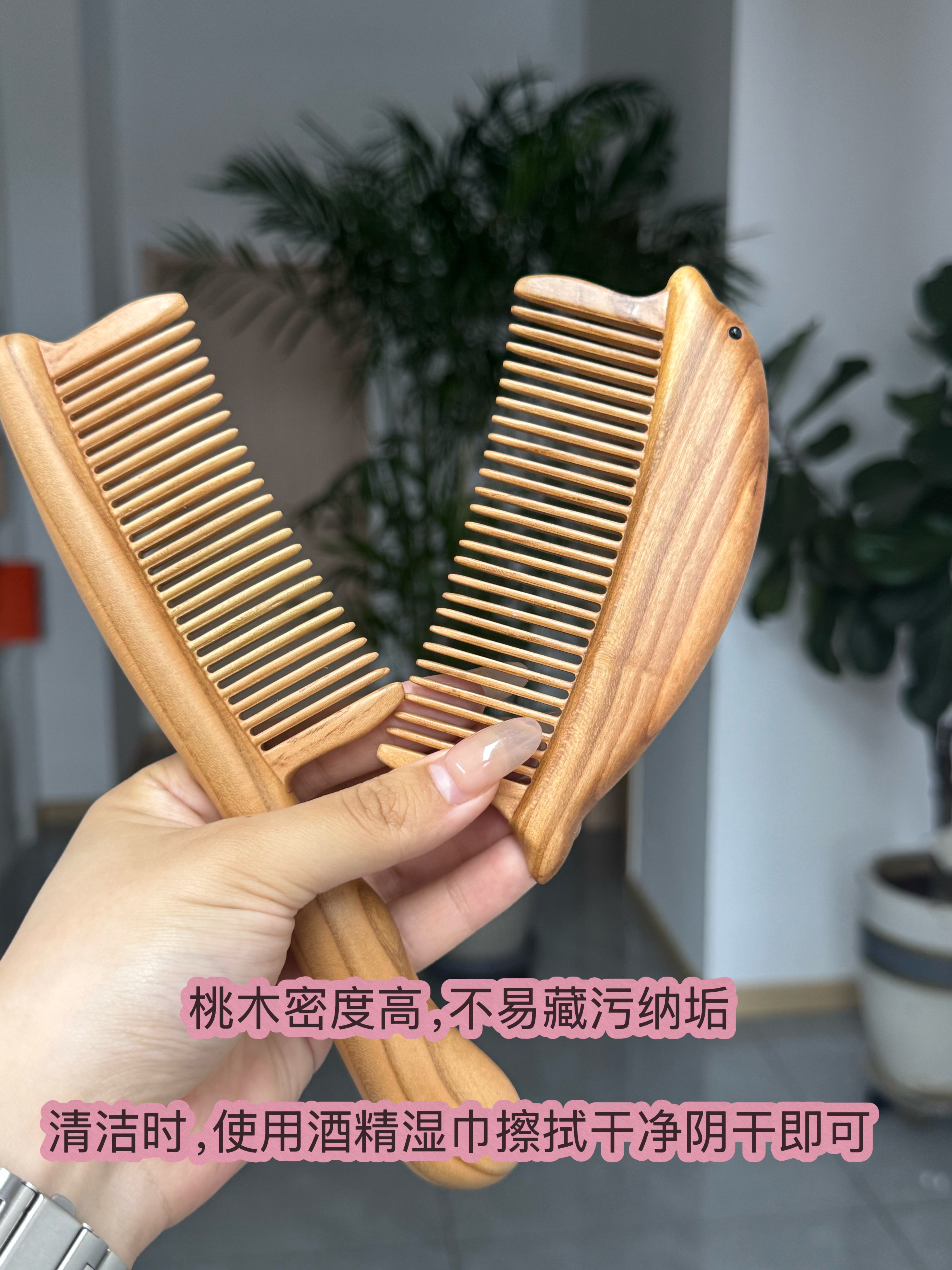 大家也记得保持桃木梳洁净,用酒精湿巾清洁擦拭,阴干即可。