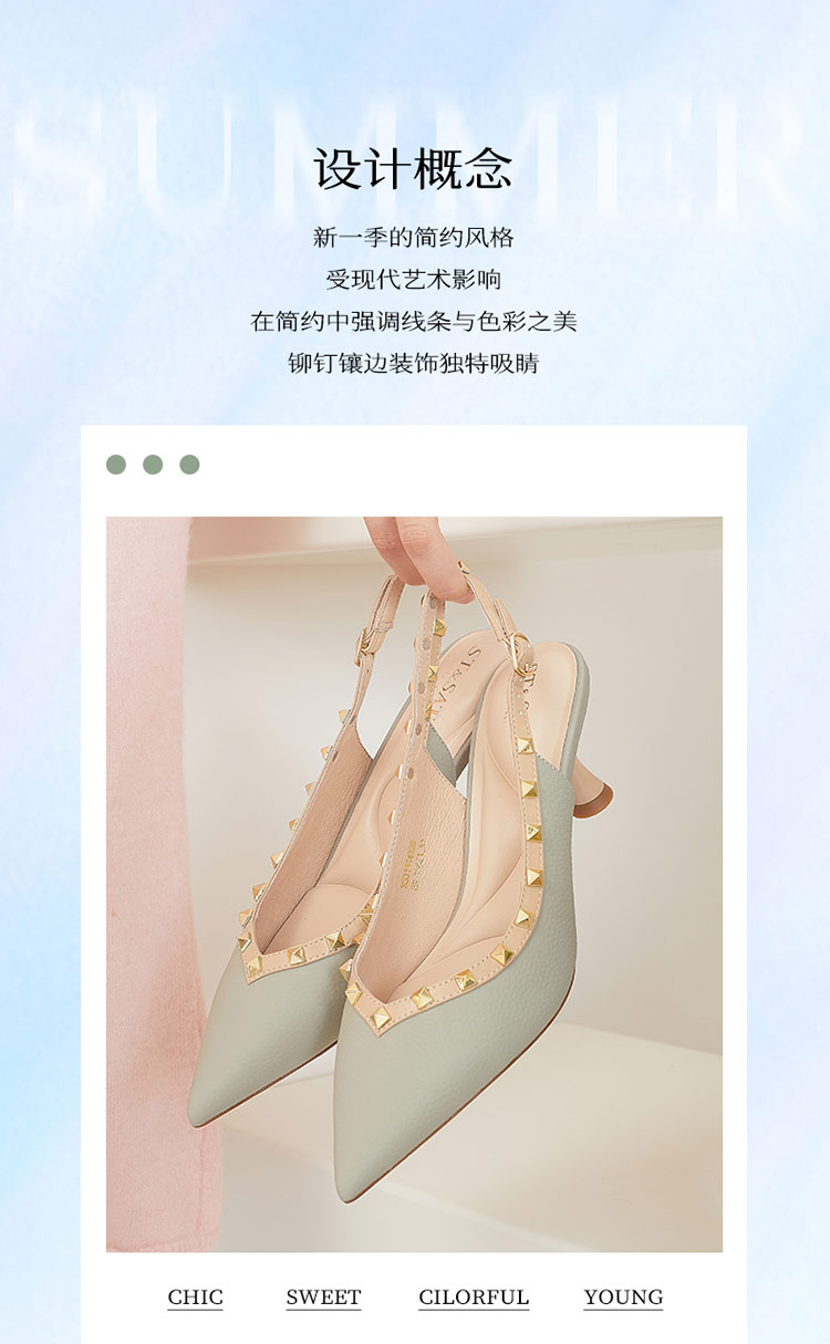 星期六26夏新款法式方头一字型凉拖SSE2110CP3