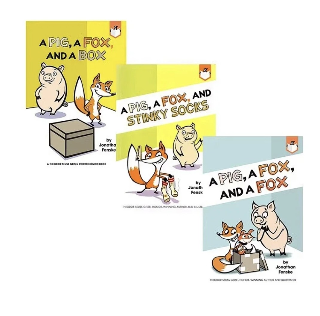 Jonathan Fenske 的 2016 年 Theodor Seuss Geisel 荣誉书 《猪、狐狸和盒子》和 猪、狐狸和臭袜子的明星们 在另一个幽默的三部分故事中回归,旨在吸引早期读者。这个故事包含迷人的人物,结合简单的文字、生动的插图和大笑的幽默,有助于增强孩子的自信心并培养终生读者!