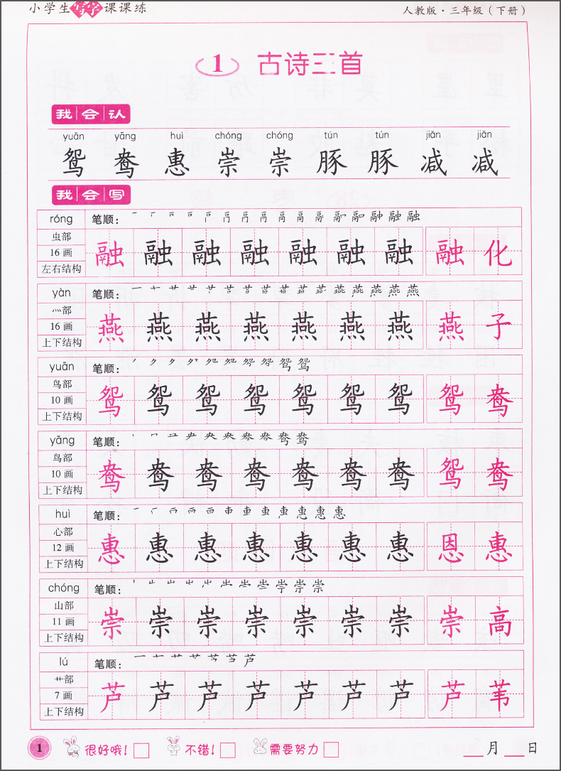 2020部编人教版语文课本同步练字帖三年级下册练字本写字课课练小学生RJ版写字课课练小学3年级下册下学期笔画笔顺铅笔楷书正楷字