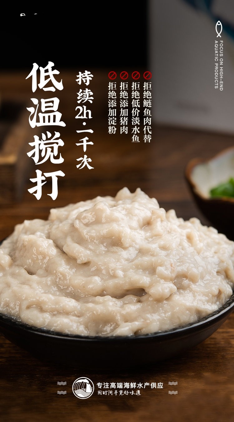 由于鱼馅制作过程不添加增稠剂,胶,淀粉,其他鱼类等添加物,所以鱼肉本身不会特别粘稠。