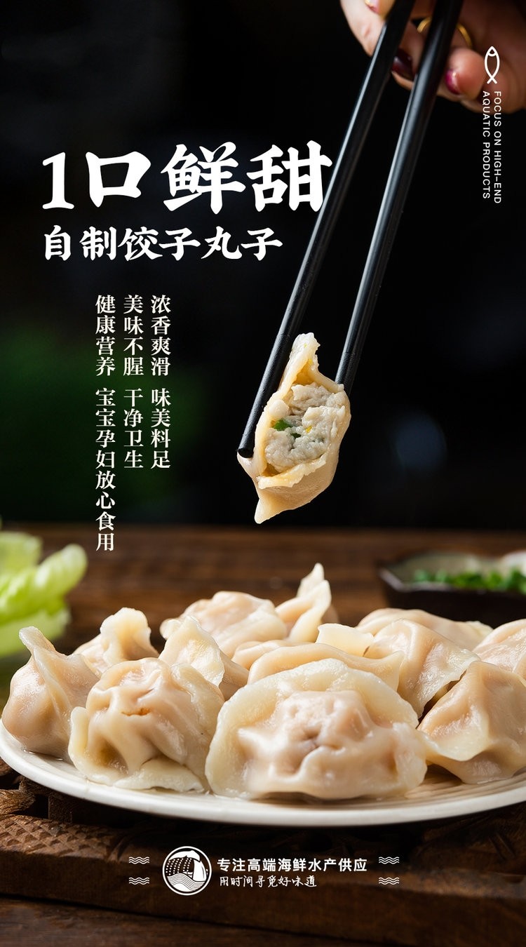 一口鲜甜自制饺子、丸子。老少皆宜的海洋盛宴