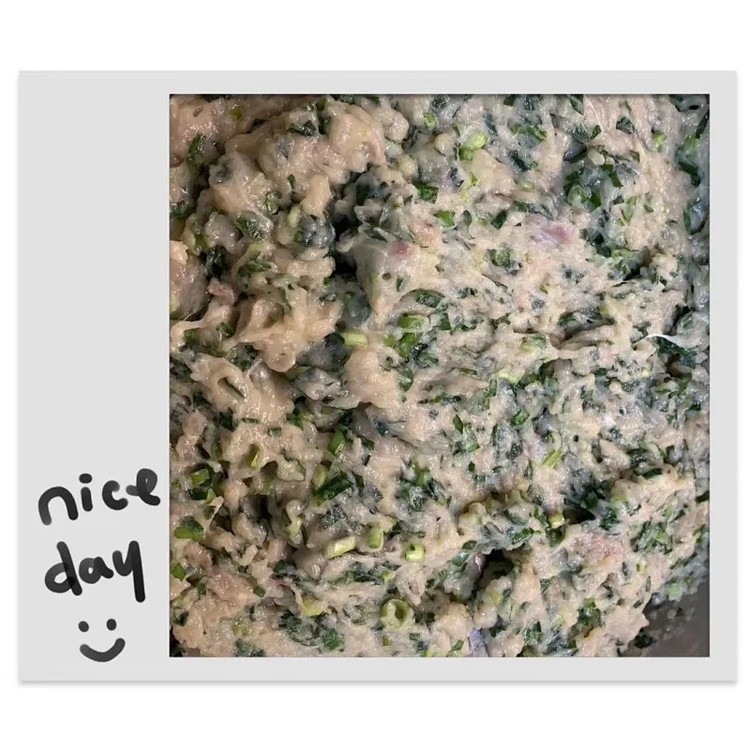 水饺馅儿:制作过程,添加1个鸡蛋青,搅打几分钟,出黏性,鱼肉馅儿上劲儿后,再加入韭菜等喜欢的菜馅儿搅拌均匀即可包饺子。