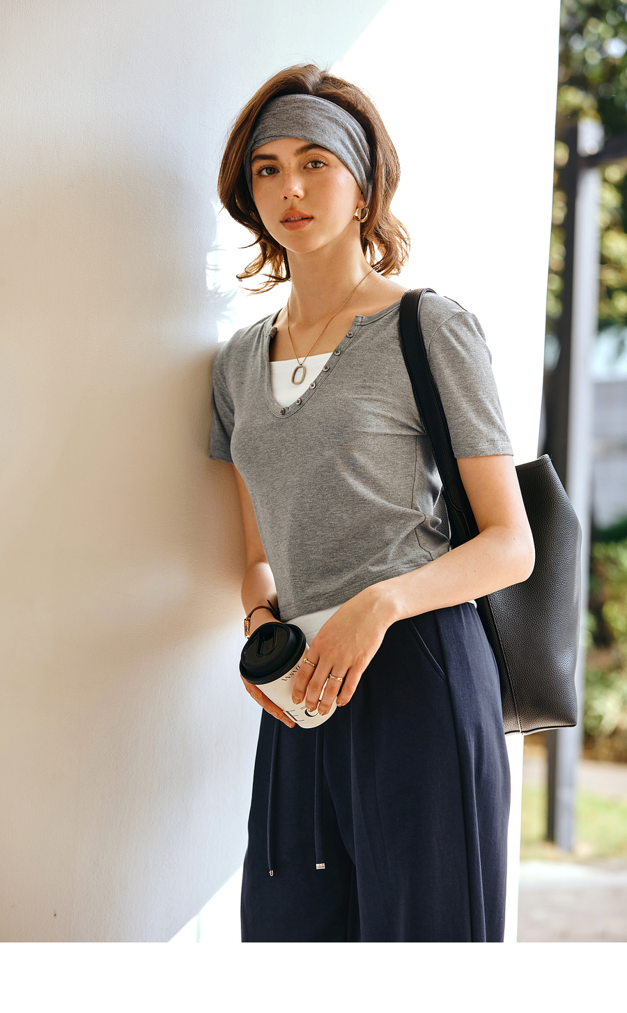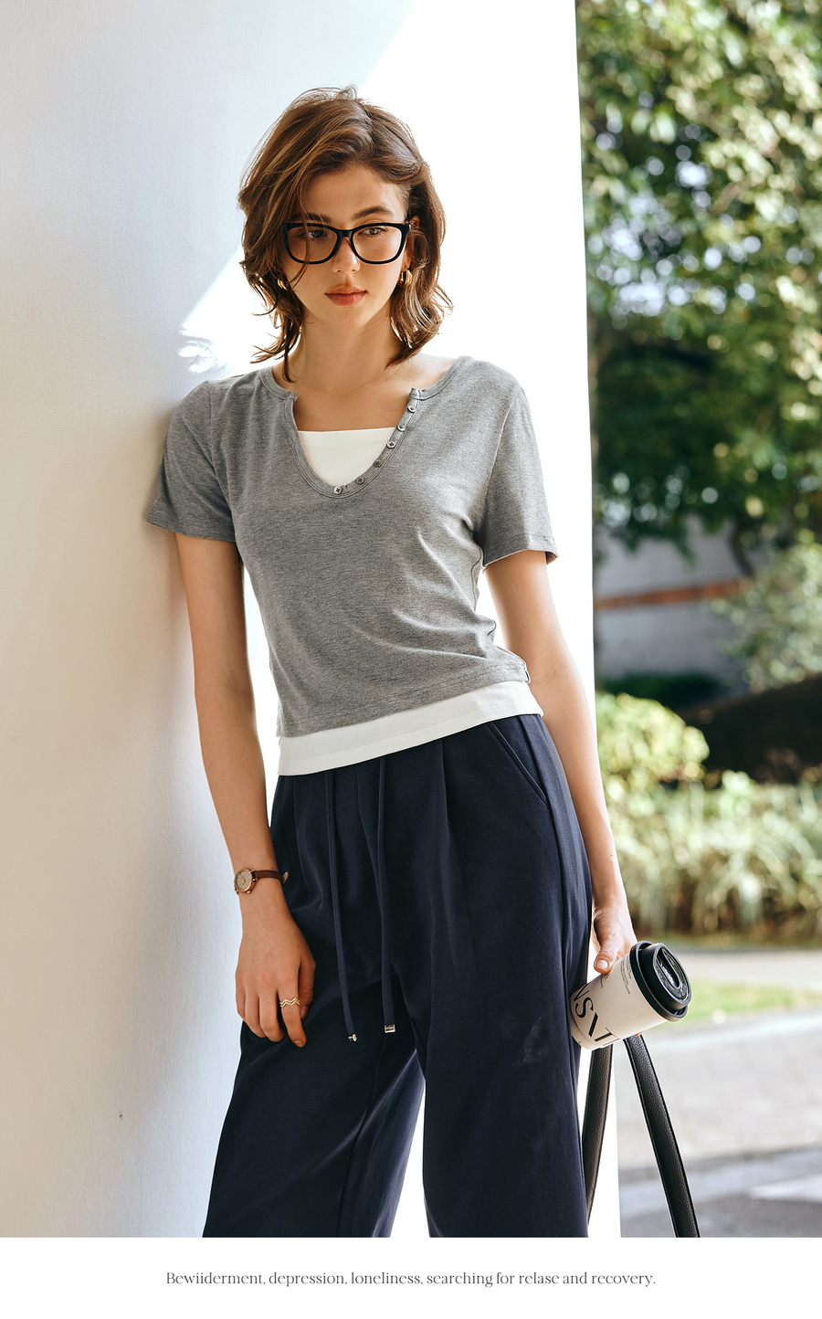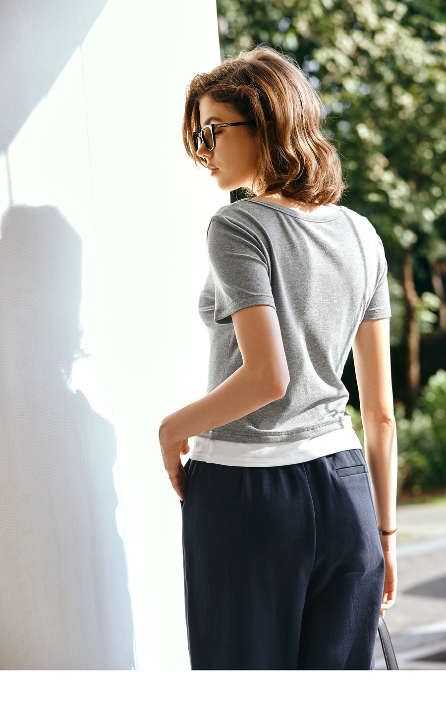 Olrain欧芮儿2025夏季新款假两件正肩设计简约休闲修身显瘦T恤女