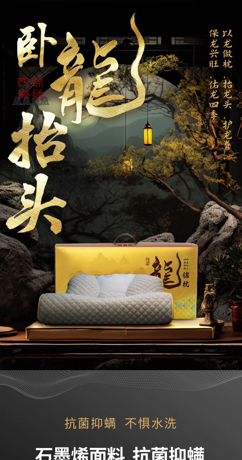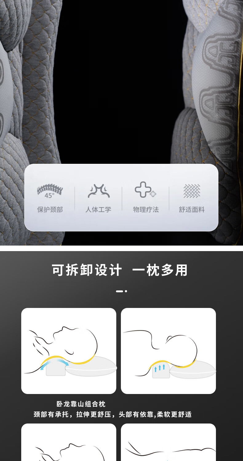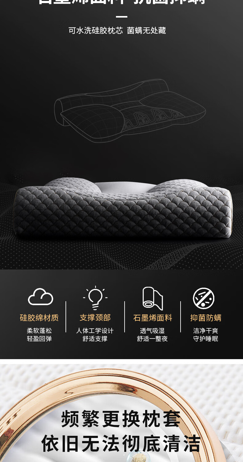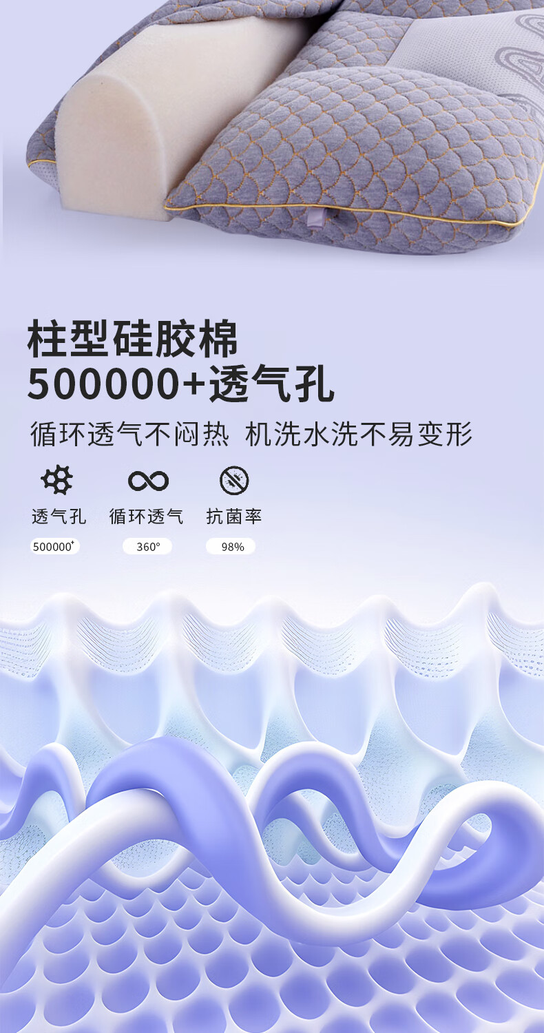 恒源祥硅胶棉枕可水洗抗菌防螨食品级按摩颈椎枕芯单人枕 龙锦枕