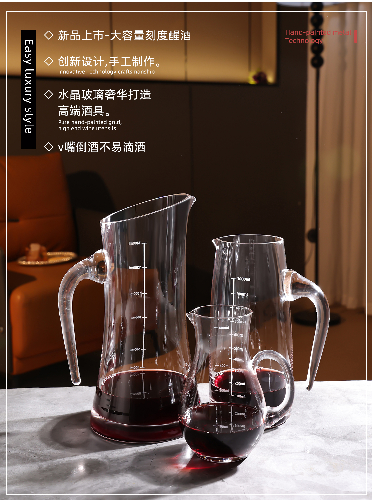 大容量带刻度白酒红酒醒酒器加厚玻璃白酒分酒器