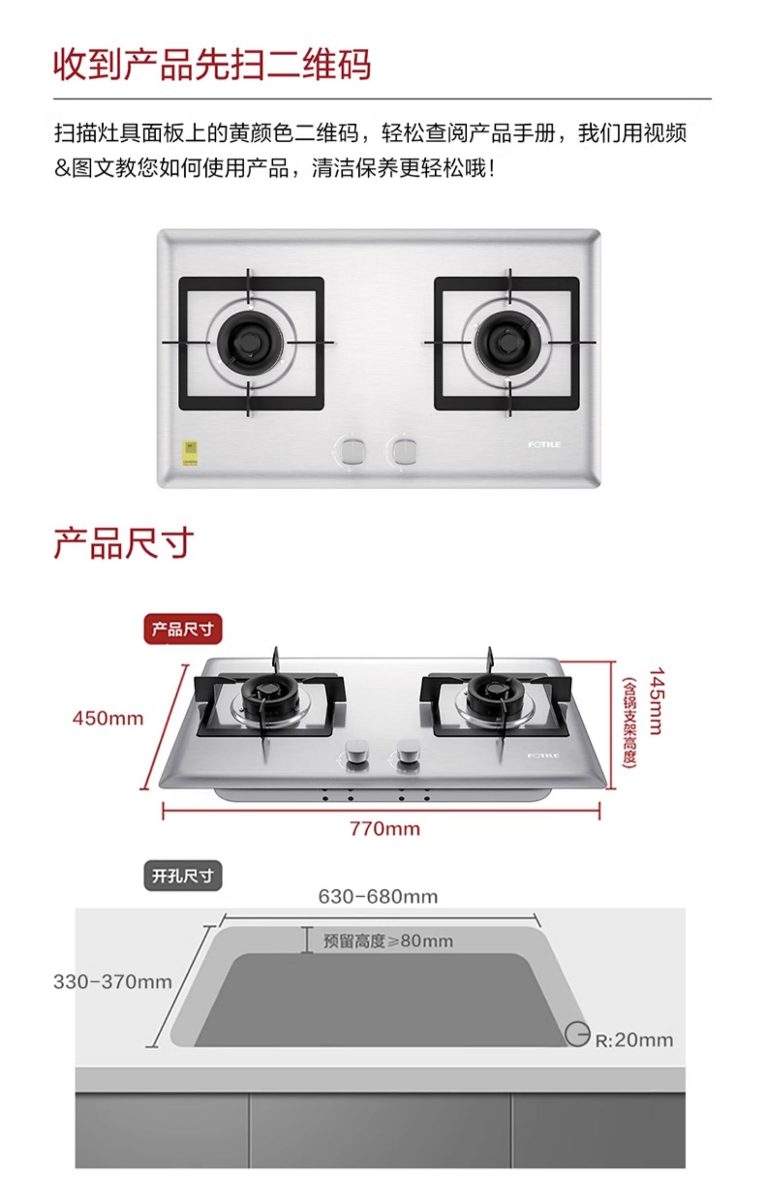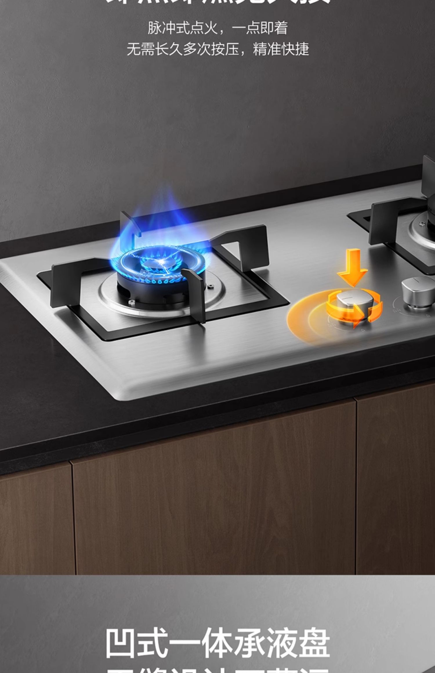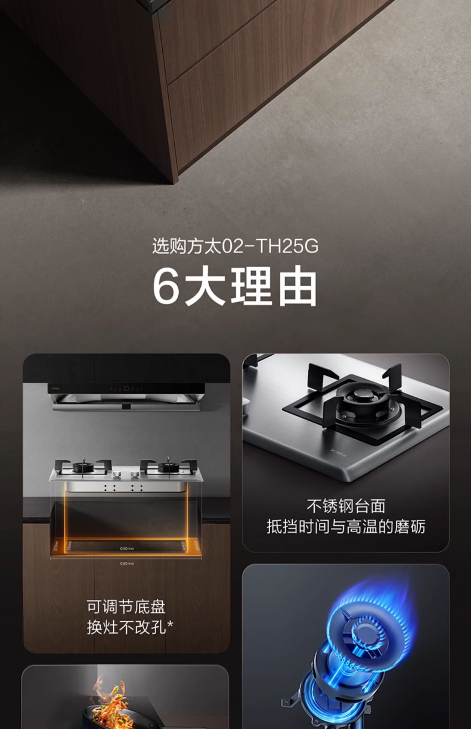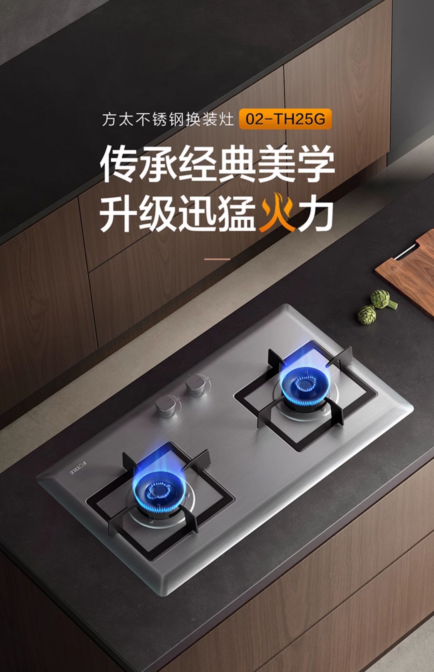 方太不锈钢燃气灶5.0Kw台嵌两用 02-TH25G家用换装免扩孔 易清洁打理天然气液化气煤气灶双灶大火力官方正品