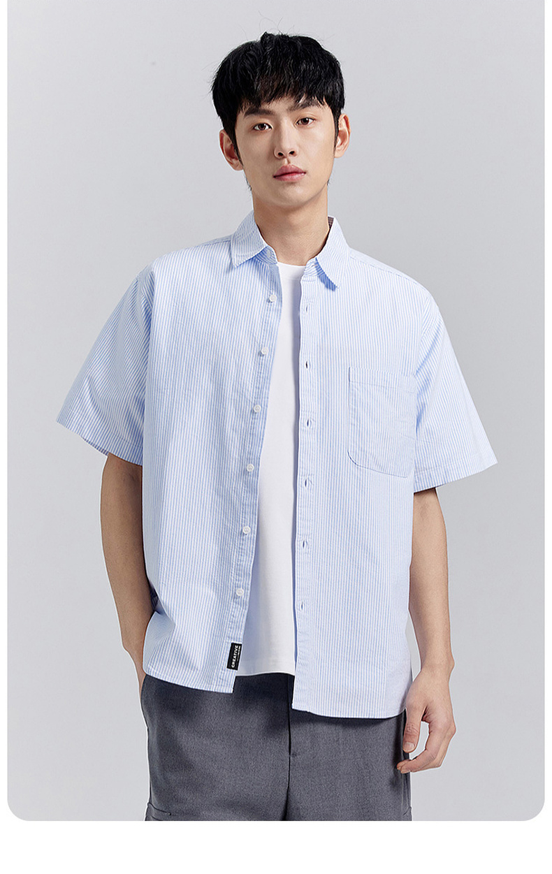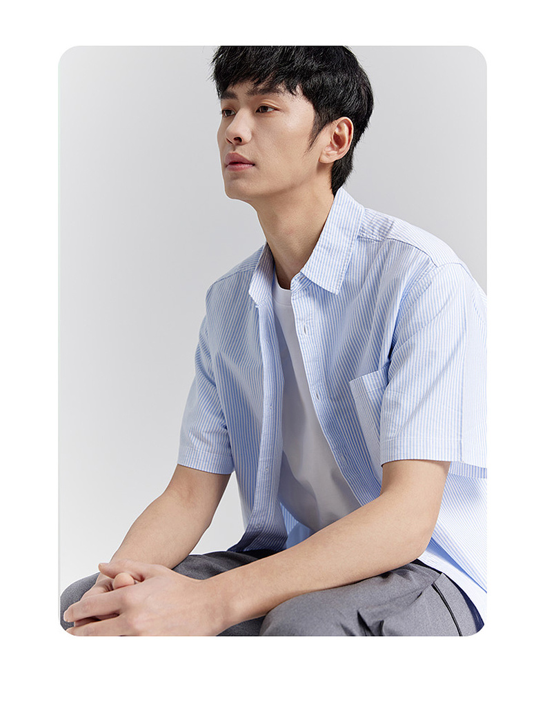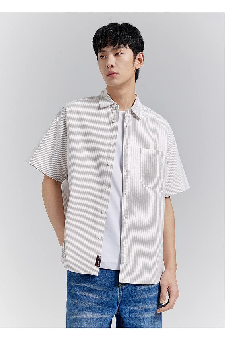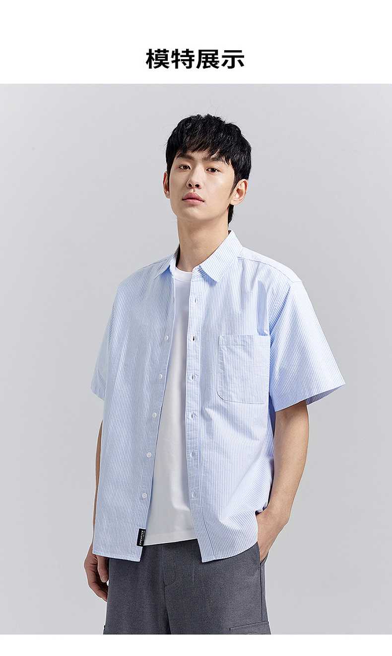 GXG男装【条纹撞色】25夏季翻领贴袋通勤纯棉休闲男式短袖衬衫K&C