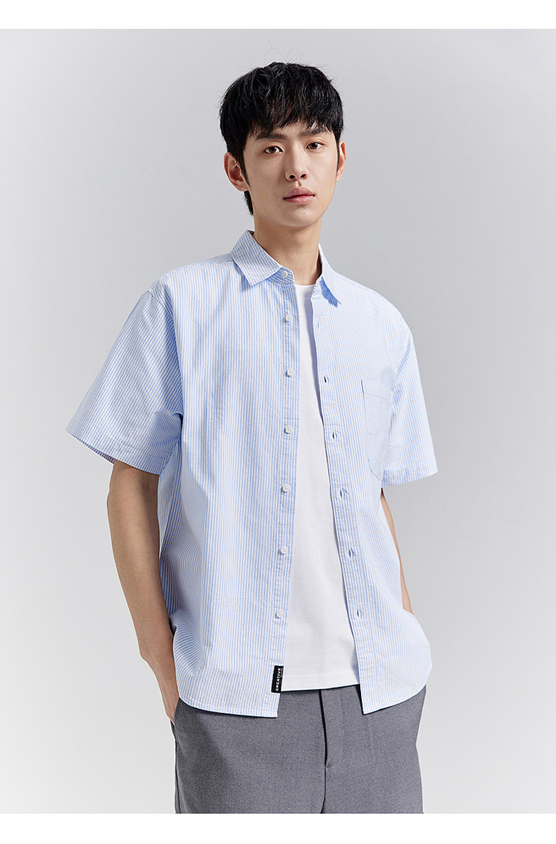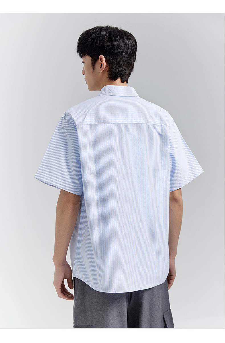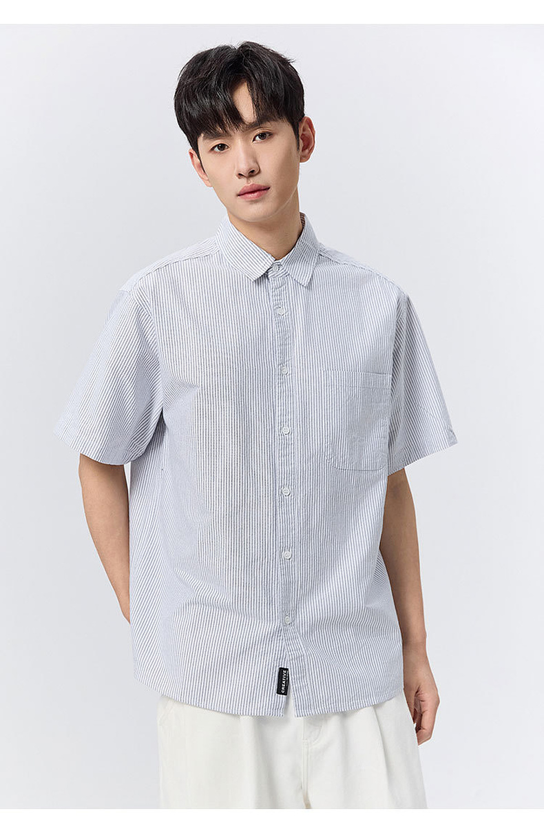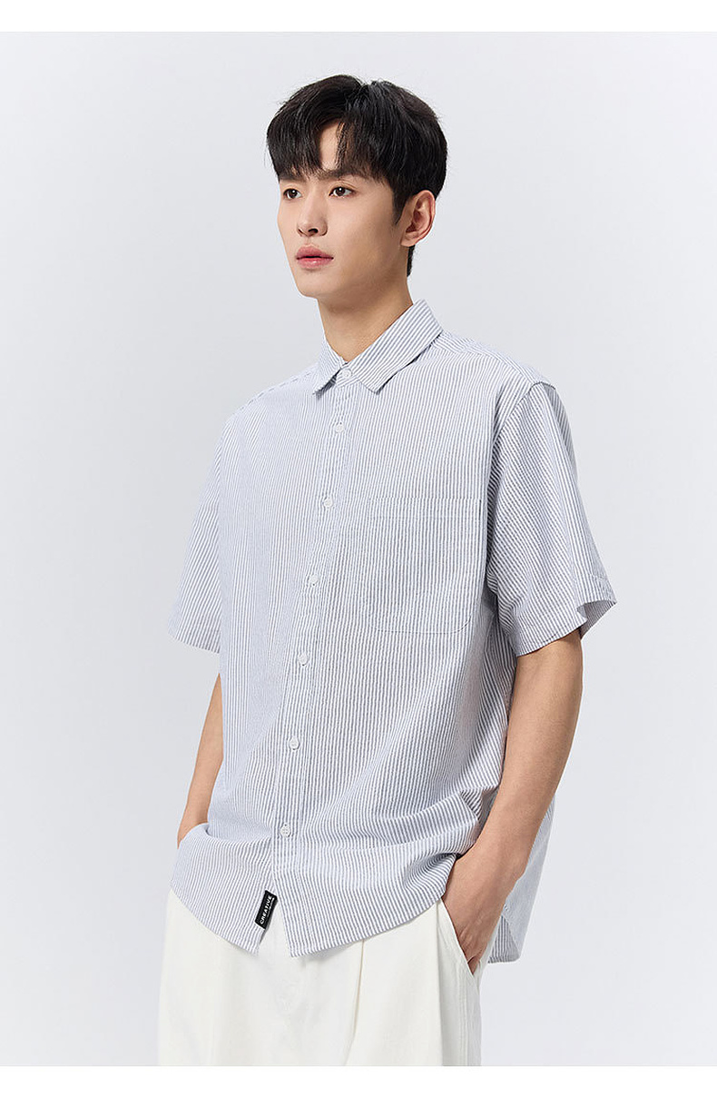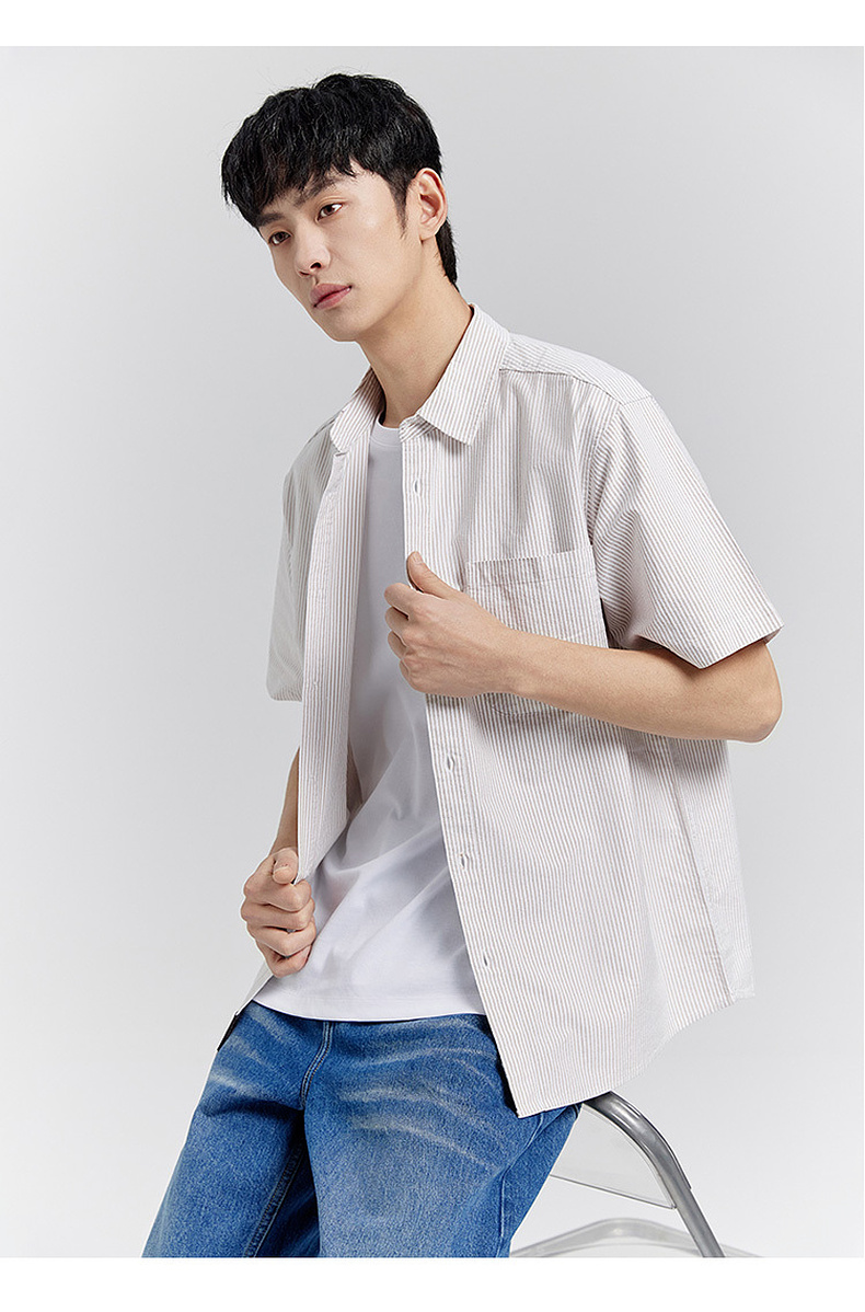 GXG男装【条纹撞色】25夏季翻领贴袋通勤纯棉休闲男式短袖衬衫K&C