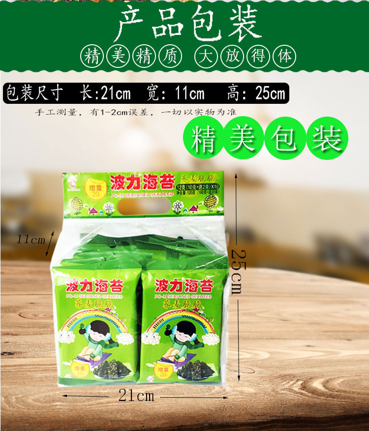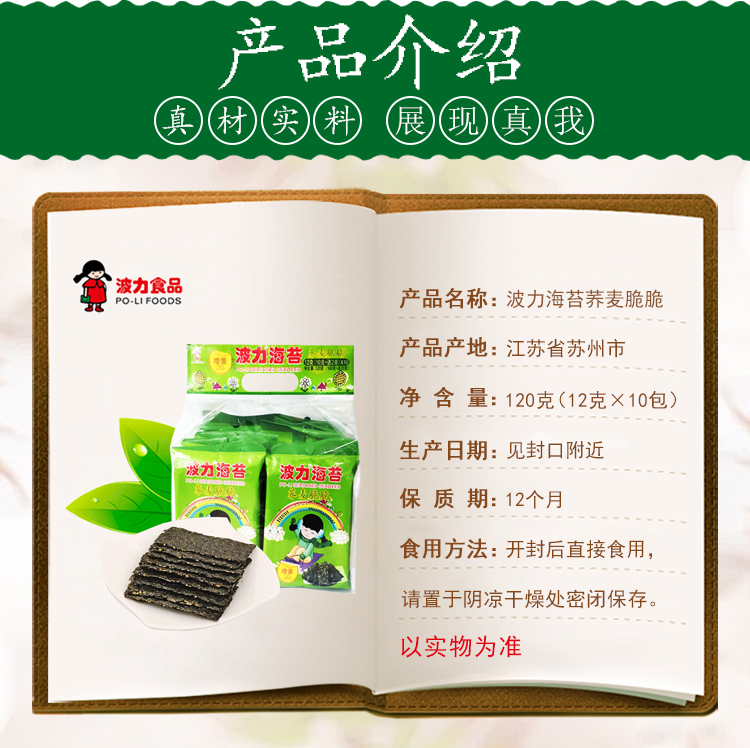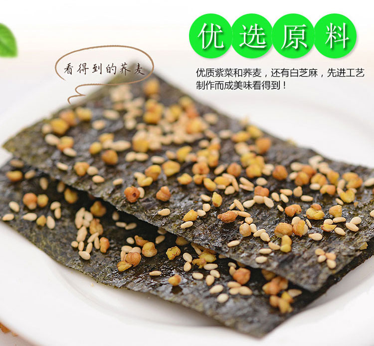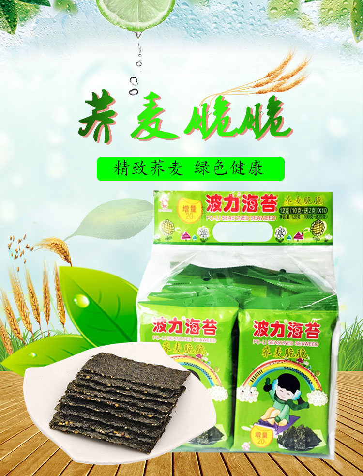 波力海苔夹心脆 休闲零食 紫菜脆片 荞麦脆脆 非油炸 实惠分享装120克(12克*10包)