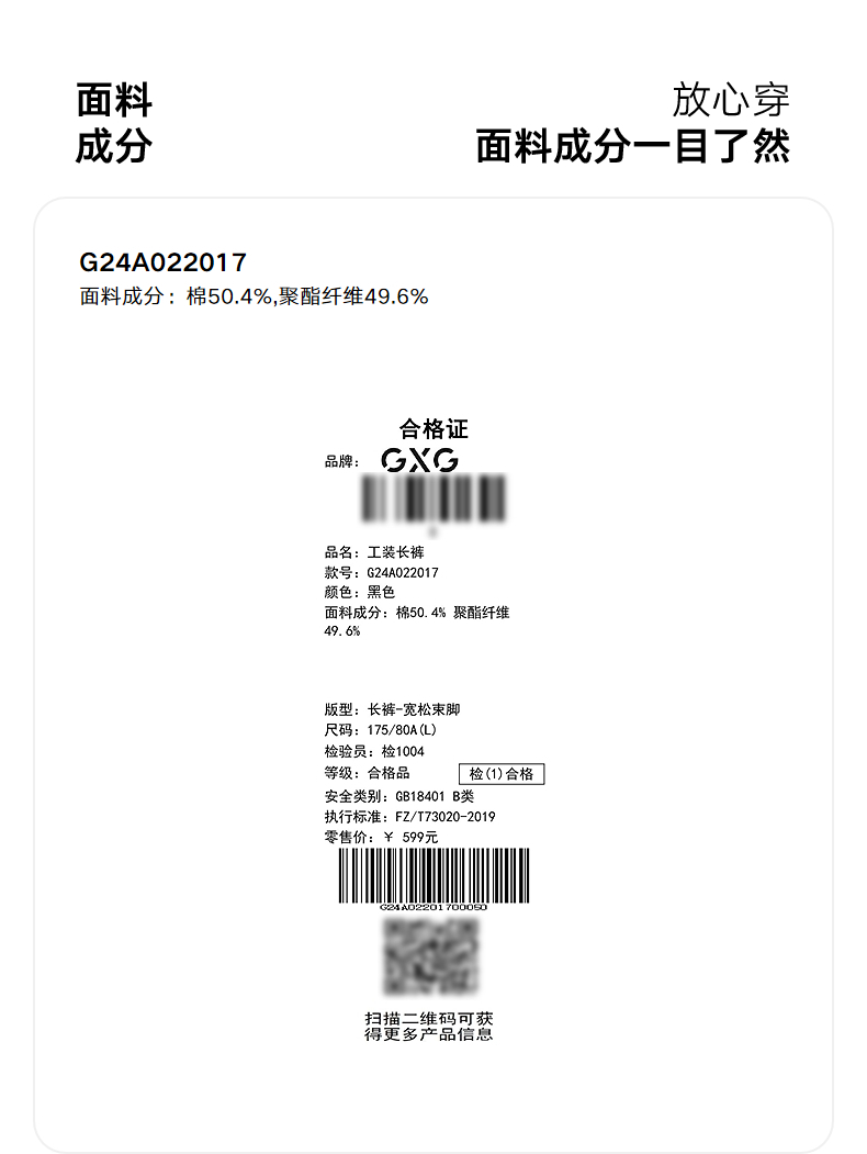 GXG男装 黑色口袋束脚裤户外工装长裤通勤男休闲裤 2025春季热卖