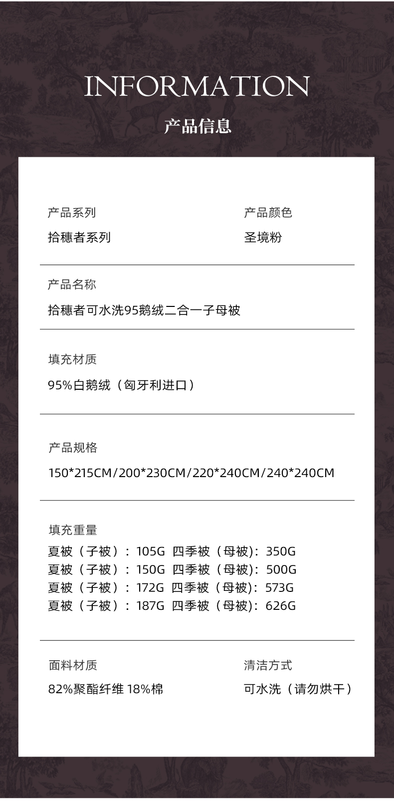 拾穗者95可水洗鹅绒被两件套(圣境粉)