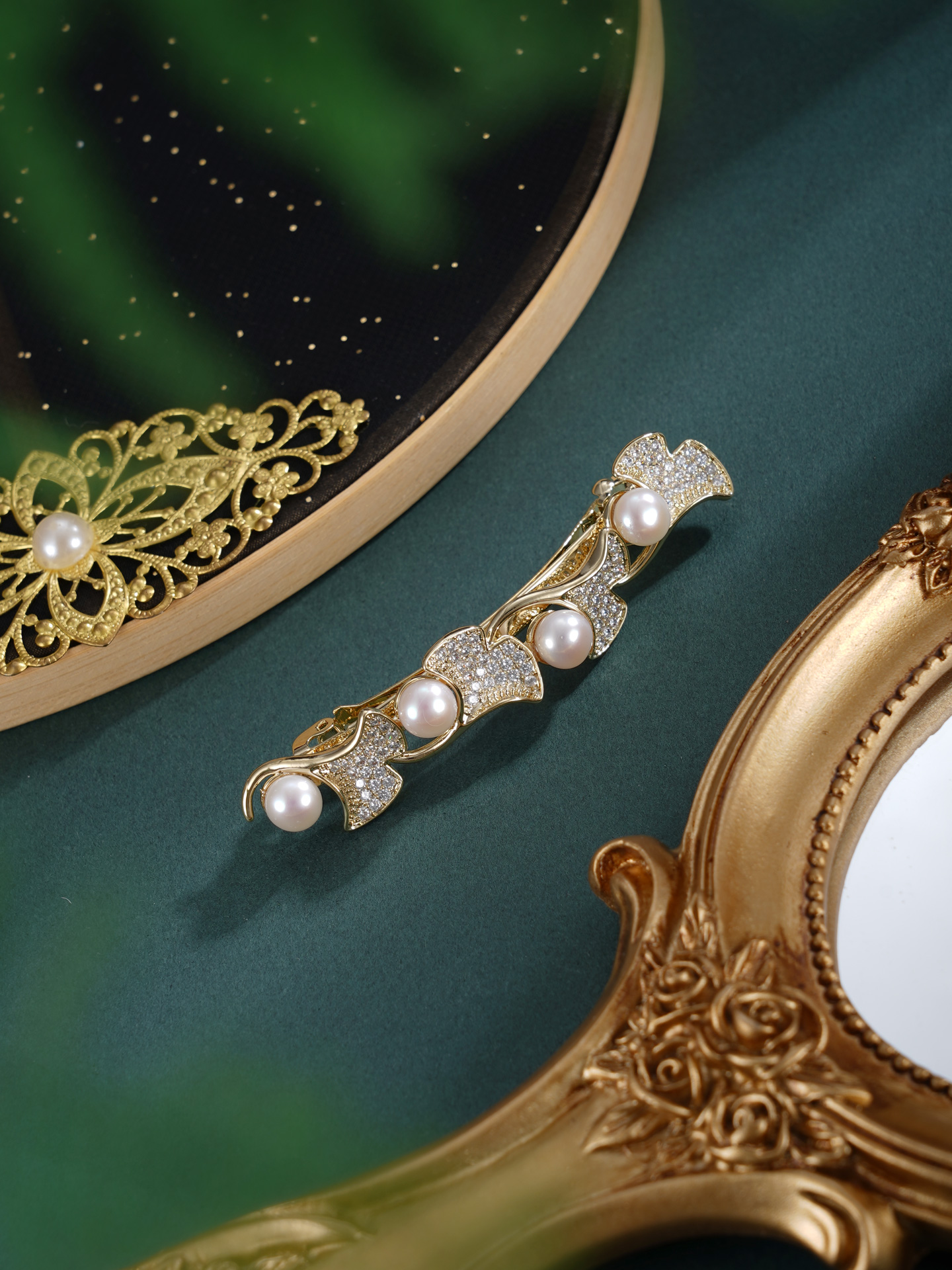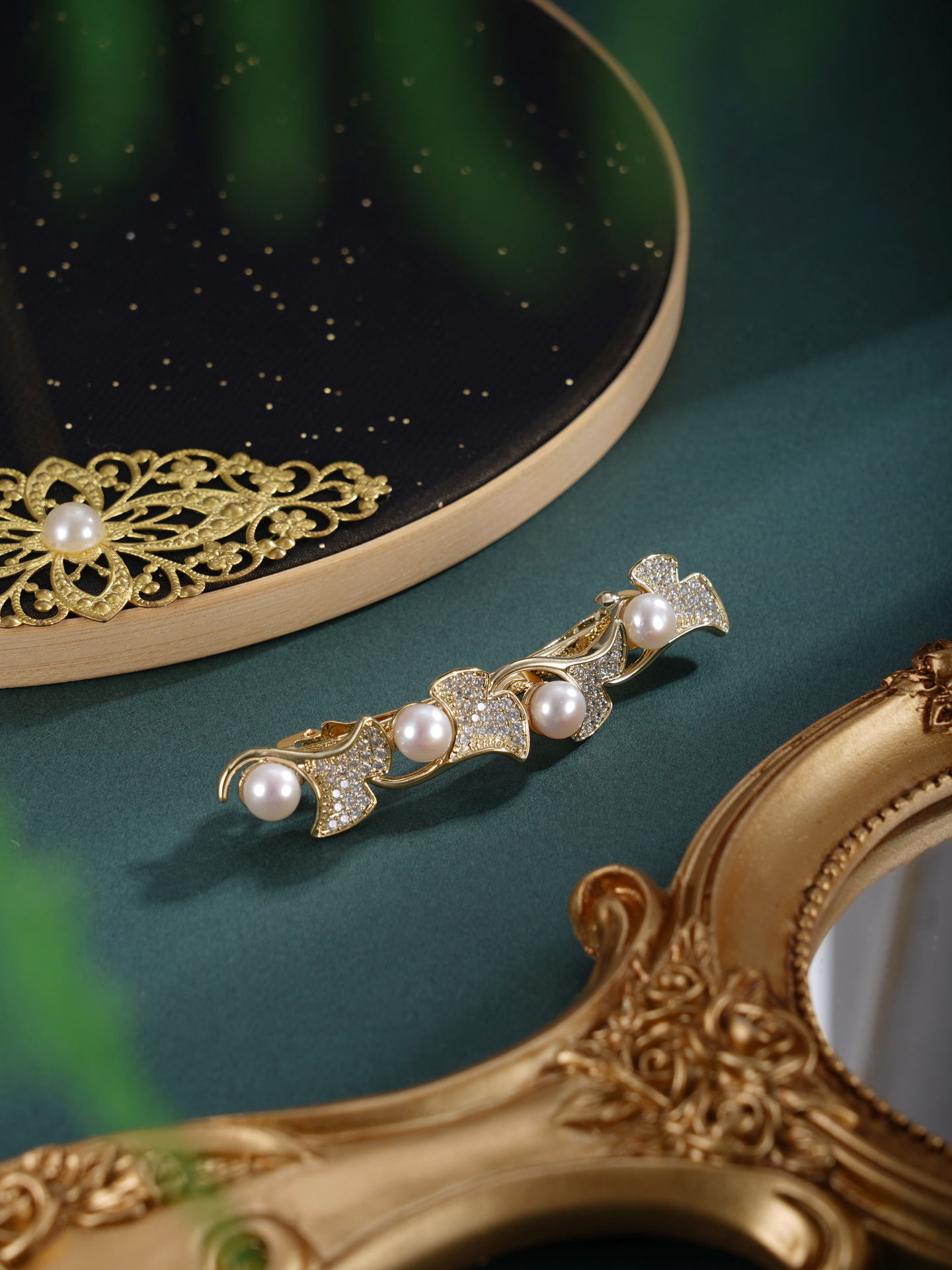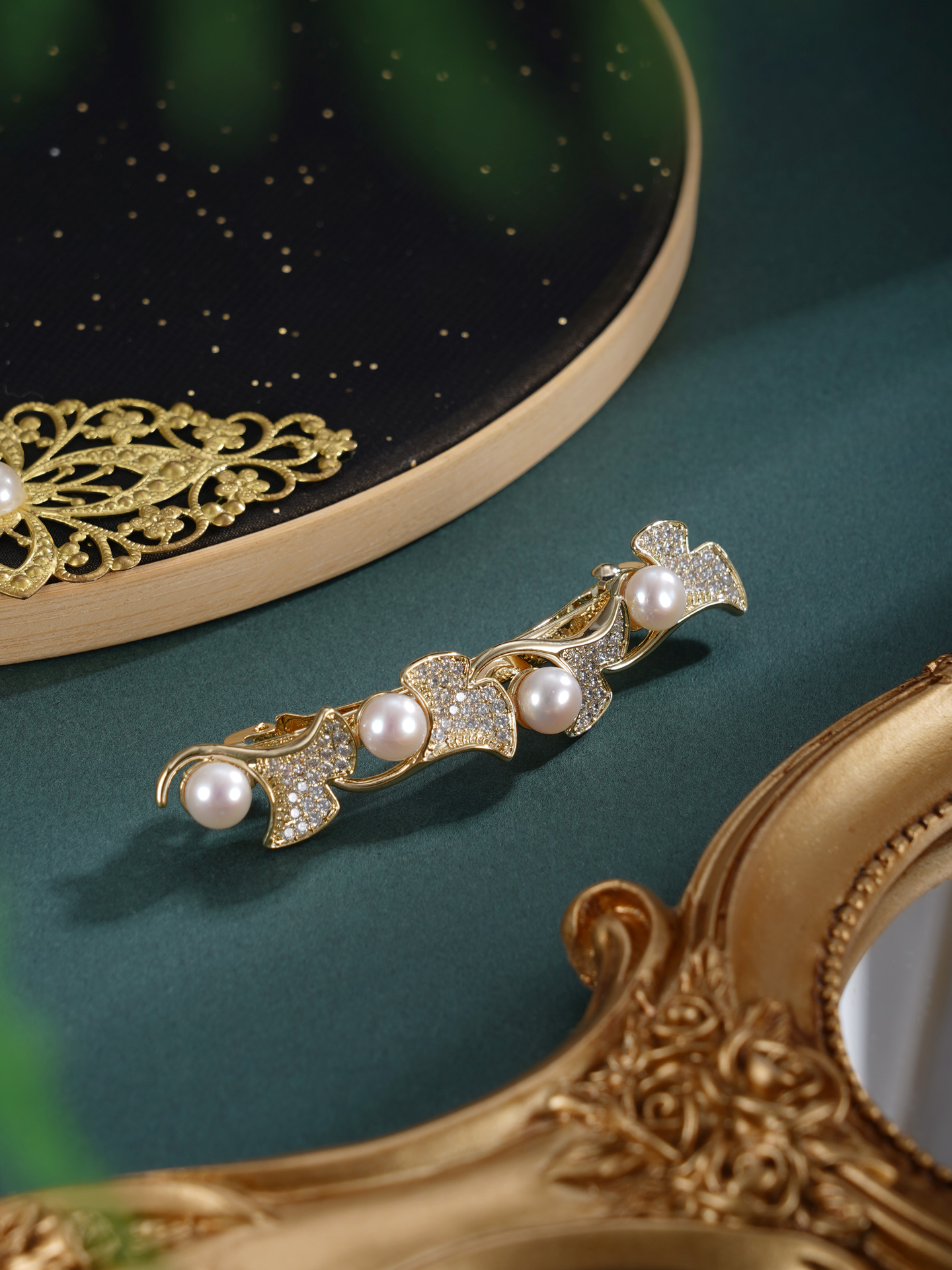 子佩集【珍幸运】珍珠惜王妃发夹【HBFJ030】6.5mm珠镀金银杏叶2601