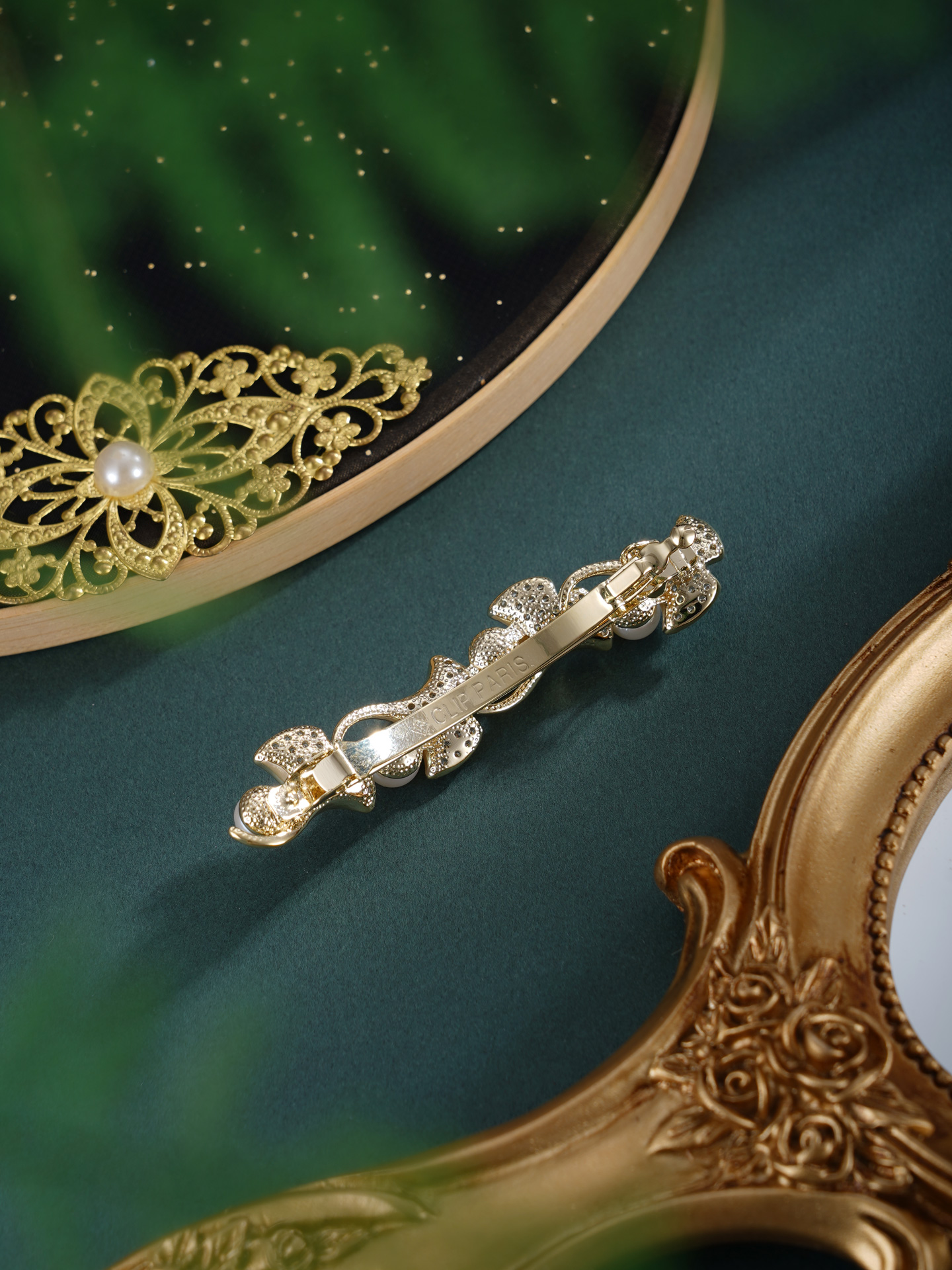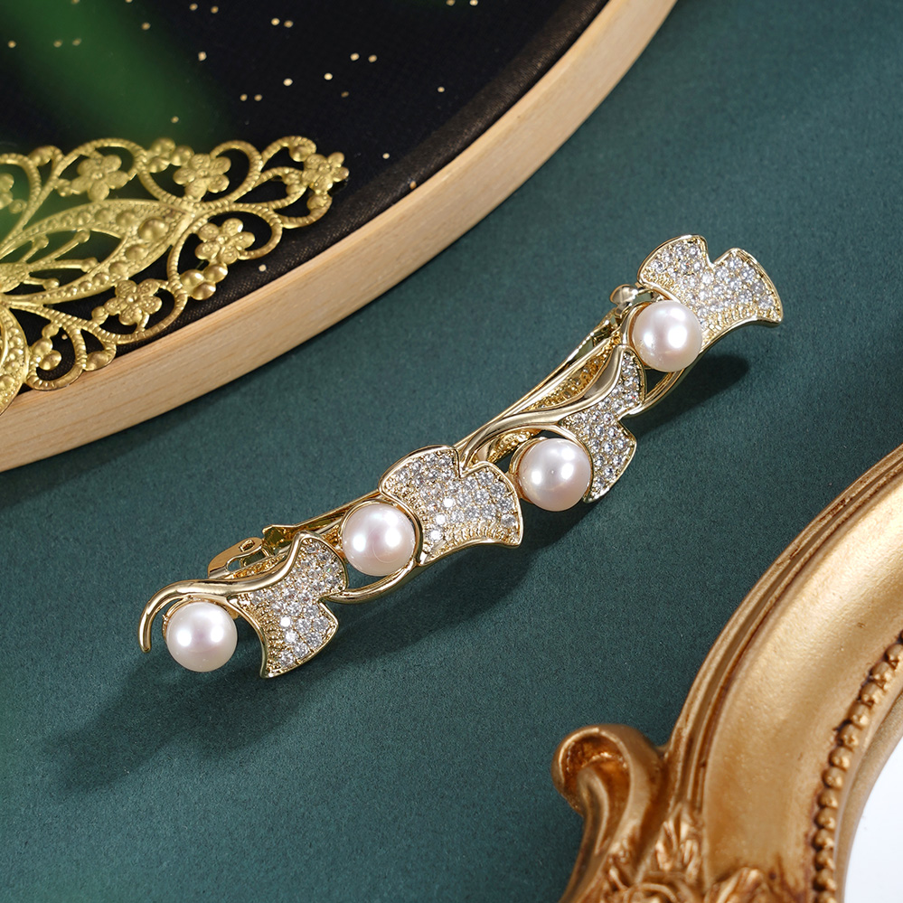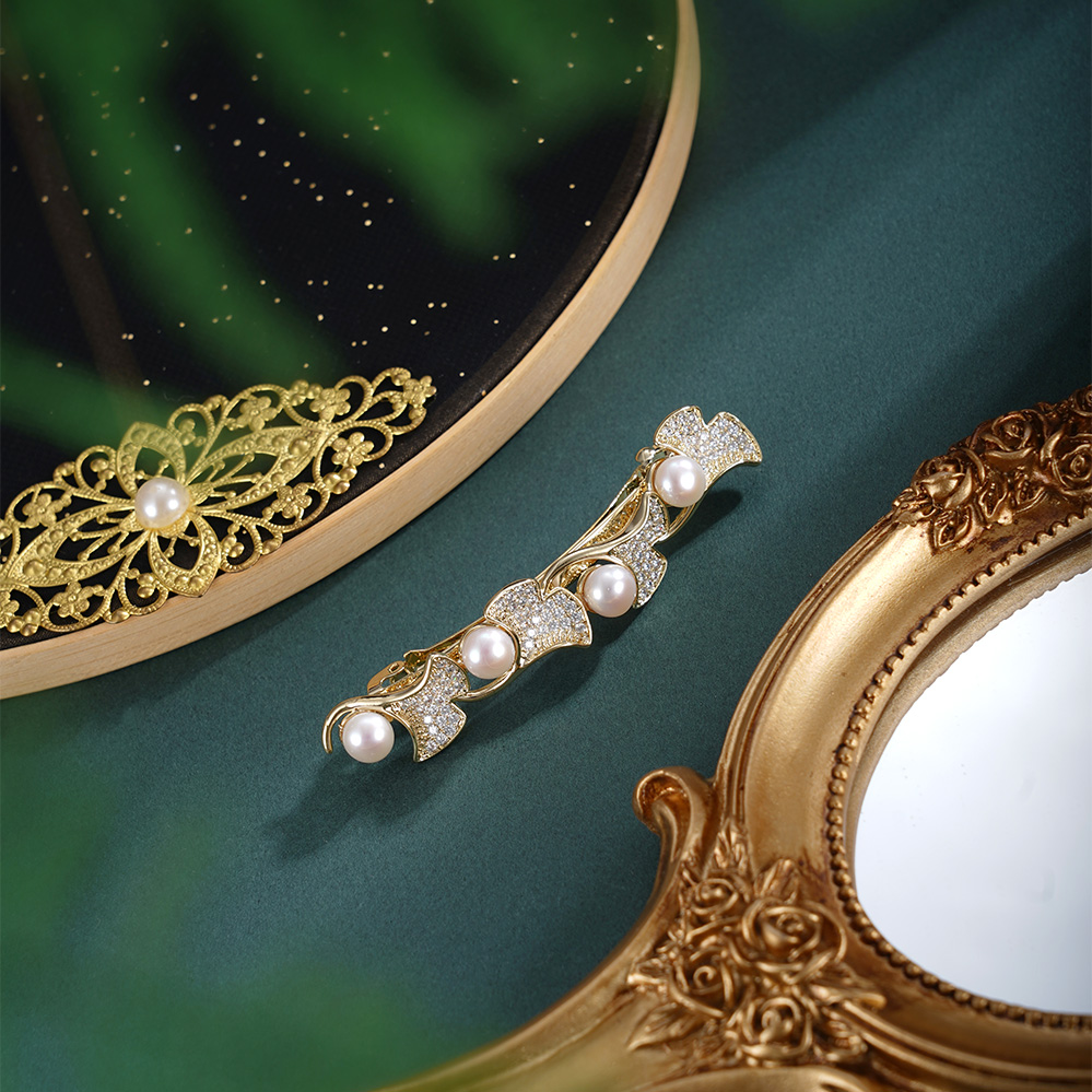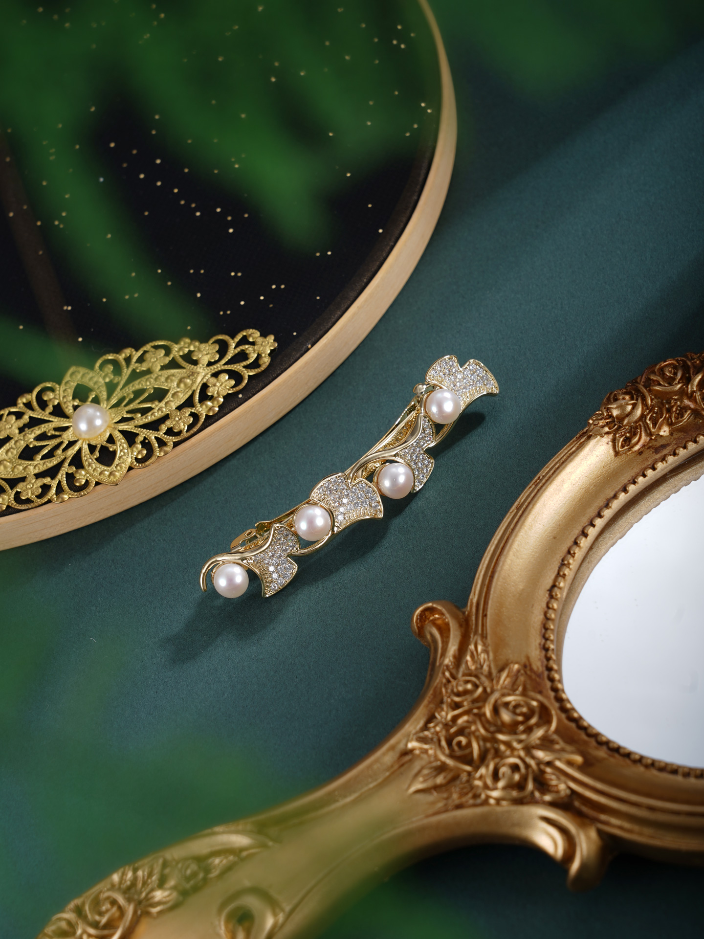 子佩集【珍幸运】珍珠惜王妃发夹【HBFJ030】6.5mm珠镀金银杏叶2601