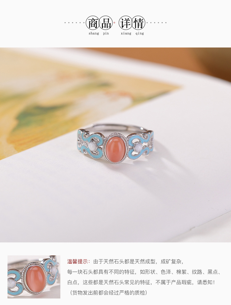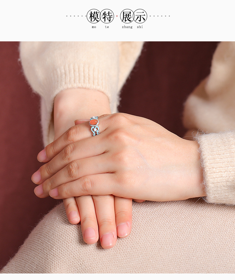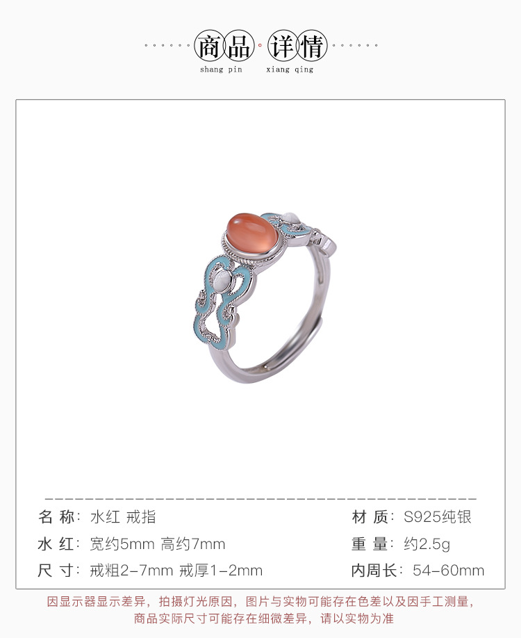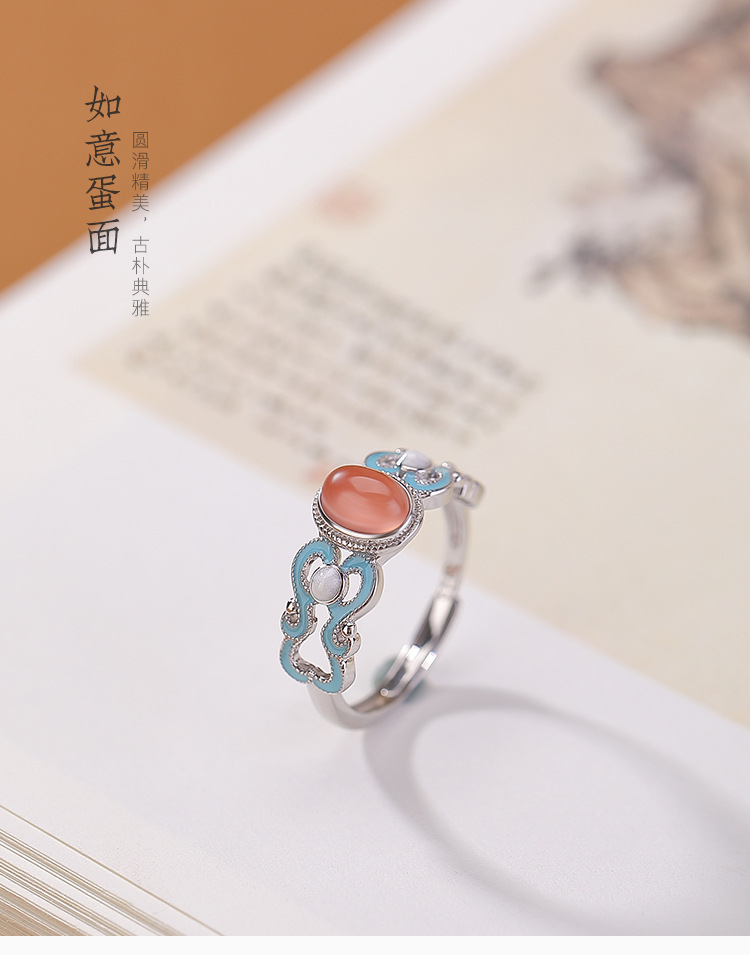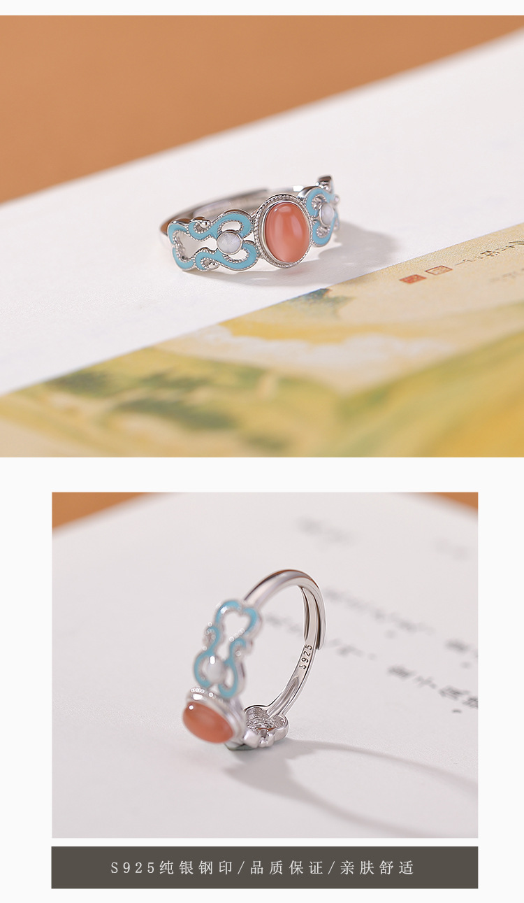 【国风如意】S925纯银水红南红玛瑙复古珐琅如意开口戒指【CW-JZ07515】
