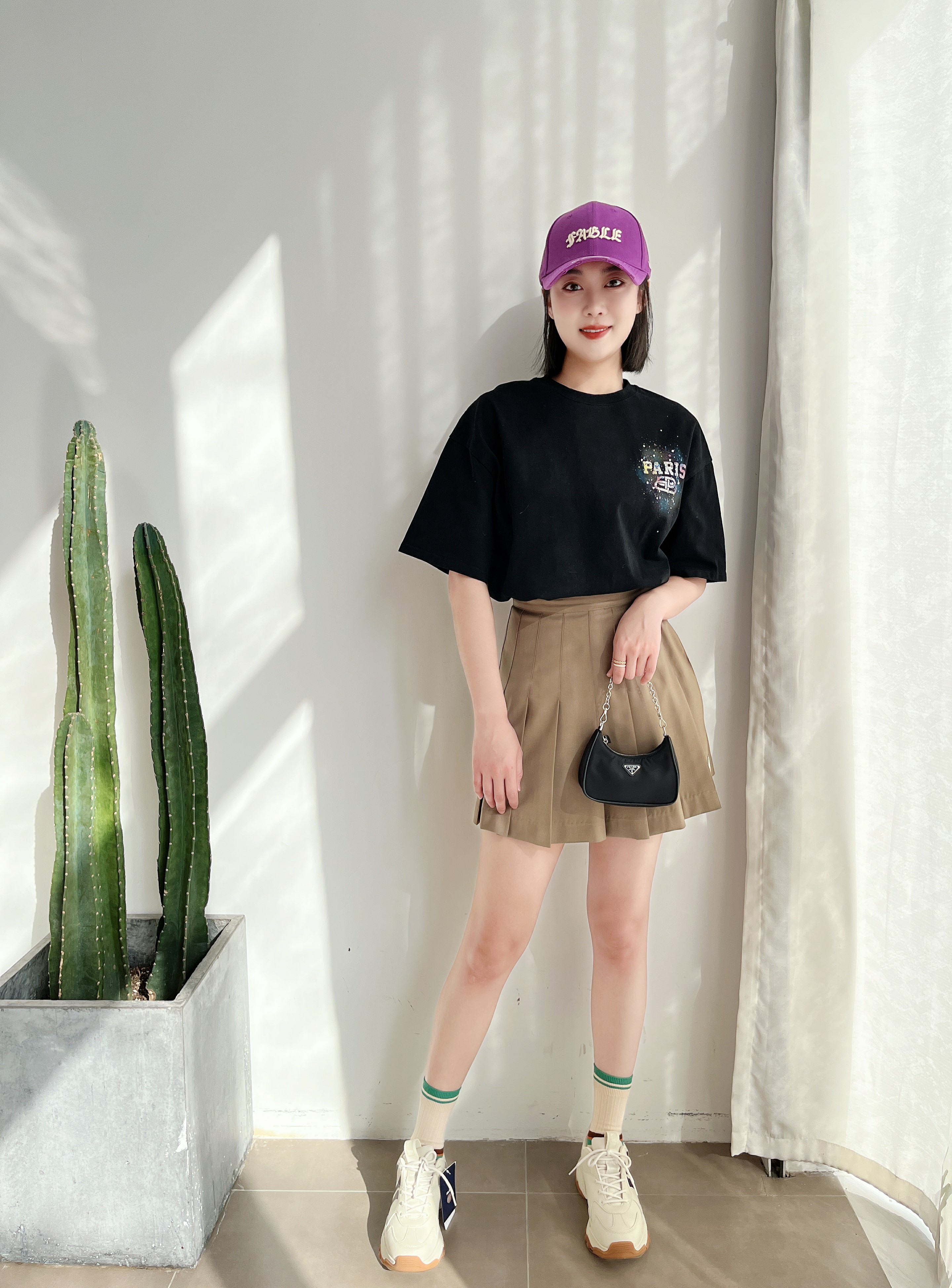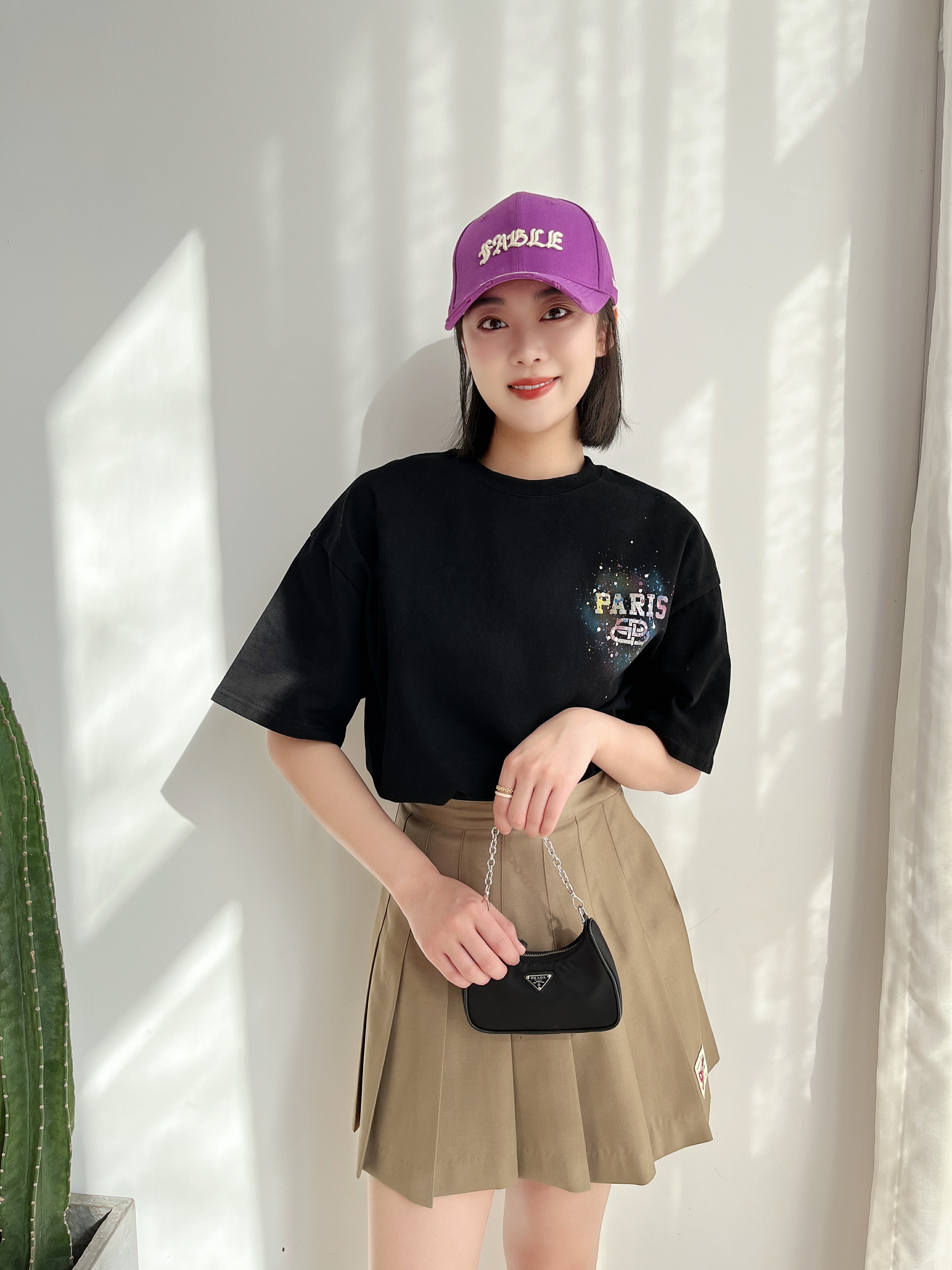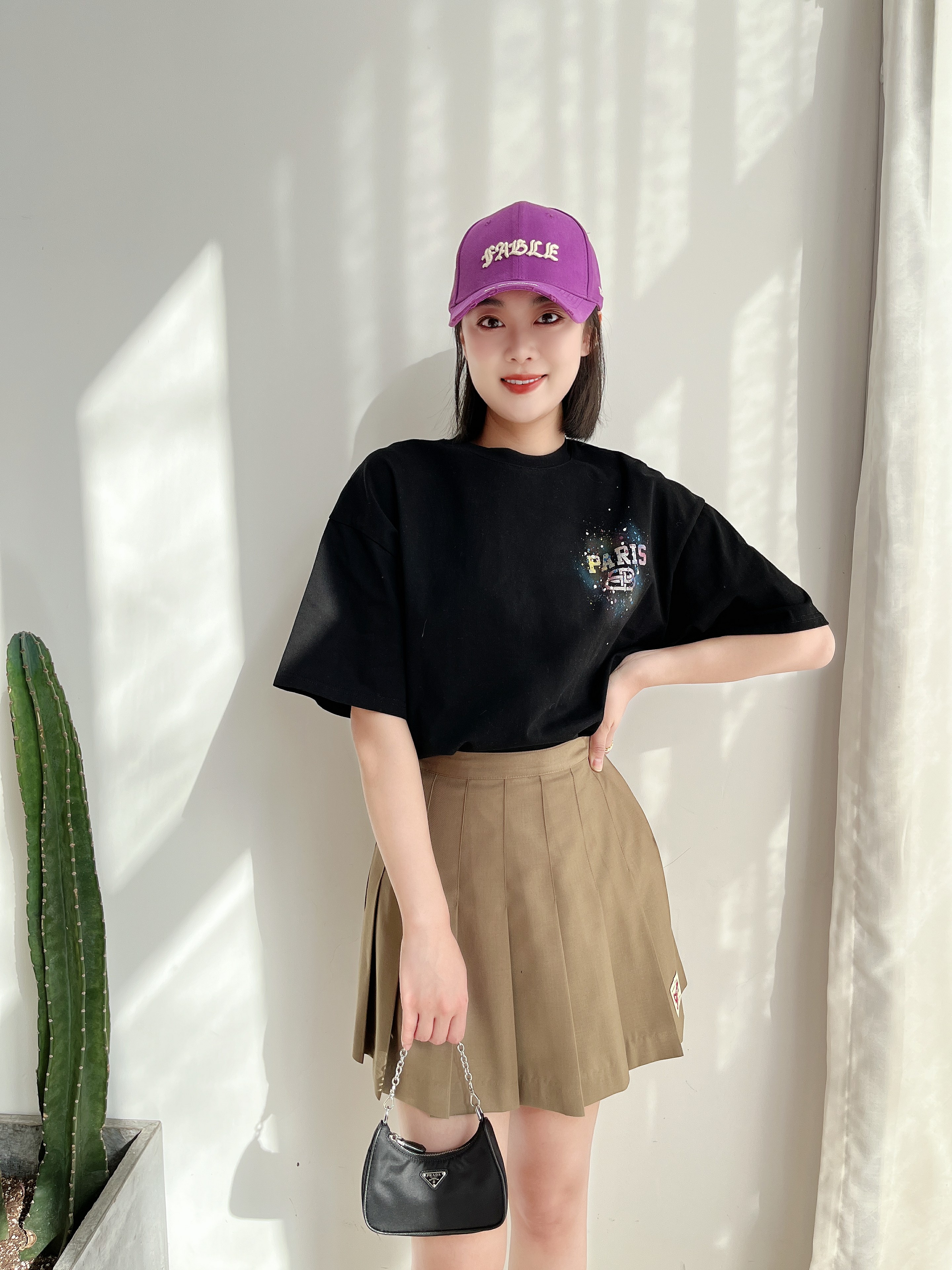 夏季新品短袖T恤锁扣烫金logo手工喷绘印花后背工艺双纱棉男女款
