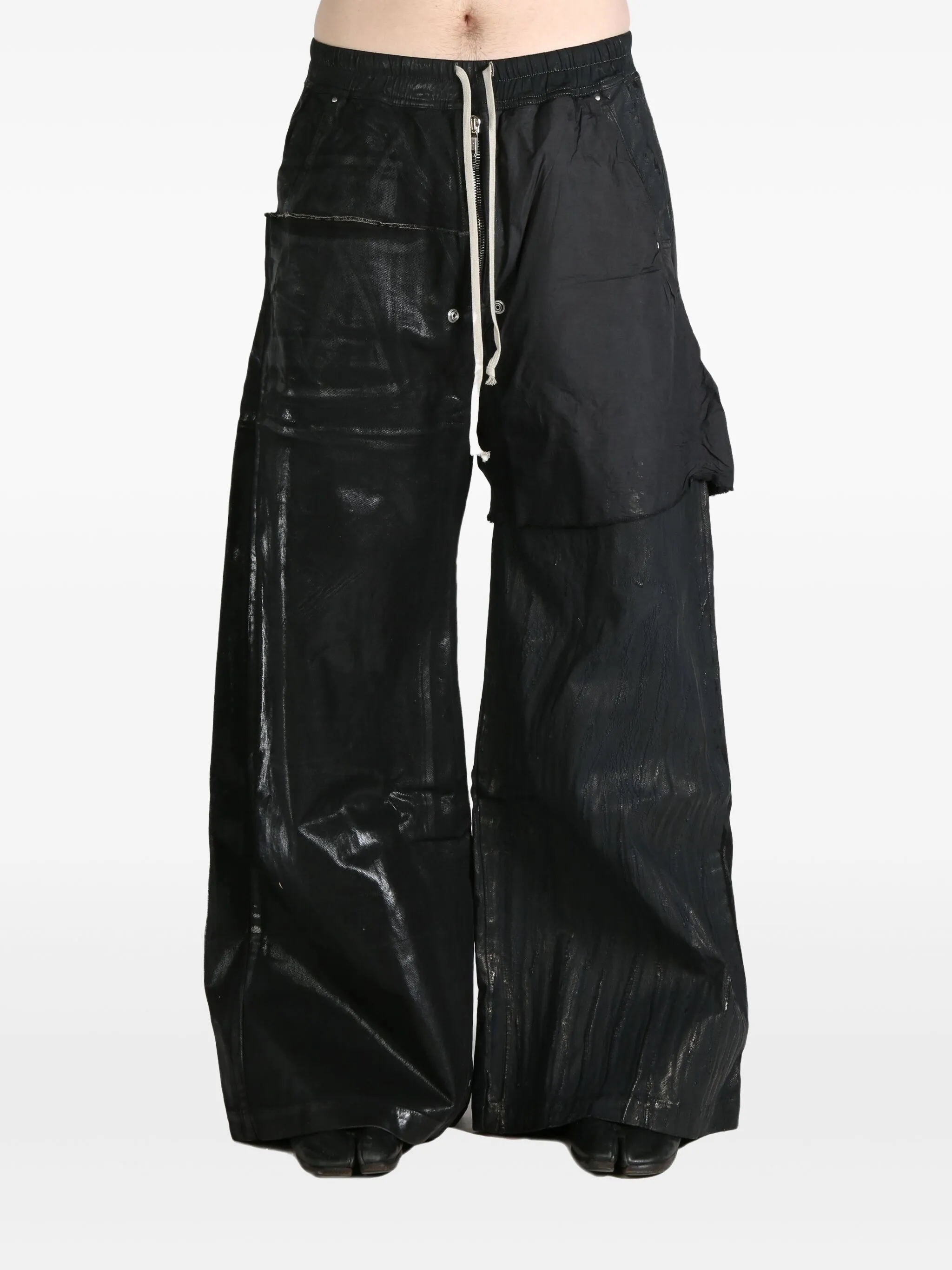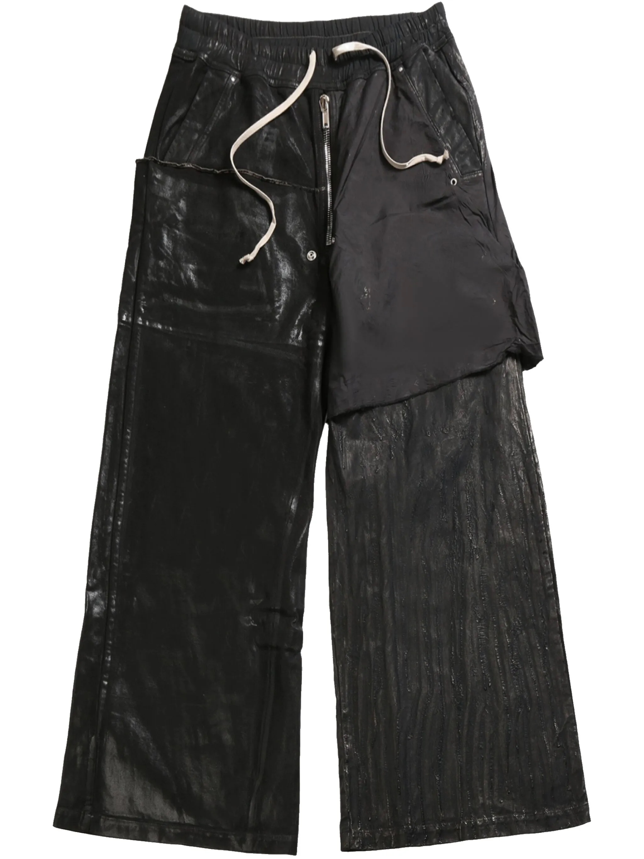 双腿不同面料设计拼接