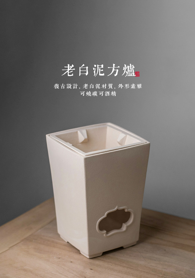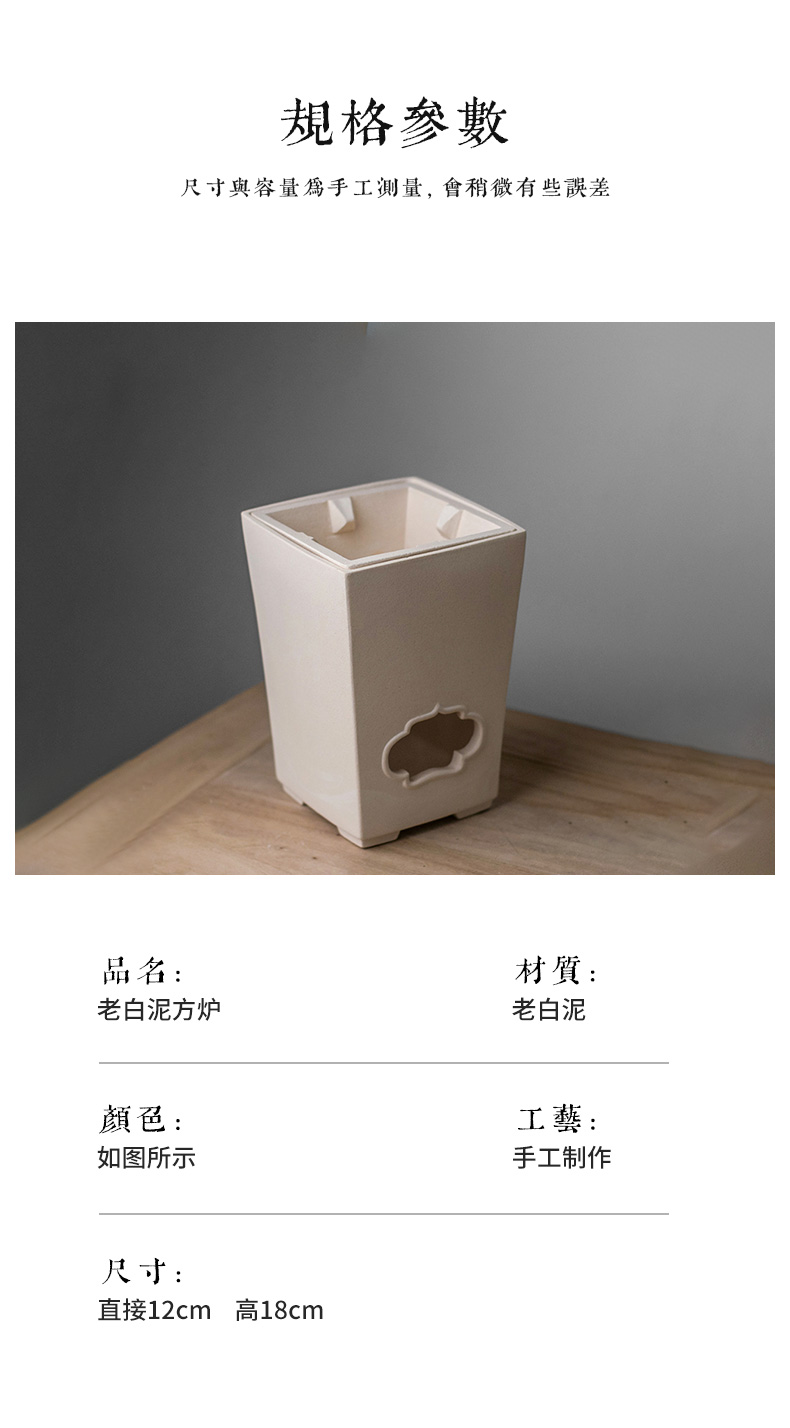 景德镇 老白泥方炉 手工老白泥炉 仿古烧炭炉子 茶具配件 茶道零配