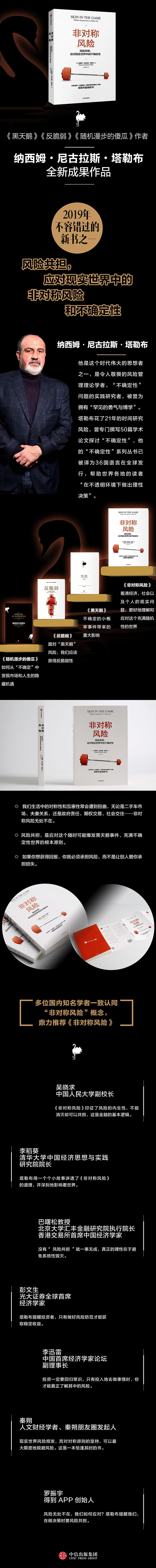 人类历史进程中,一直存在一条古老的原则,即对称性。然而在现实世界中,塔勒布所提出的非对称风险却无处不在。我们如何应对?塔勒布在新书中提醒我们,在做决策时要风险共担。——罗振宇,APP创始人