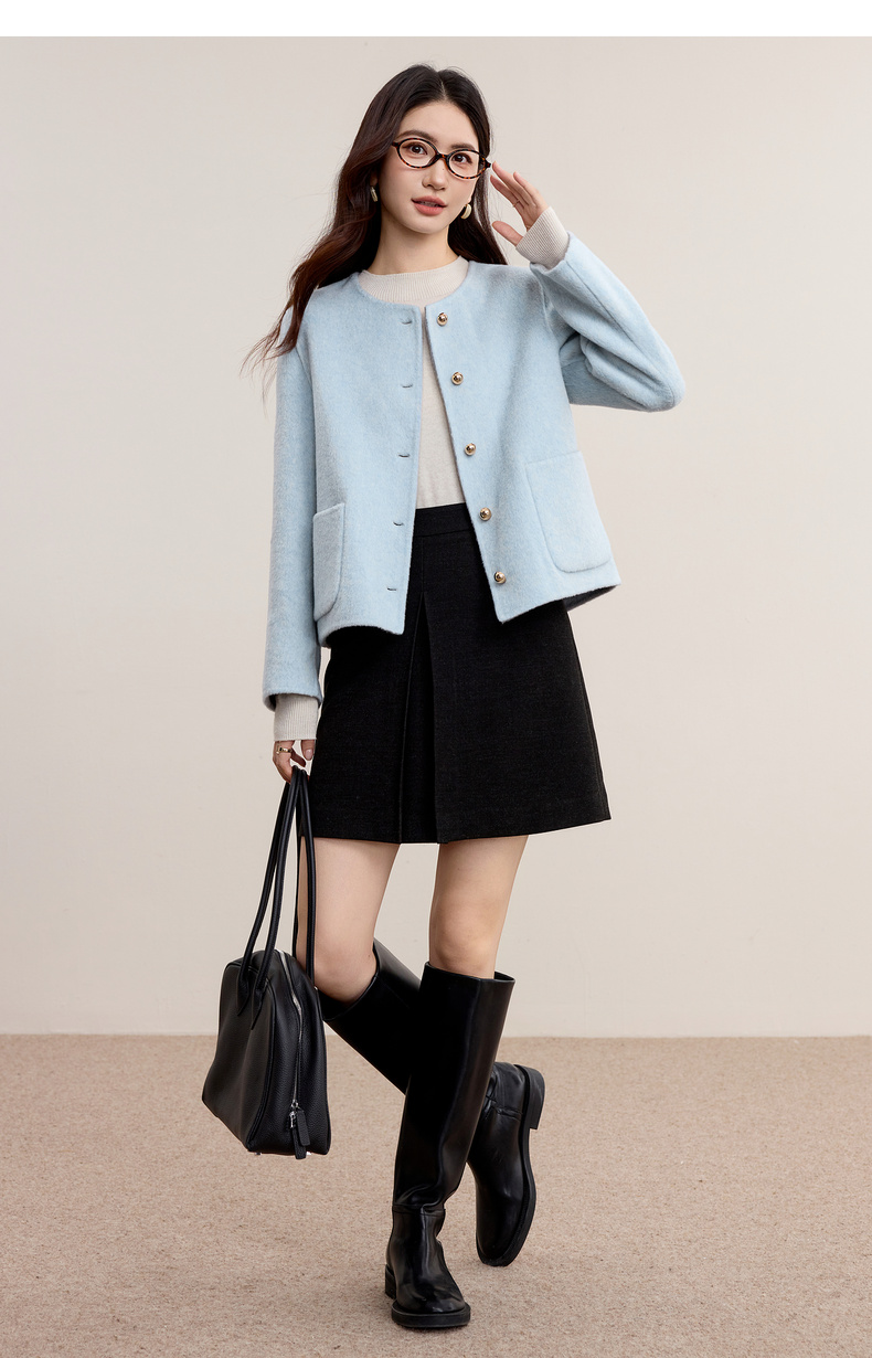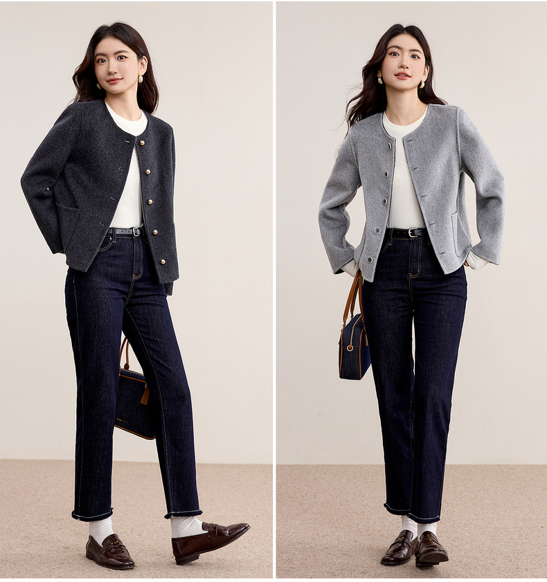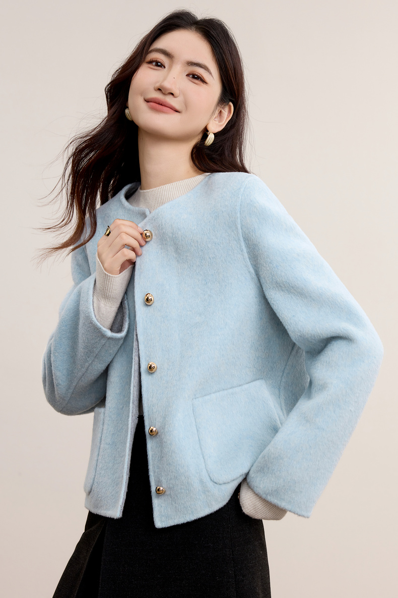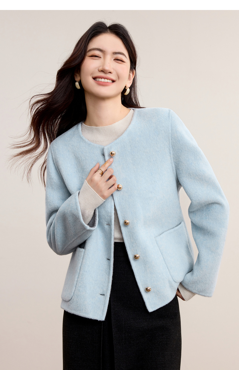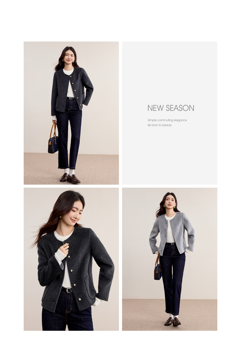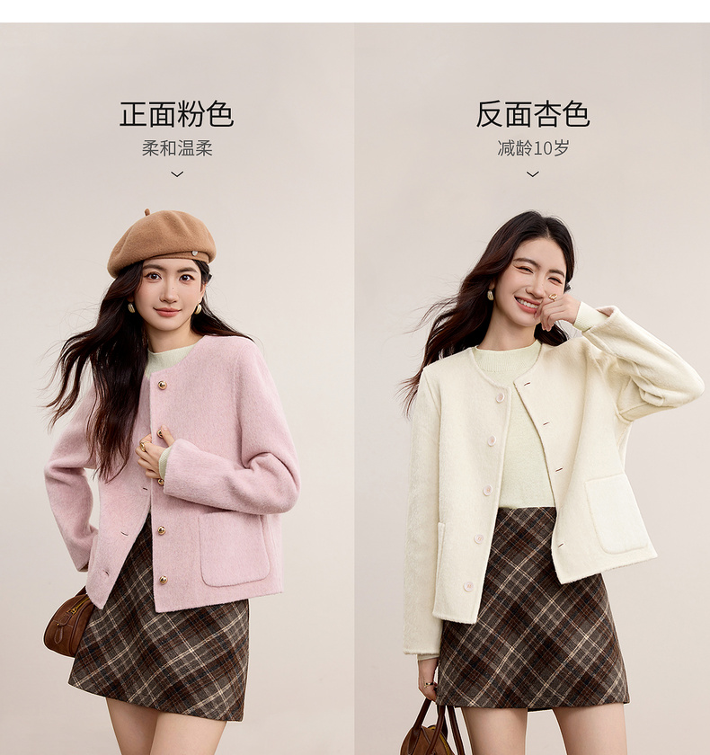 【内购】【双子星系列】正反两穿通勤圆领撞色单排扣厚实保暖双面呢外套-W54OG2433