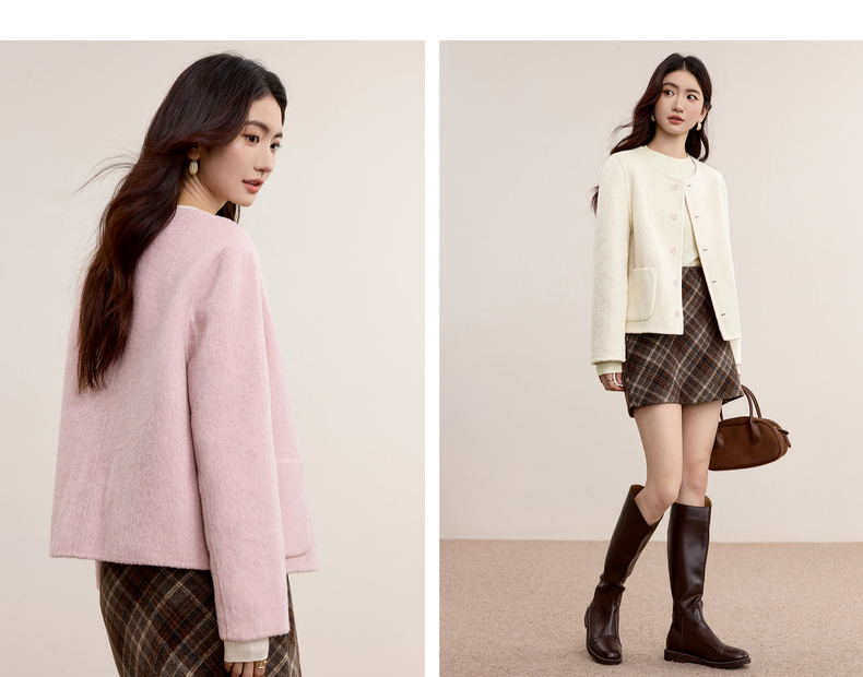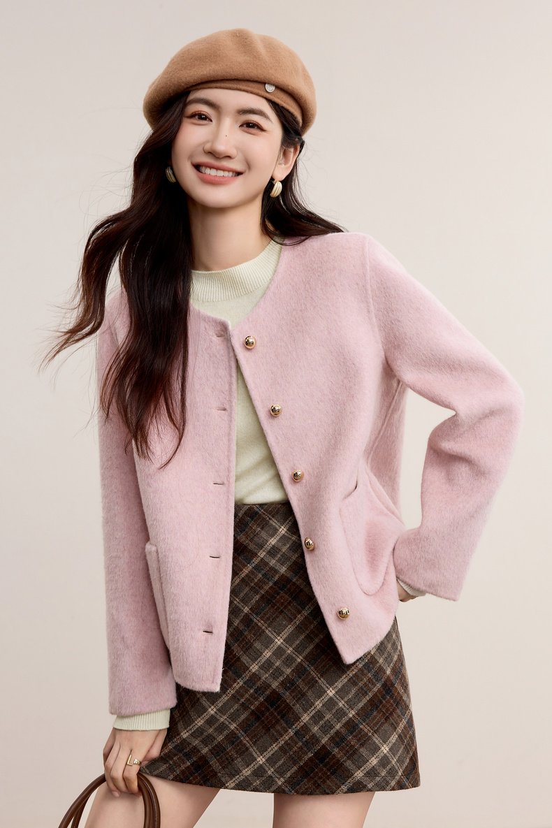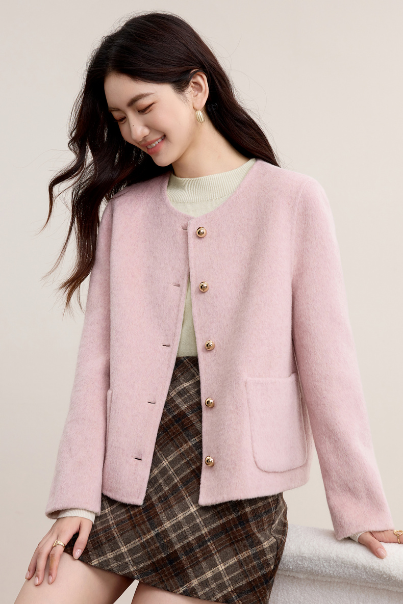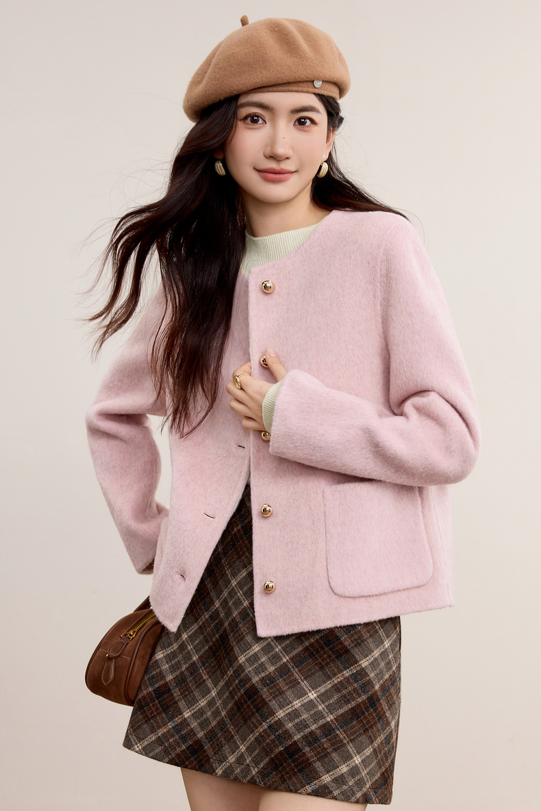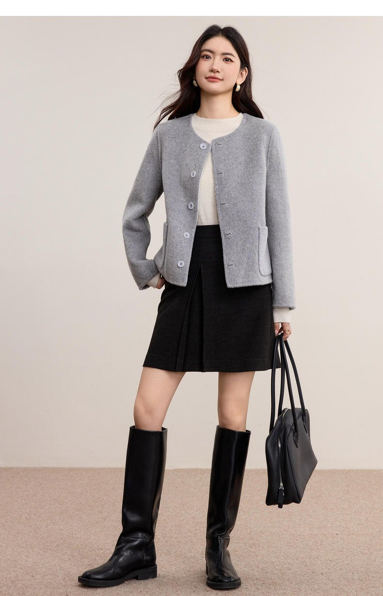 【内购】【双子星系列】正反两穿通勤圆领撞色单排扣厚实保暖双面呢外套-W54OG2433